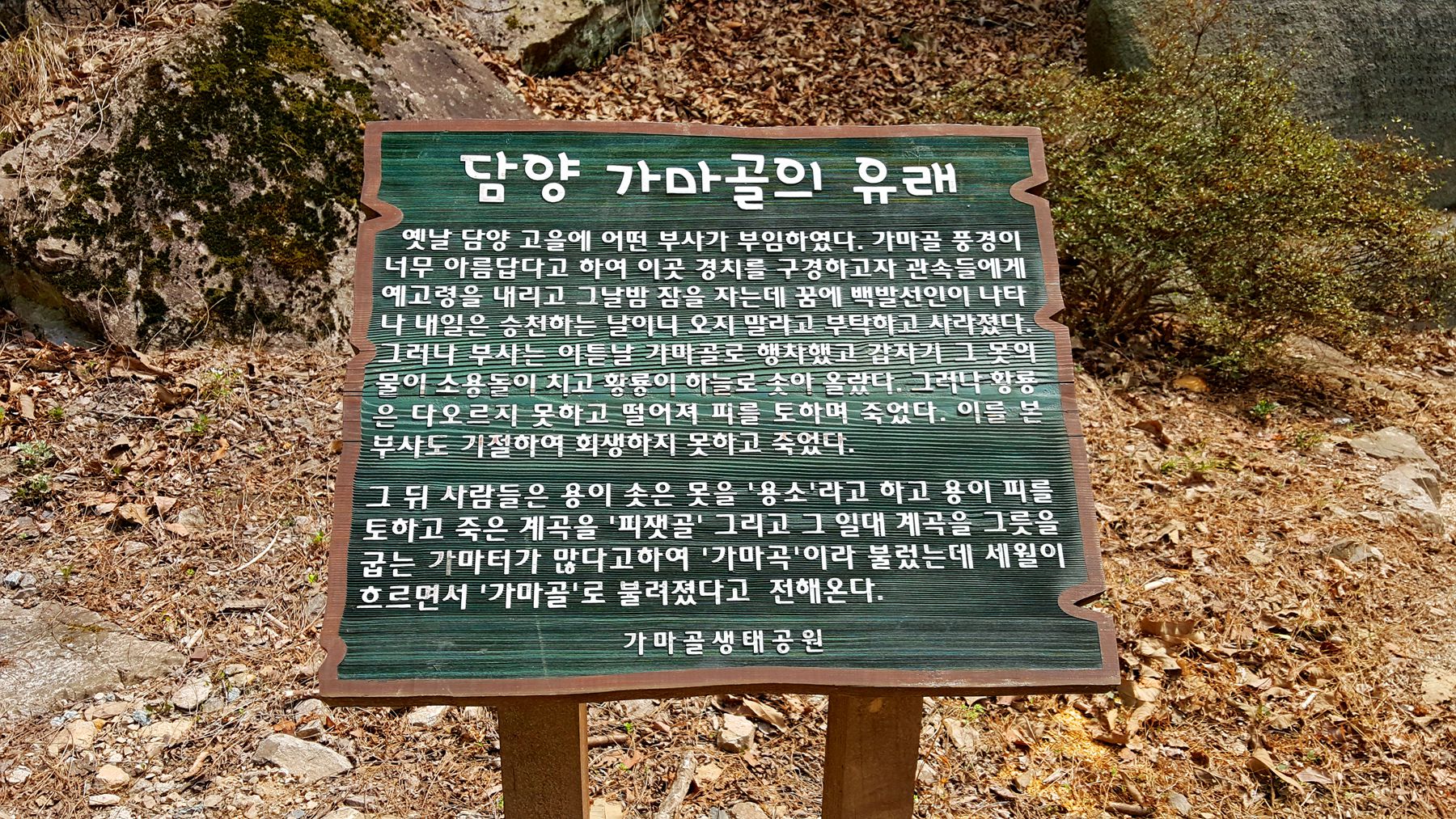 전해 내려오는 가마골의 유래를 보면 옛날 담양에 부임한 부사가 용을 보려고 왔다가