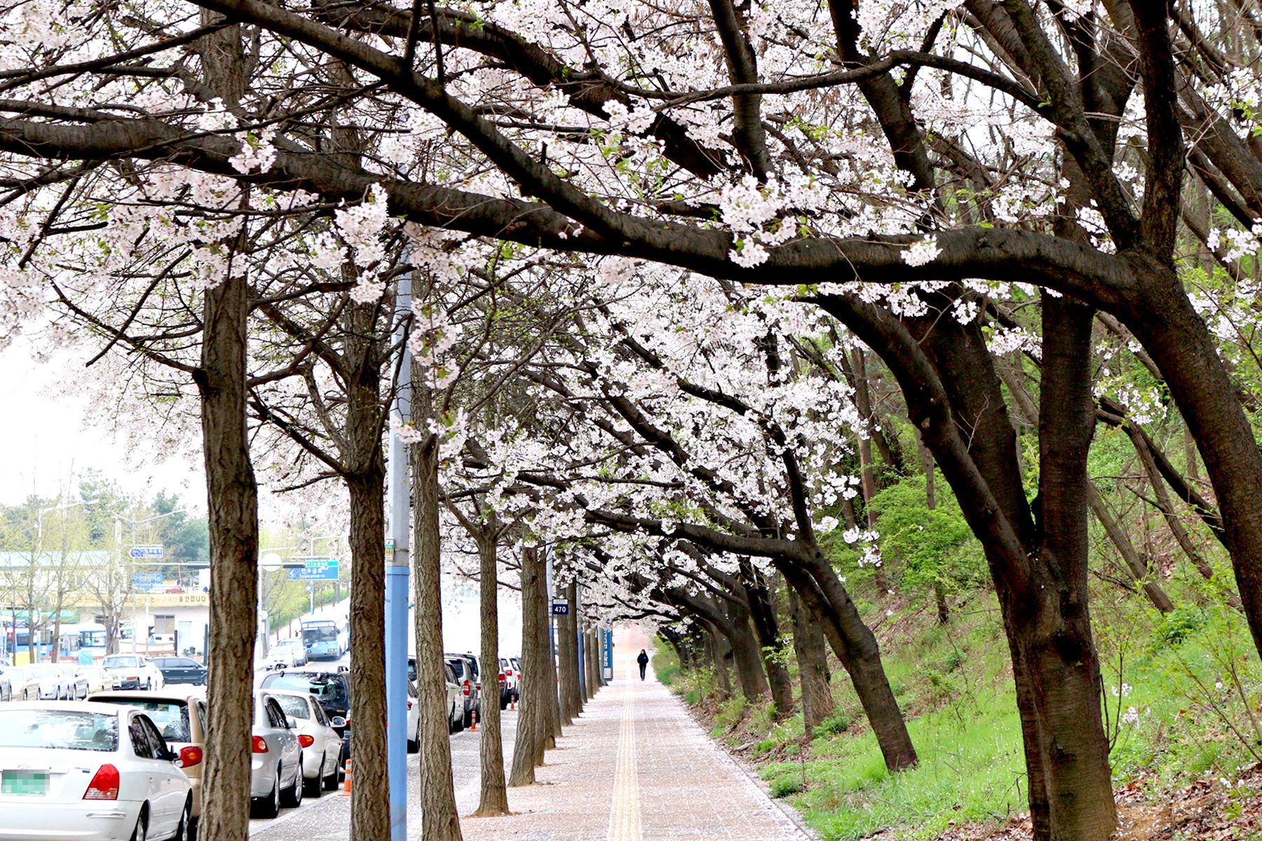 승기사업소 둘레길에 벚꽃나무가 심어져 있어 길을 지나가는 사람들도 벚꽃을 즐길 수 있는데요,