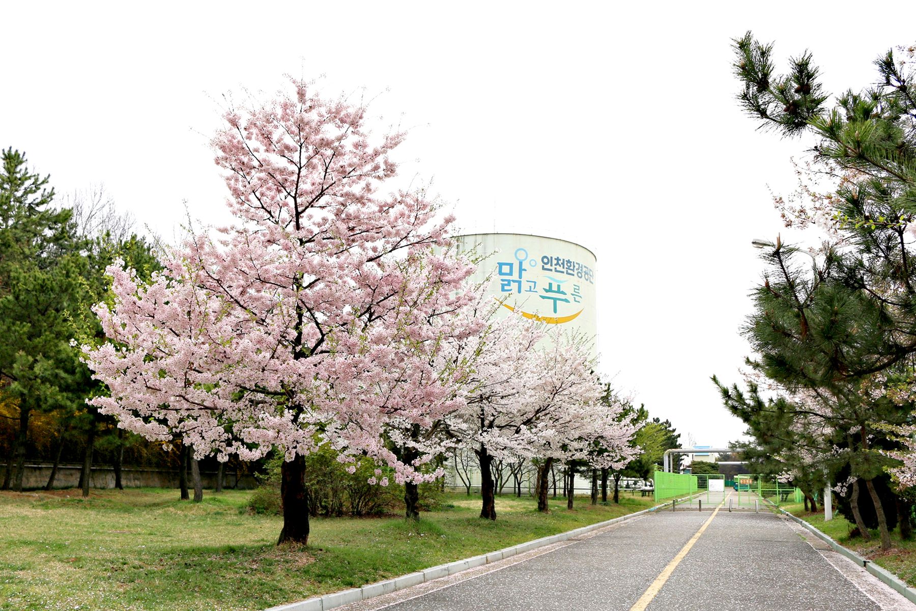 여유롭게 벚꽃을 즐기고 싶다면, 인천 환경공단 승기사업소 내에 공원을 찾아보세요.