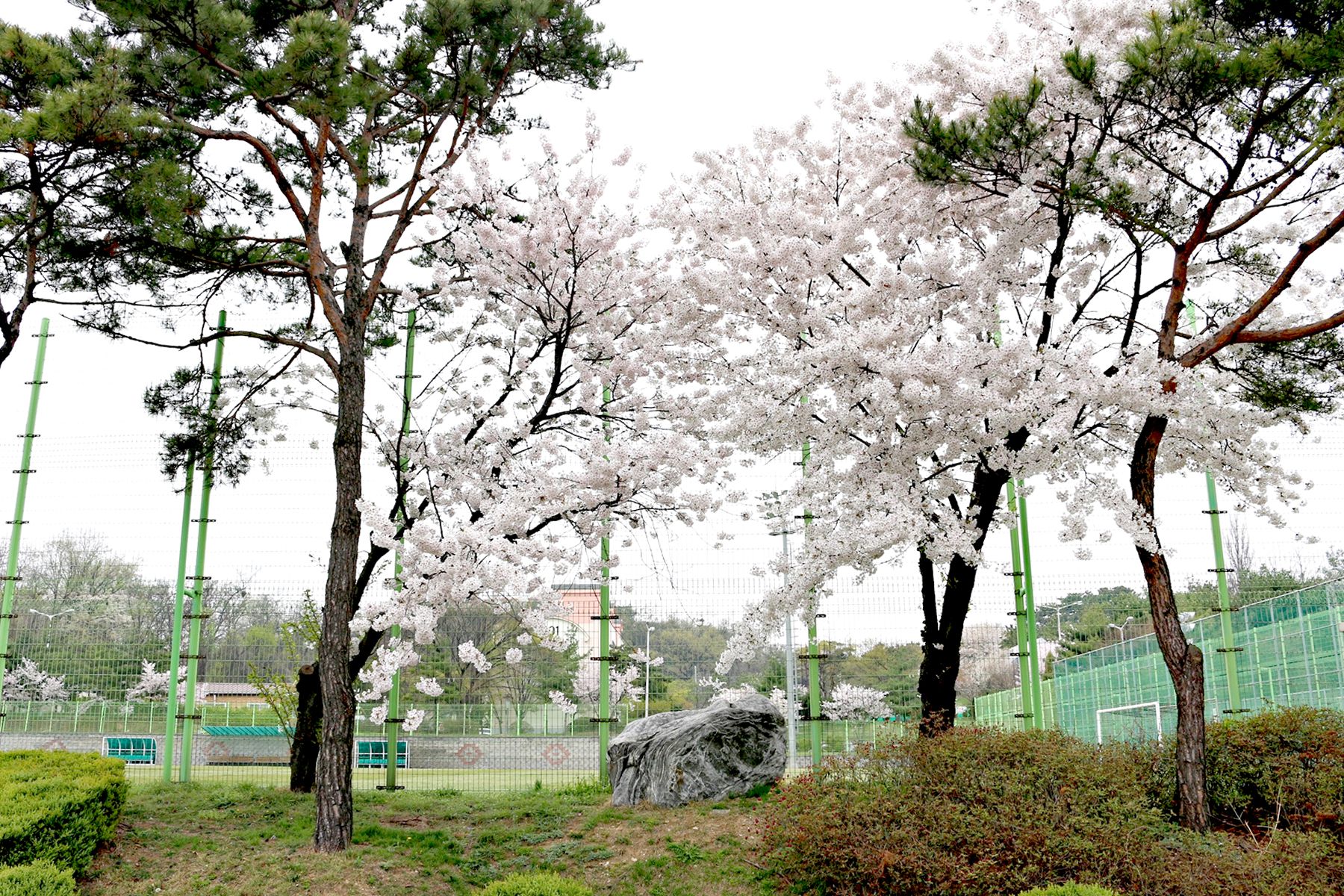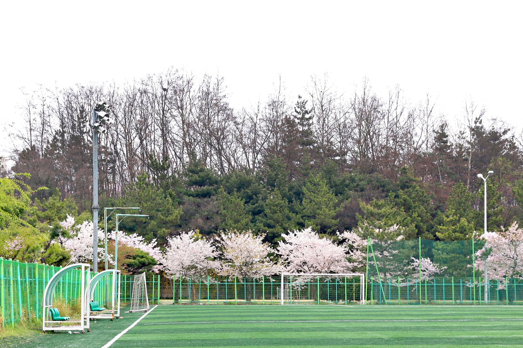 천연잔디구장 주변에 벚꽃나무가 많이 심어져 있어 축구를 즐기는 아빠를 따라온 아이들에게도 즐거운 추억을 만들어 줄 듯합니다^^