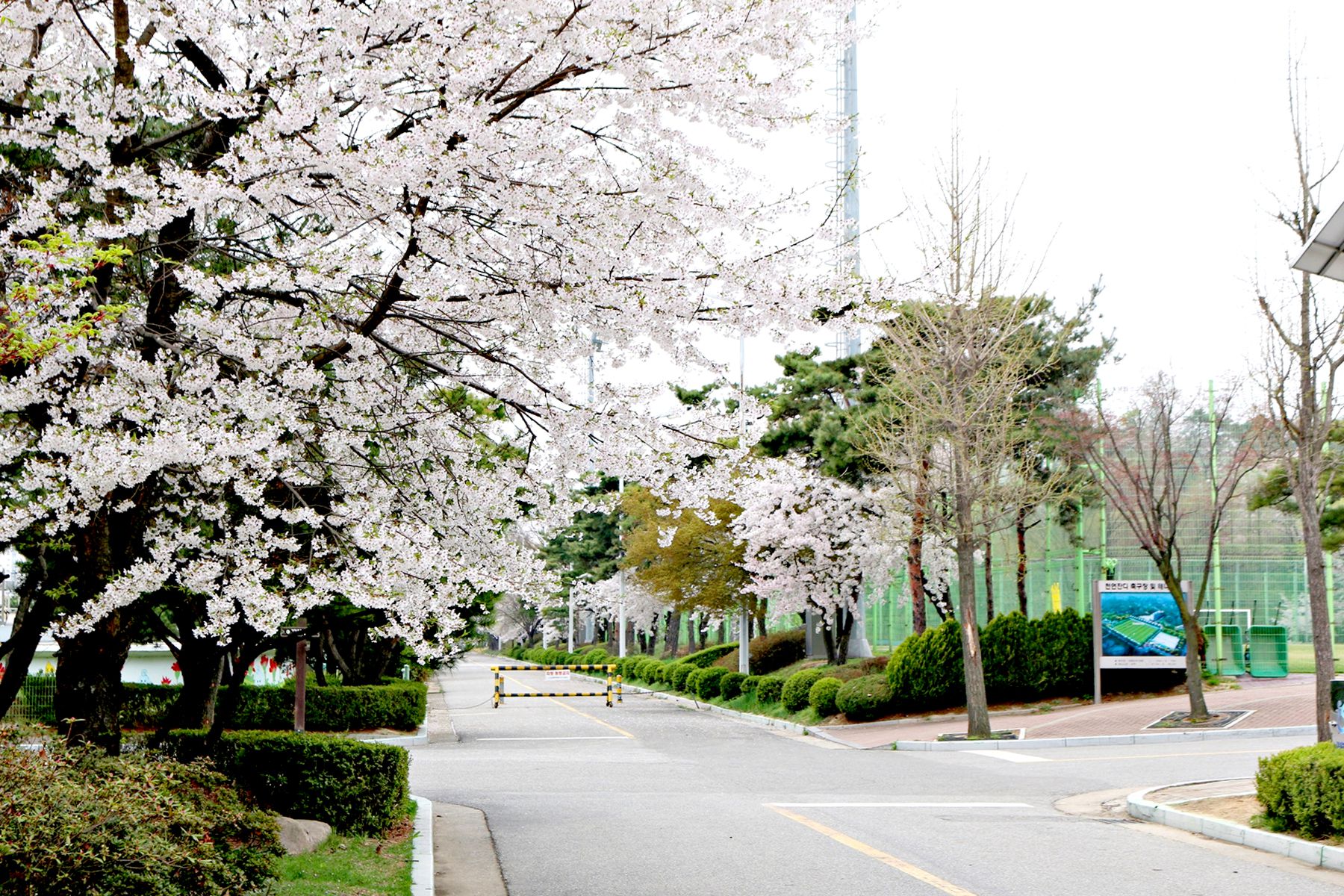 승기사업소 외곽의 벚꽃길도 멋있지만 사업소 내 공원으로 들어가면 평안한 벚꽃길이 펼쳐집니다.