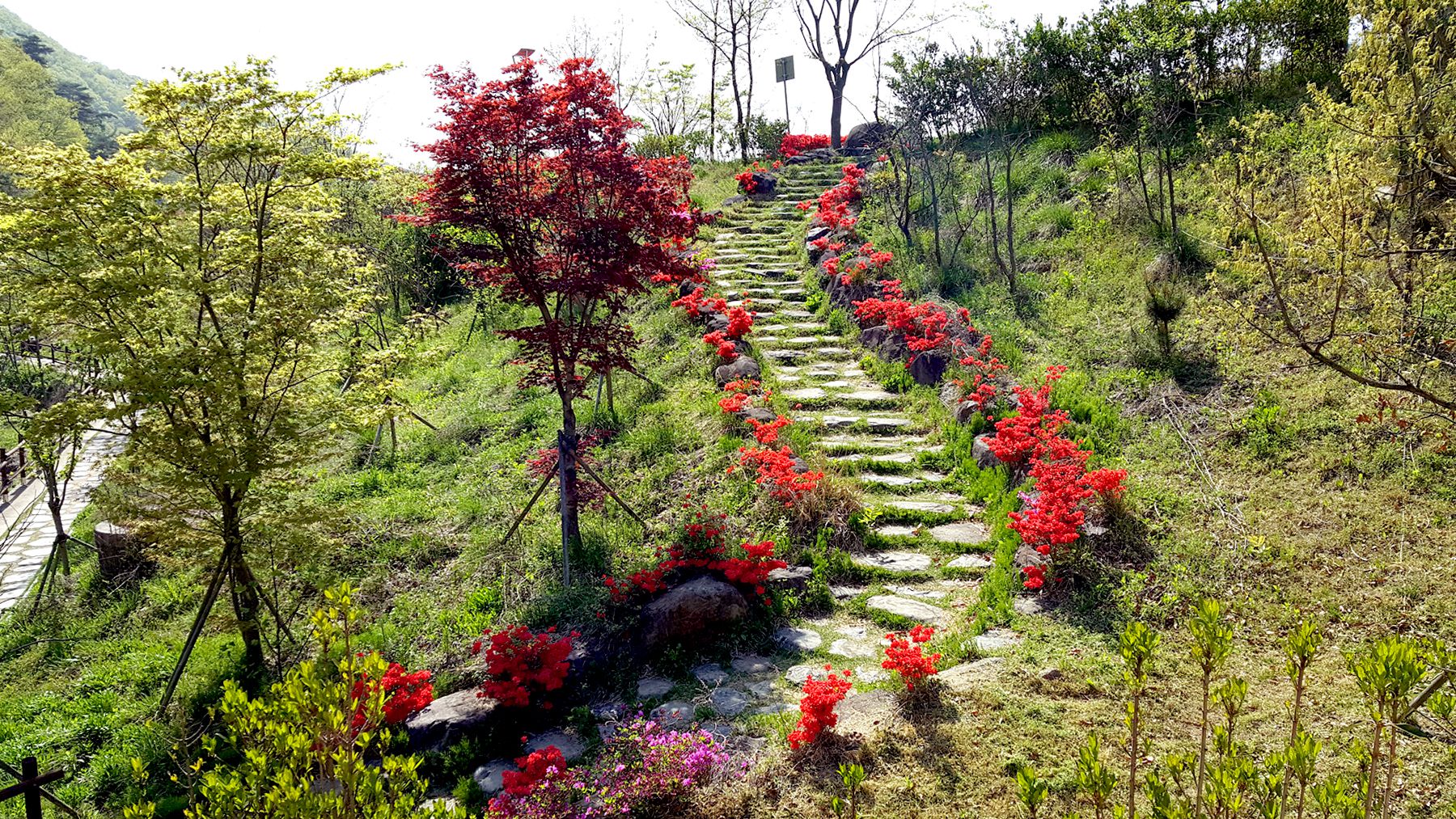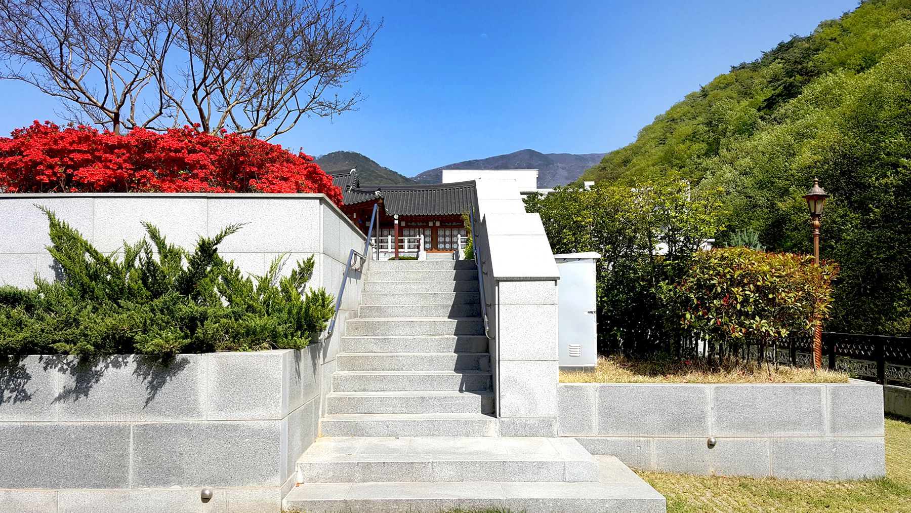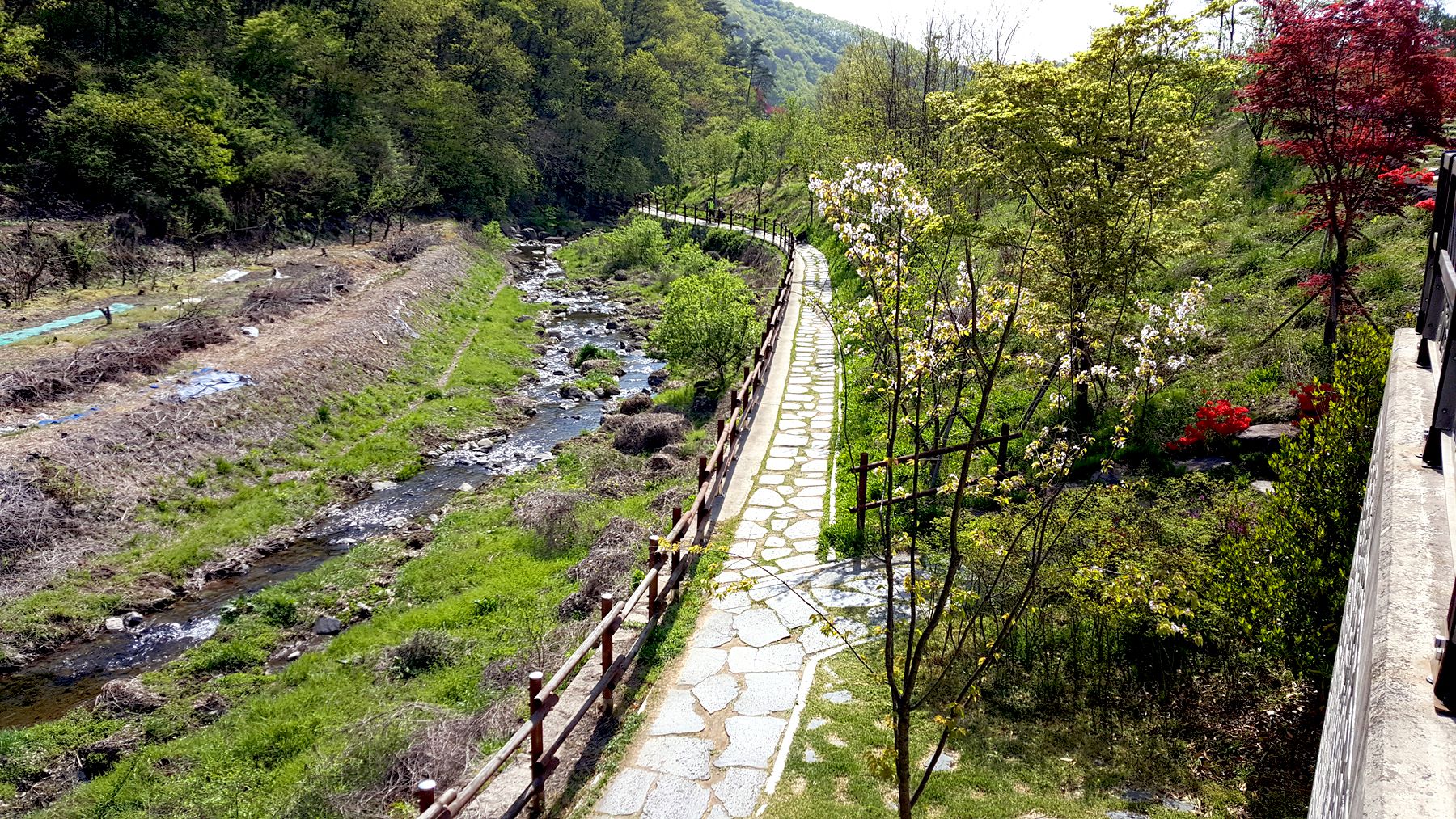 전통문화관 옆에서 흐르는 계곡물 소리를 들으며 많은 돌계단들을 걷다보면