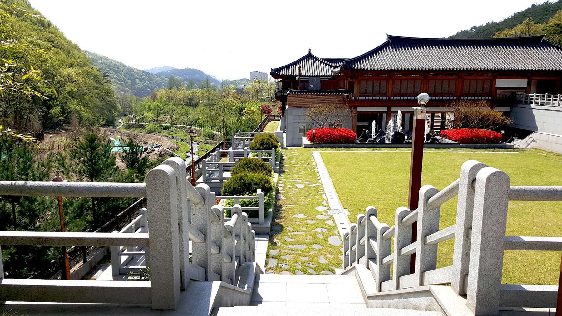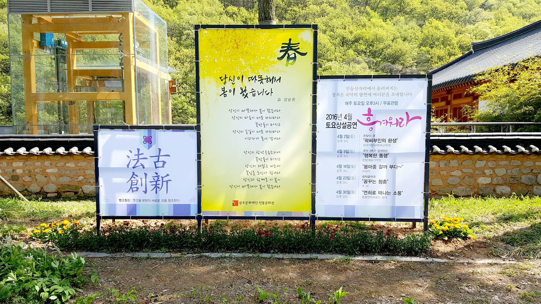 병풍처럼 둘러싼 무등산과 깨끗하게 앞길을 흐르는 계곡을 마주하게 되는 광주전통문화관은