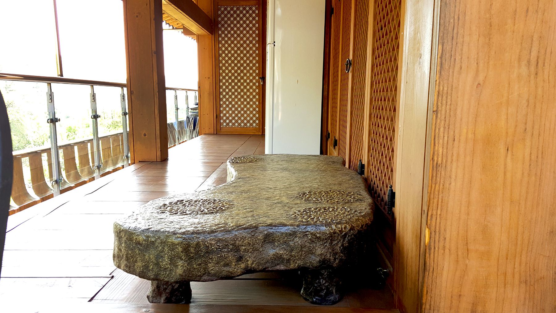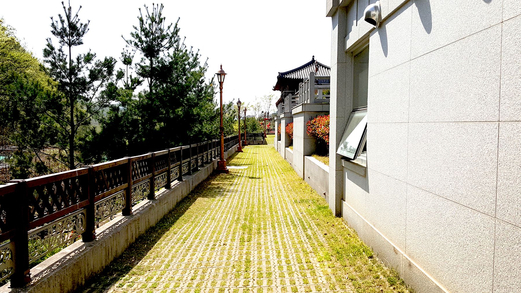 깔끔한 돌의자와 함께 정자와도 같은 쉼터가 마련되어 있어 휴식을 취할 수 있습니다.