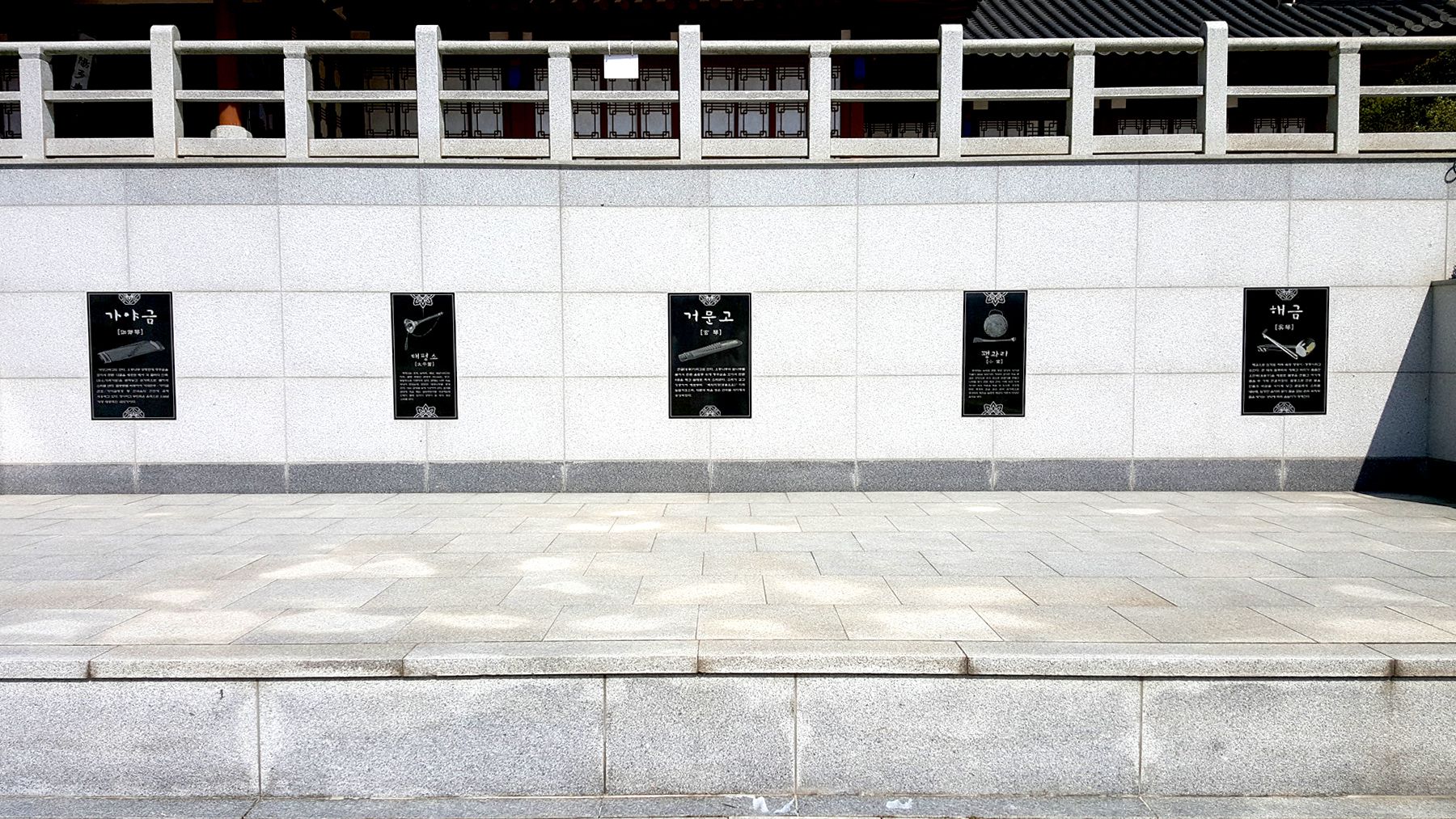 정원 한쪽 벽에 마련된 전통악기에 대한 설명을 보며 배워볼 수도 있고