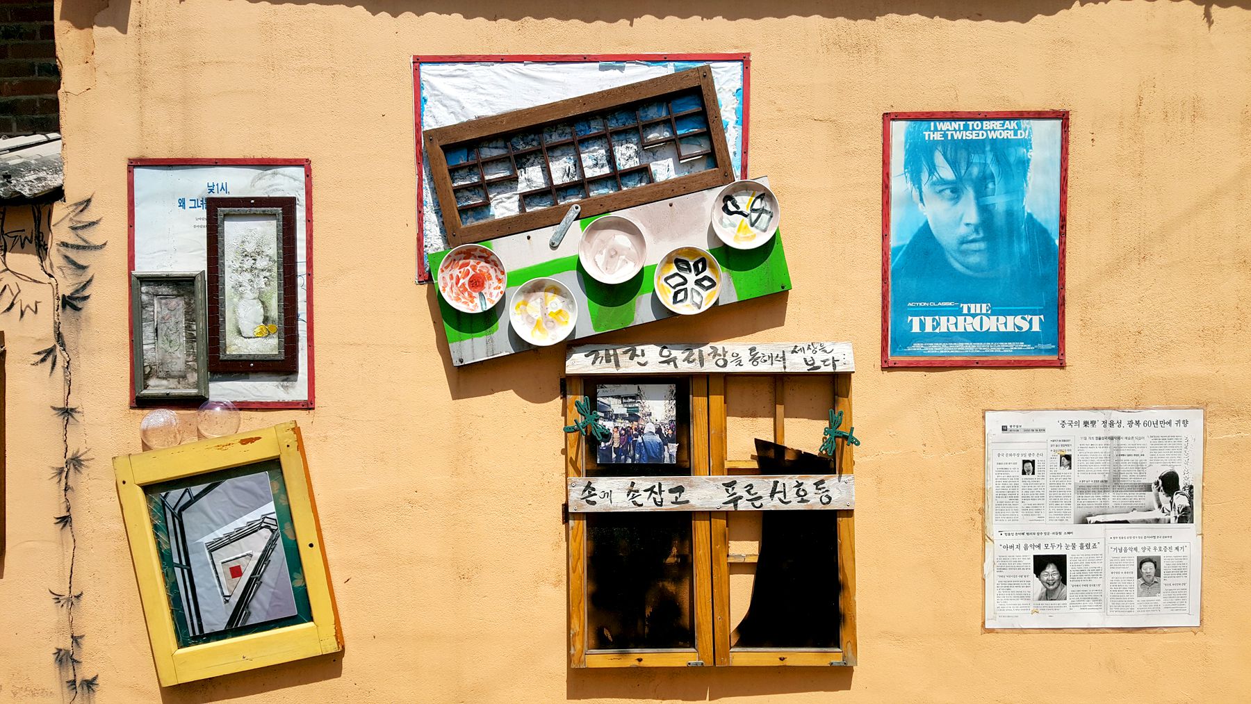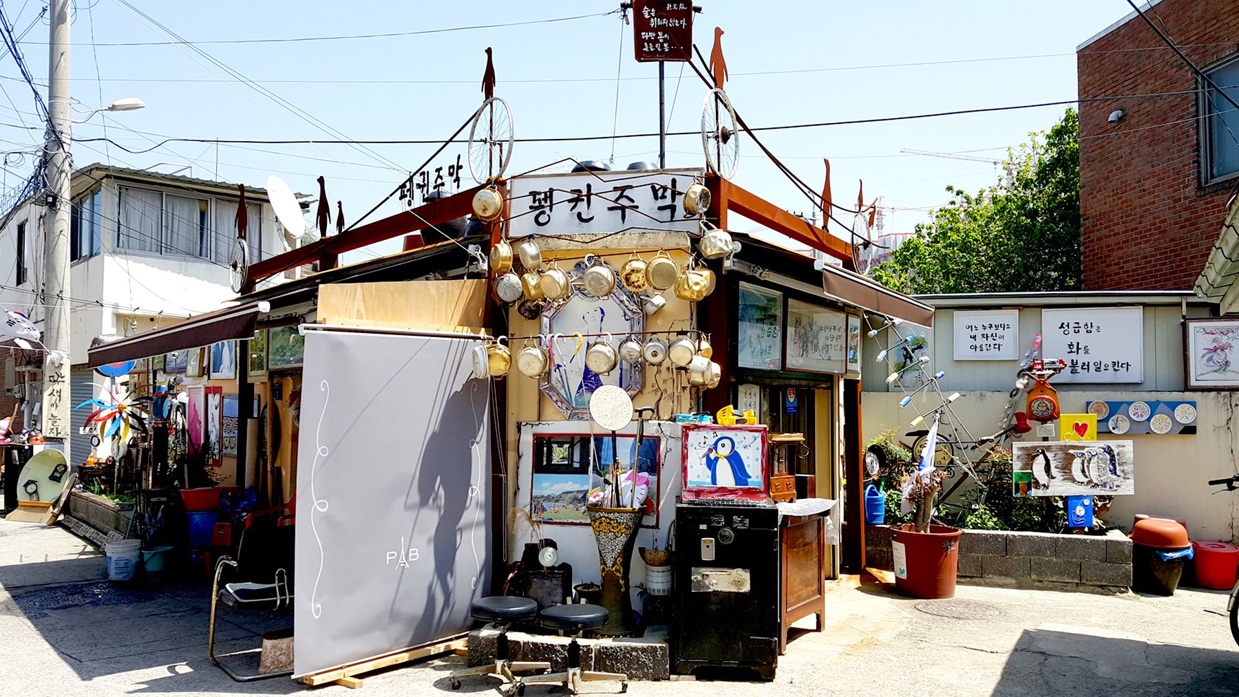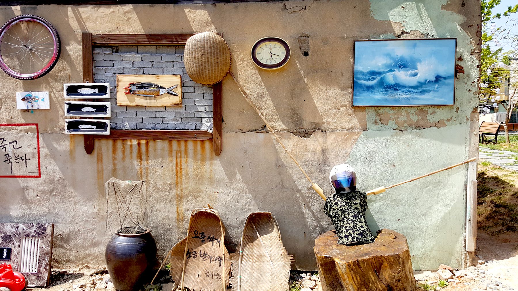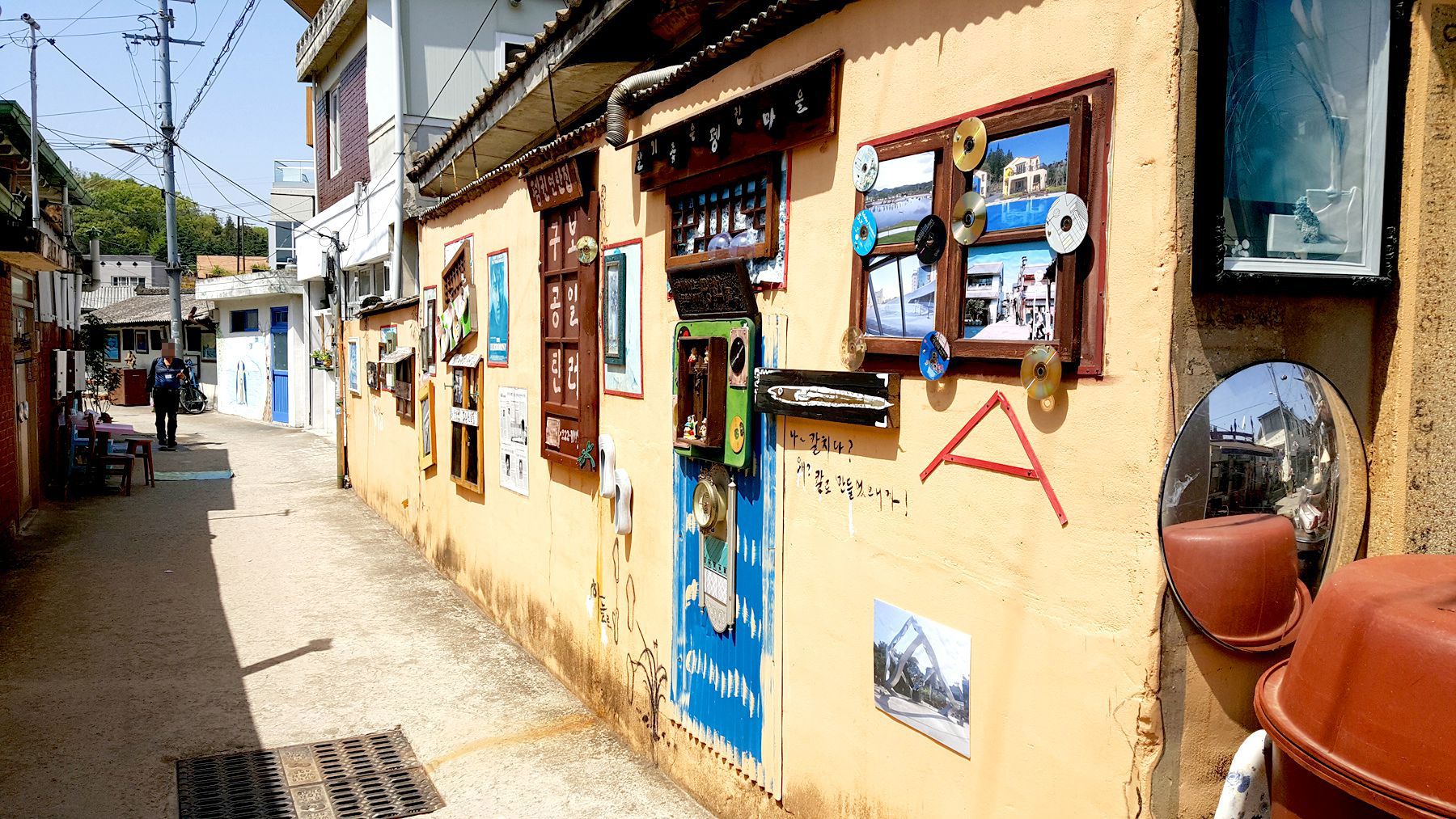 펭귄마을에서는 집집마다 누군가 쓰던 옛 물건들, 버려진 물건들로 담벼락을 빼곡히 메우고 있는 이색풍경을 만날 수 있습니다.