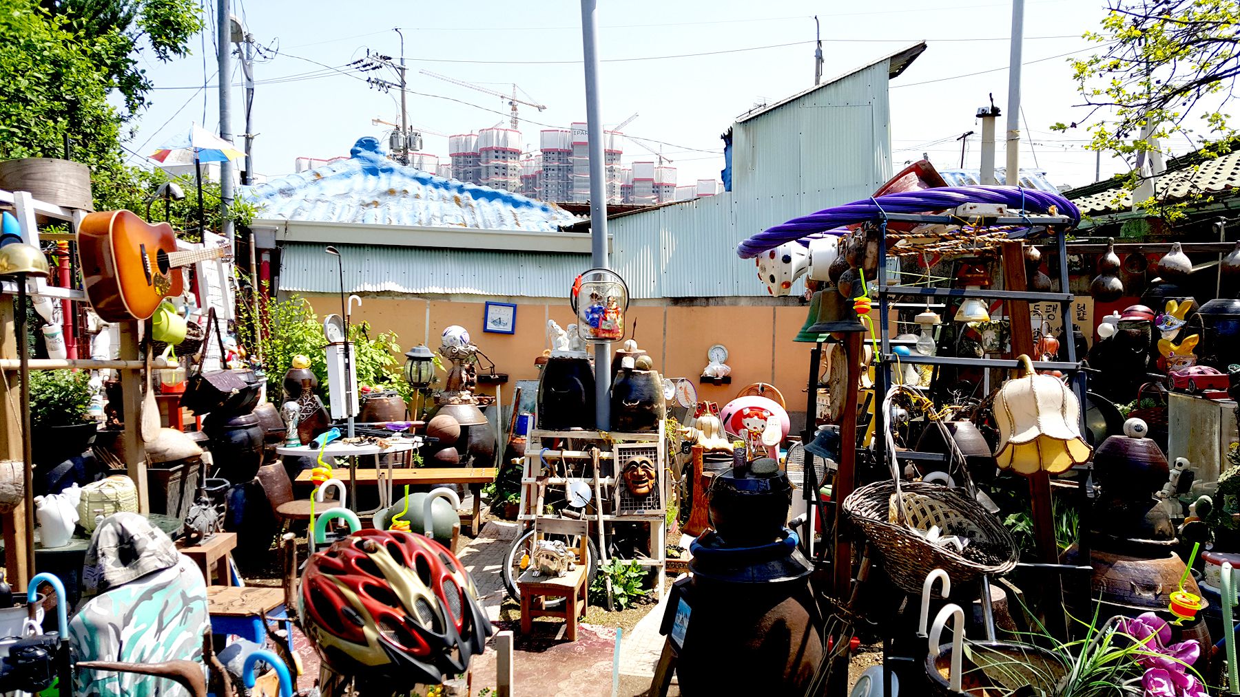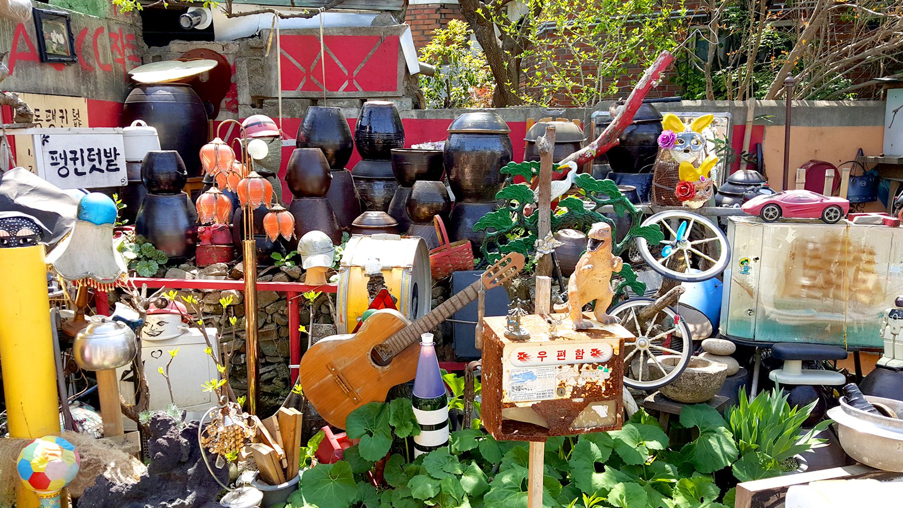 마을 주민들이 힘을 합쳐 물건을 정리하고 쌓아올리며 텃밭을 가꾼 정성이 고스란히 묻어나는 공간입니다.