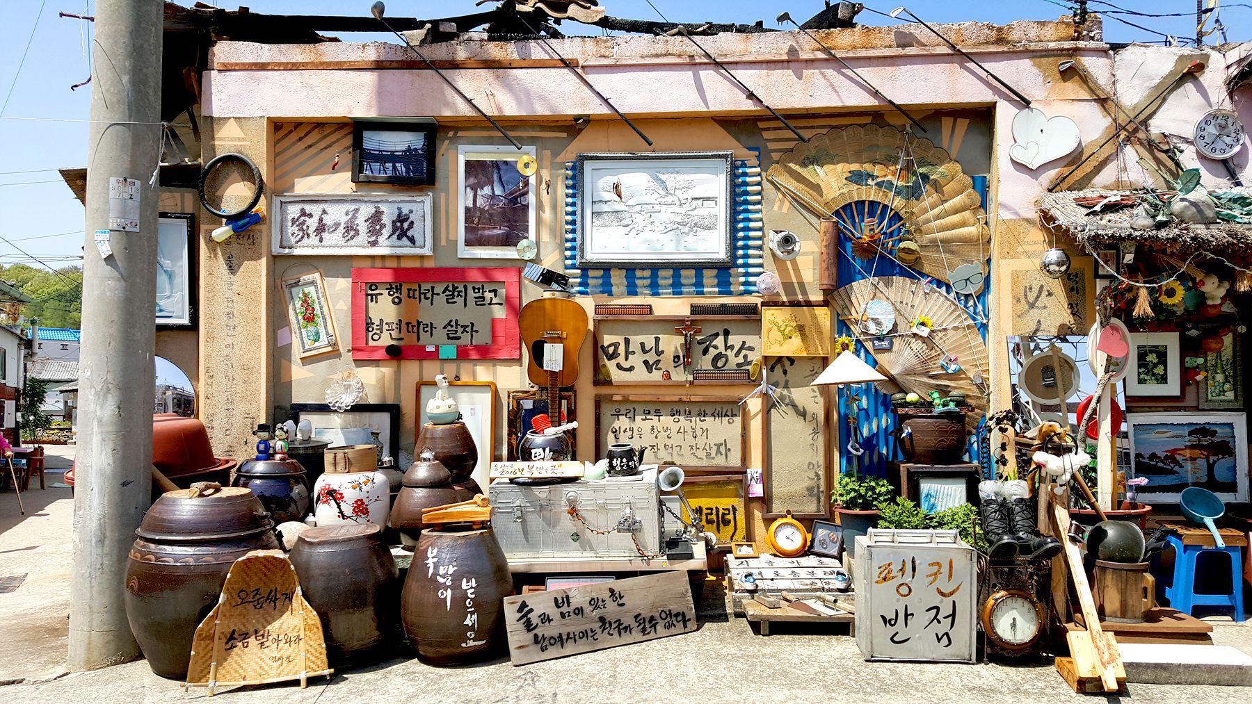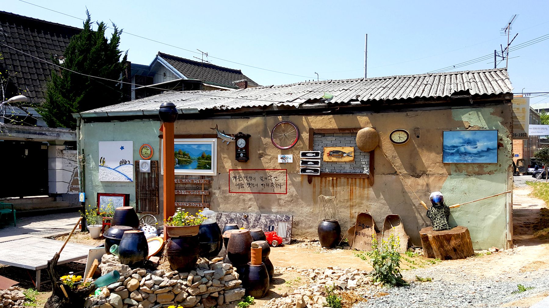나름 조화롭게 어우러져 예술작품으로 거듭난 골동품들의 변신은 마을사람들의 노력과 정성으로 빚어낸 결과입니다.