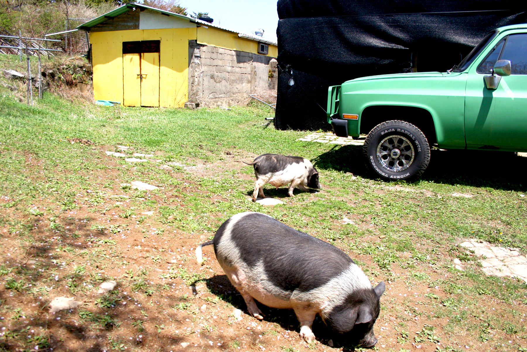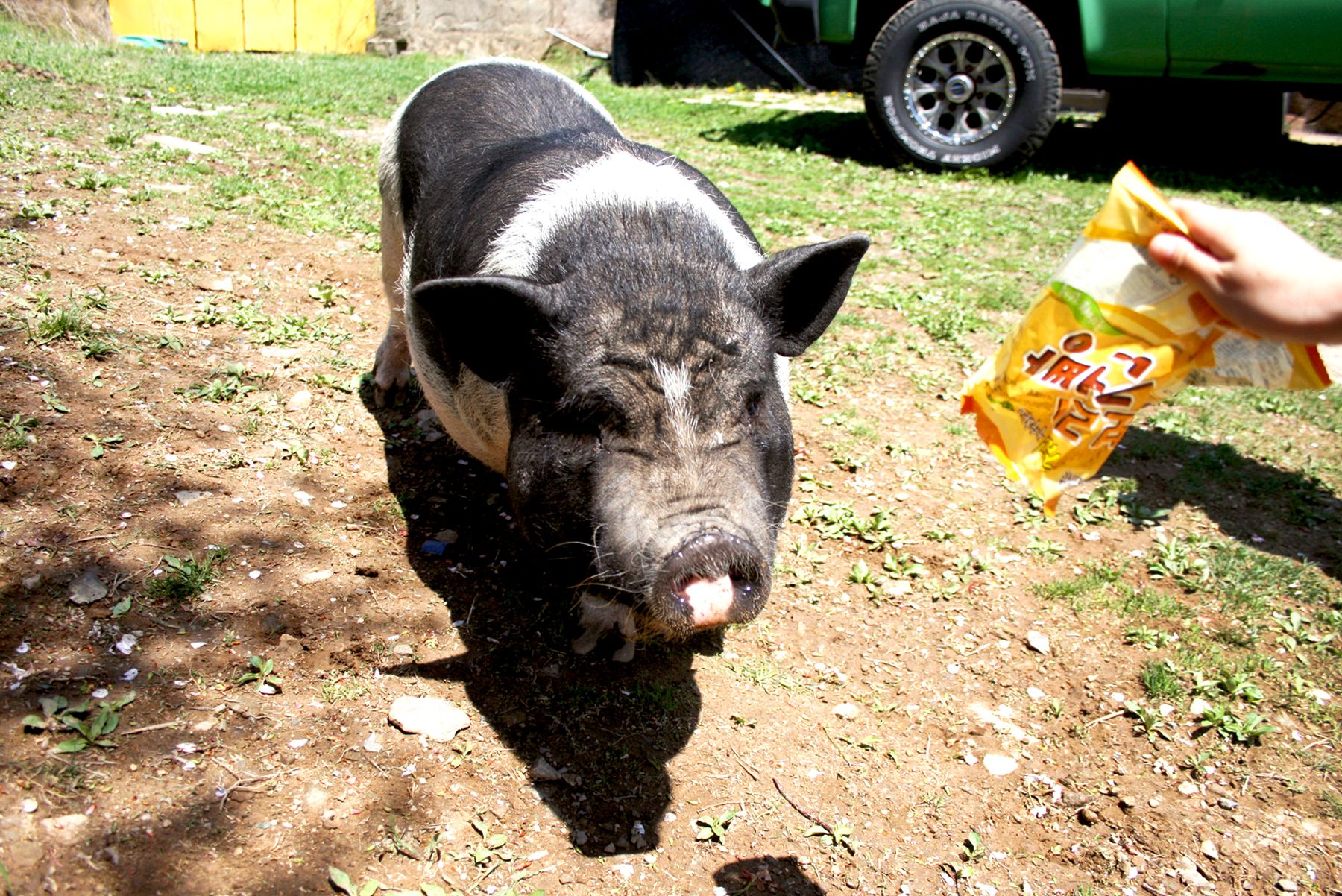 포니와 말 외에 돼지도 가까이에서 보며 먹이를 직접 줄 수 있습니다.