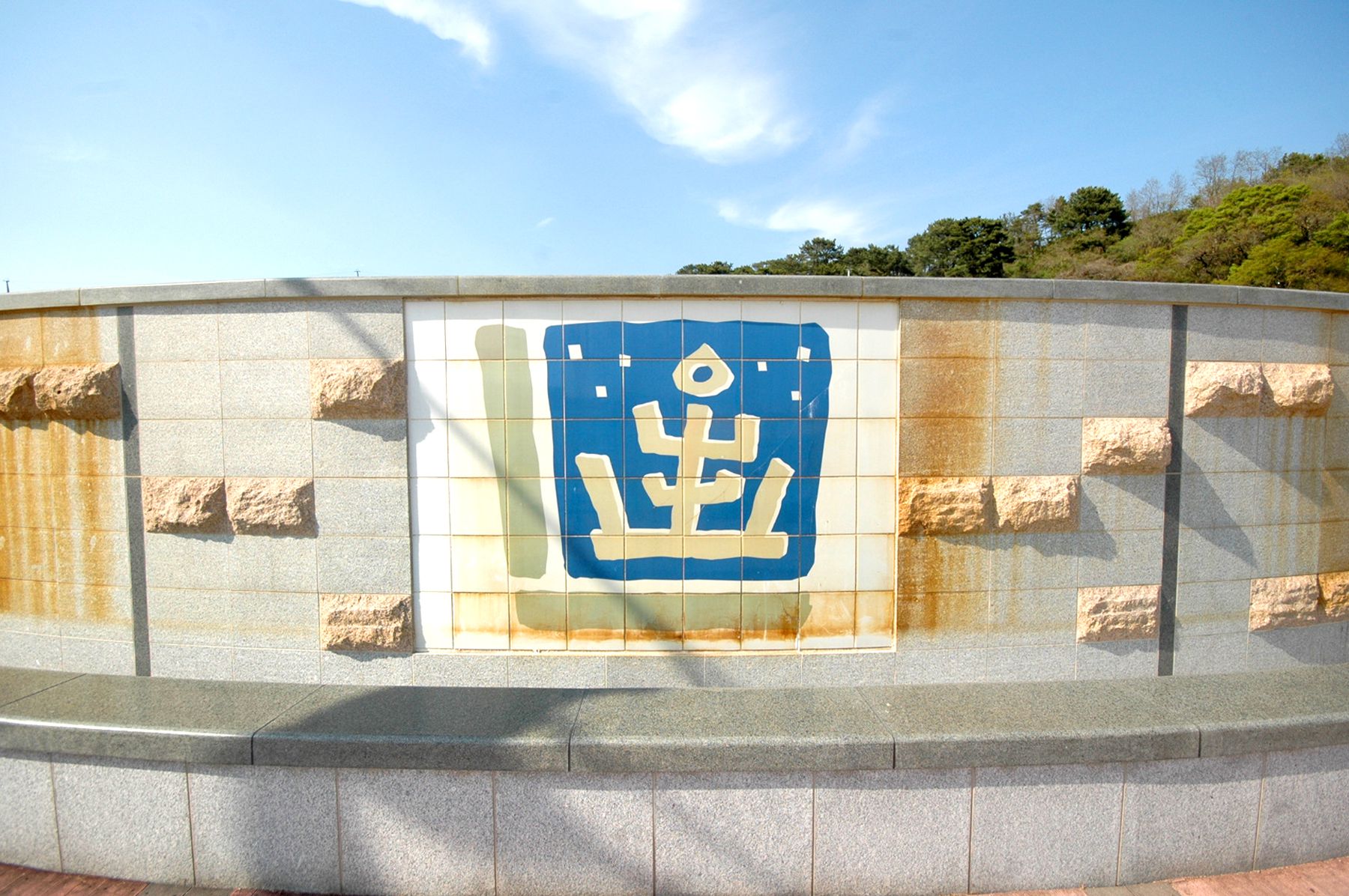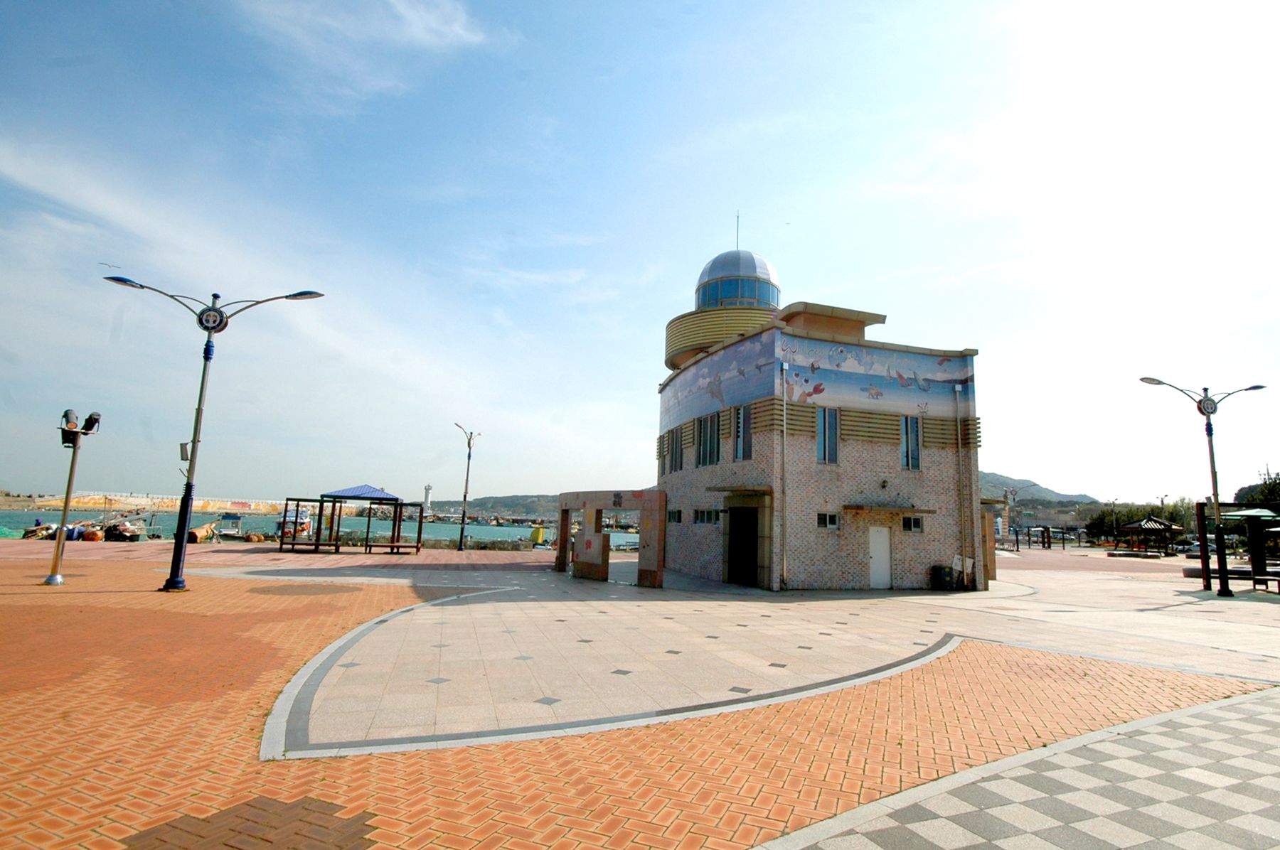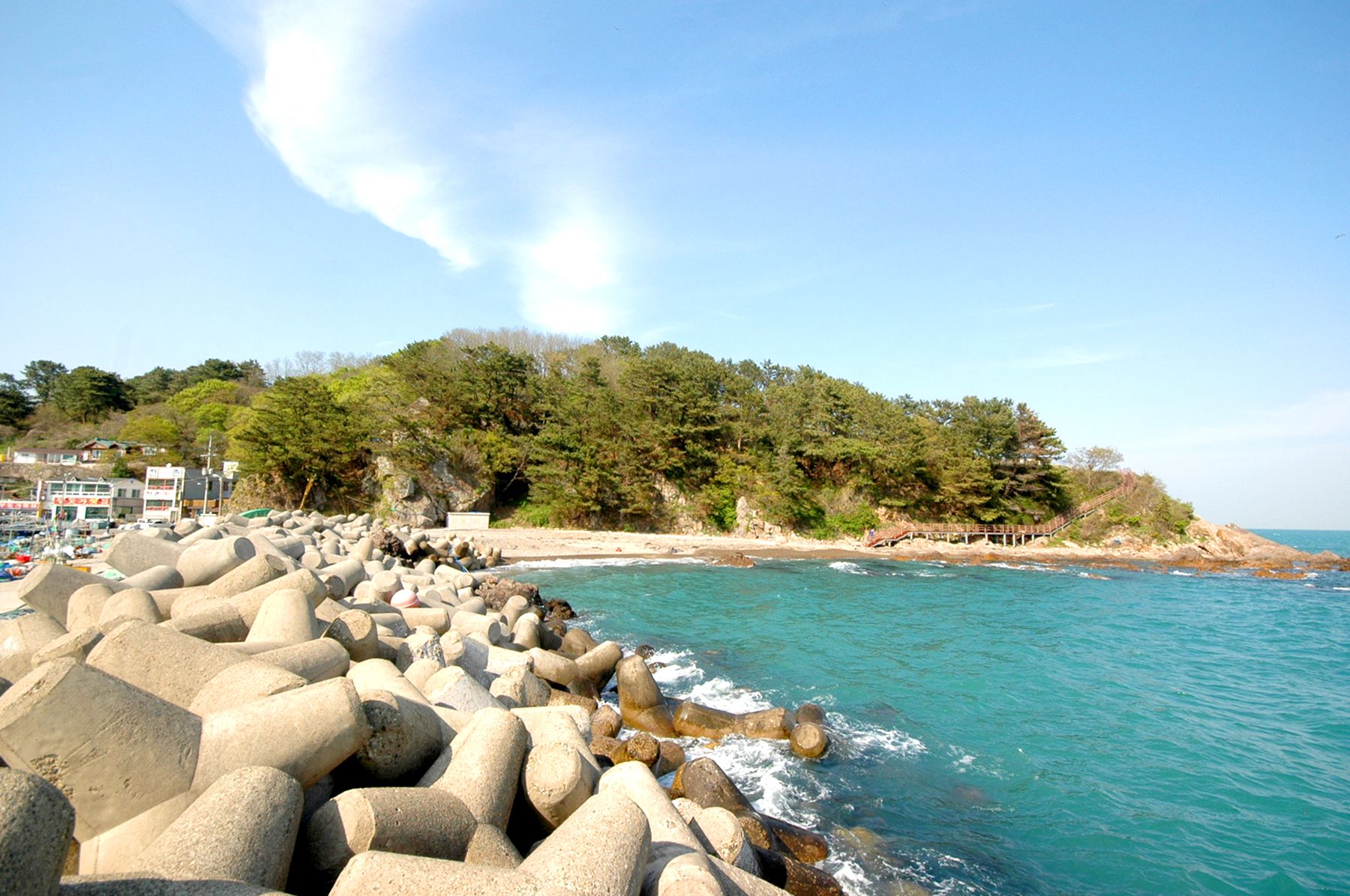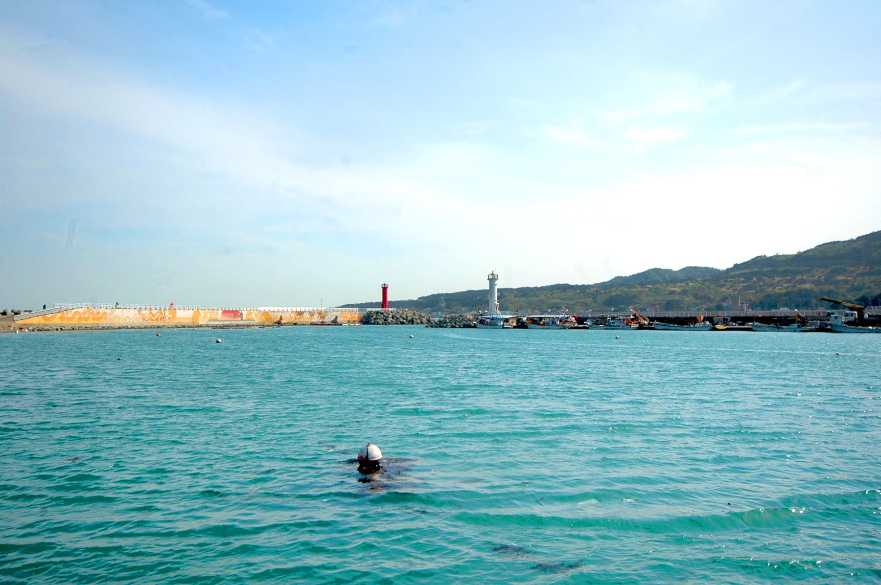 멀리서 보면 방파제에 그림이 그려져 있는 것이 보입니다.