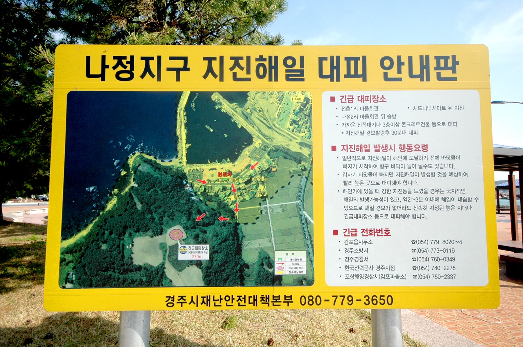 바닷가에 바로 인접한 곳이라 지진 해일이 났을 때를 대비한 안내도도 눈에 띕니다.