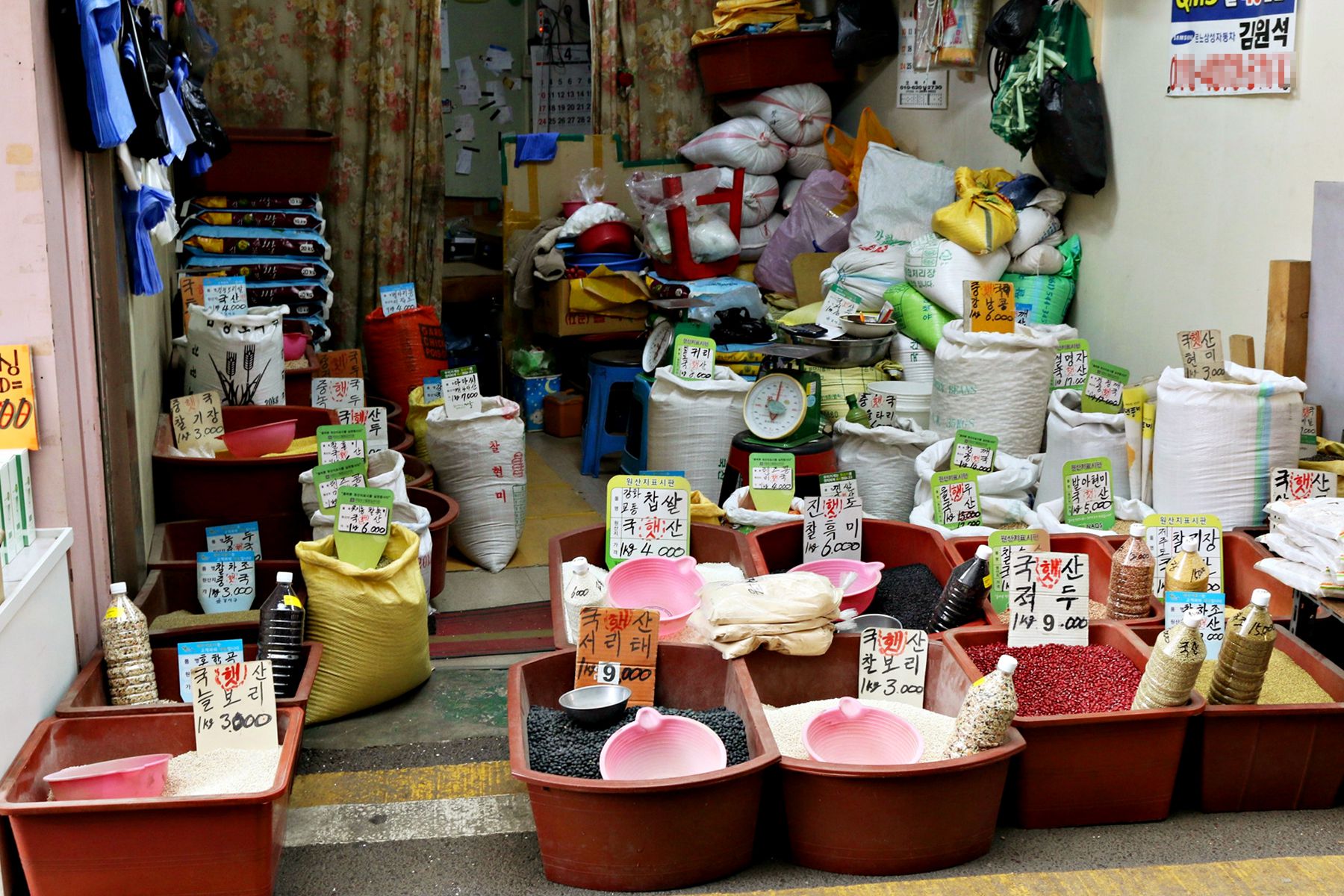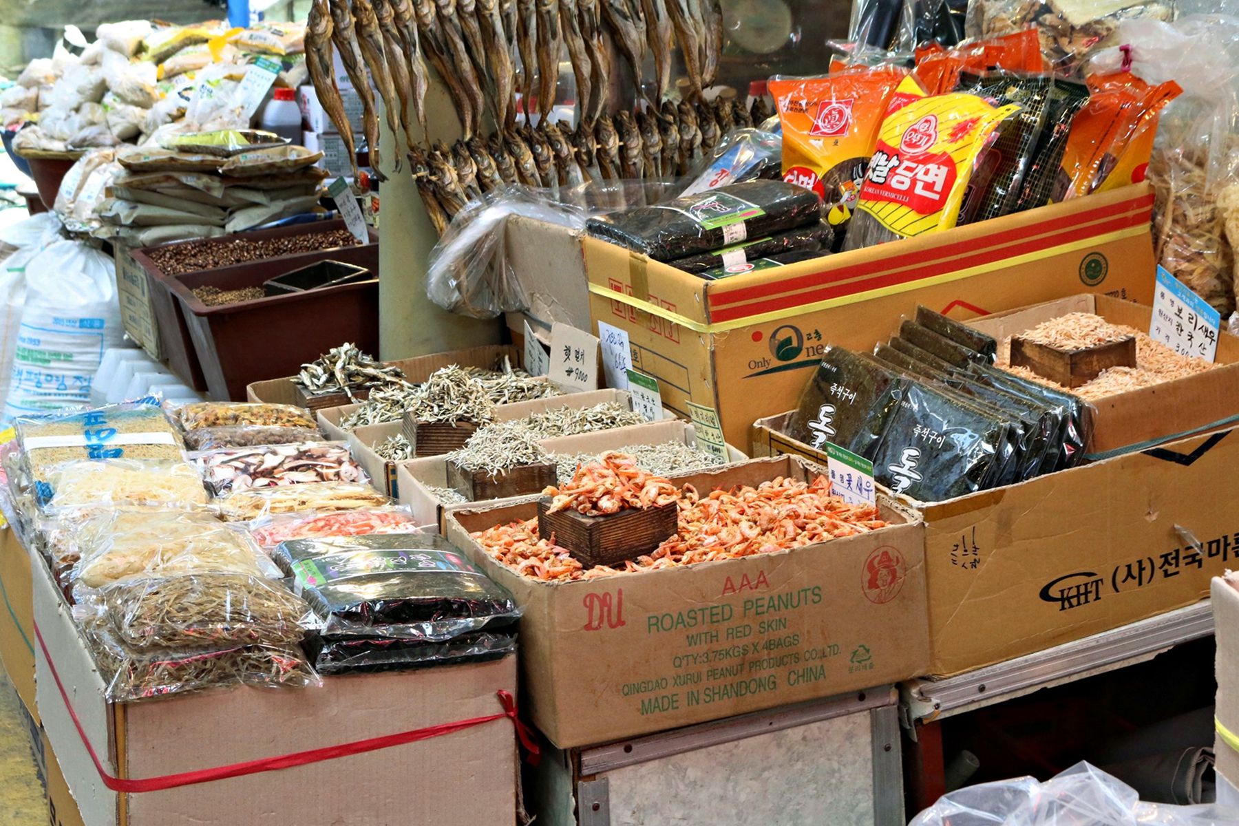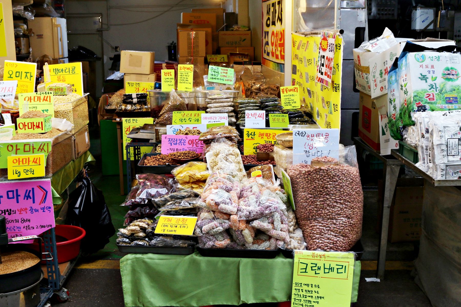 야채, 젓갈, 곡물 등 다양한 물품으로 시장에서 없는 것을 찾는 것이 더 빠를 것 같은데요,