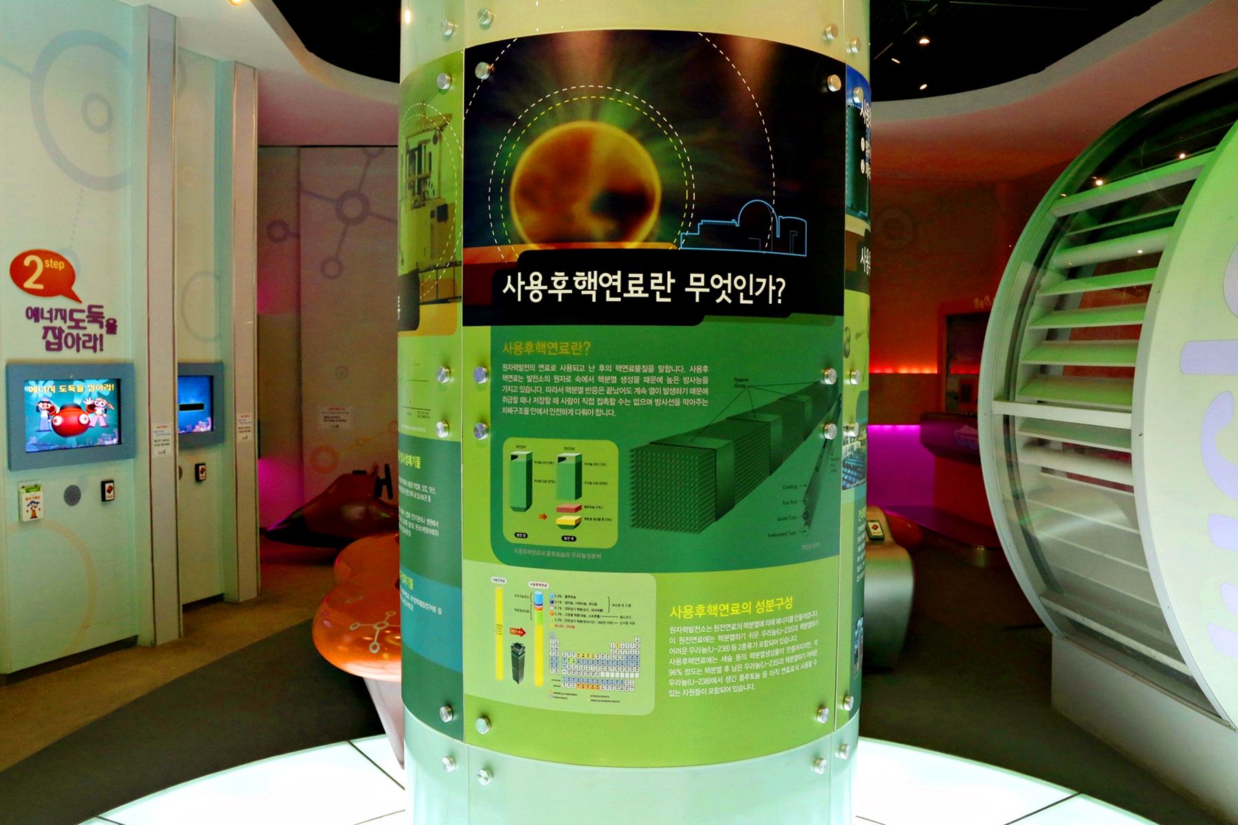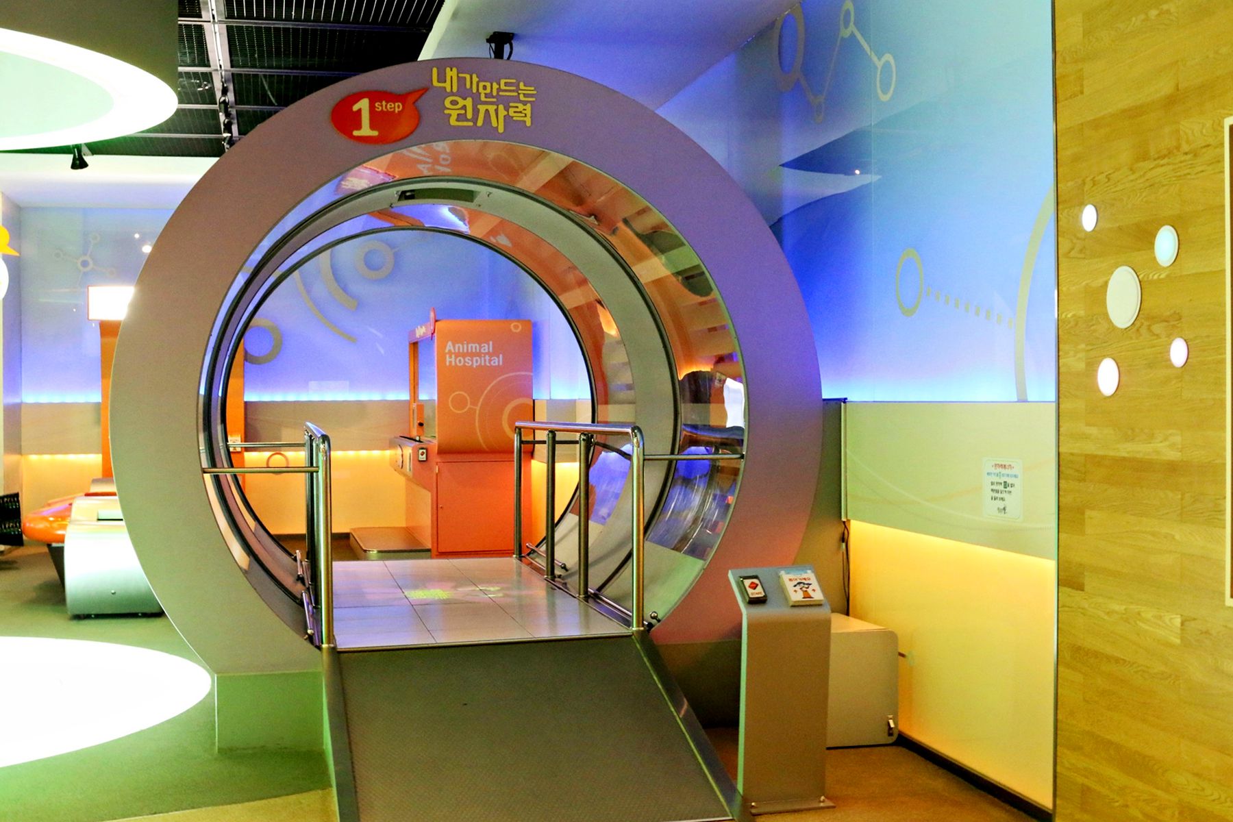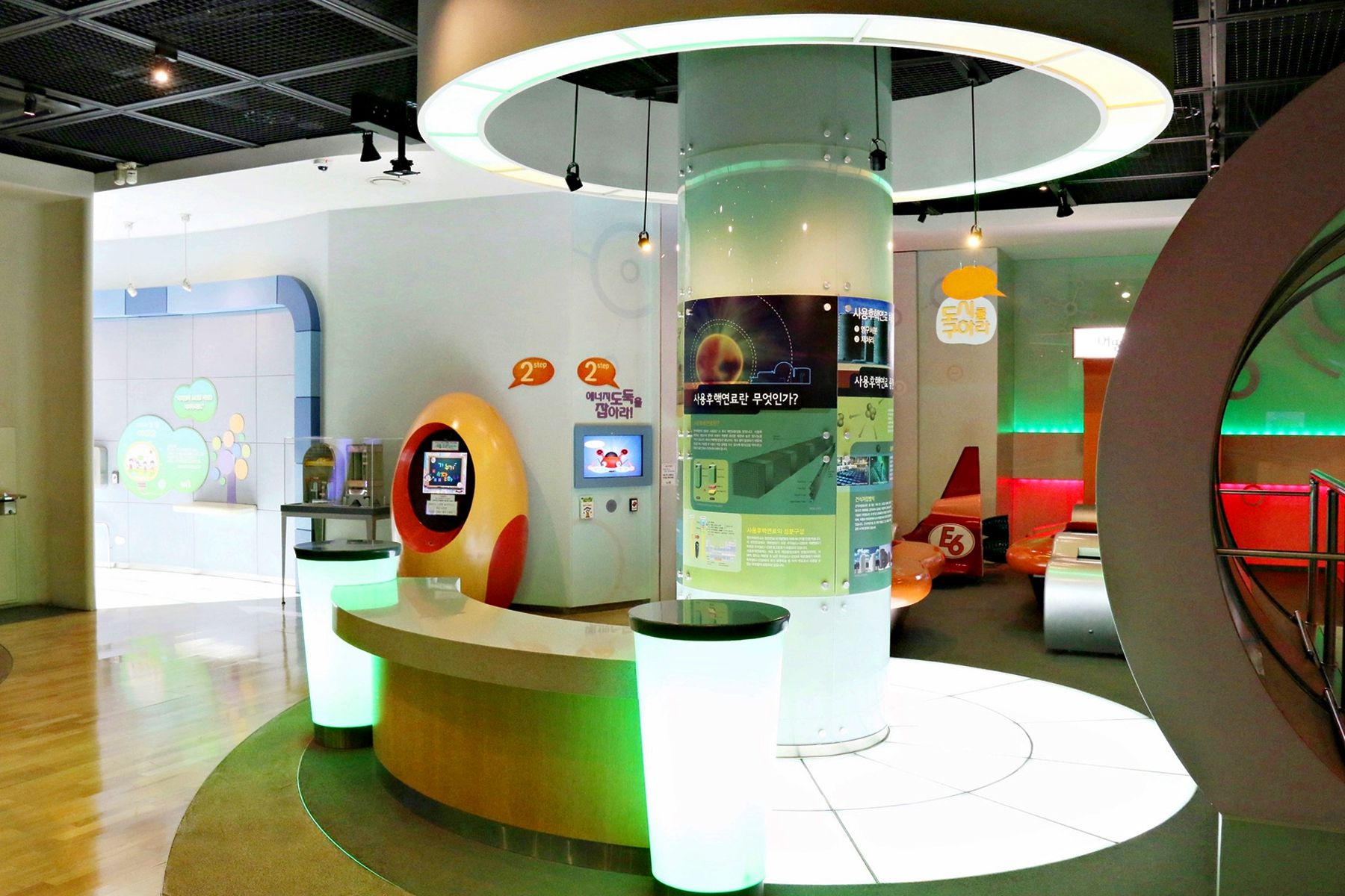 원자력의 원리를 배워보는 곳으로 바닥에 있는 공을 발로 밟으면 공이 쪼개지고 또 쪼개져서 무수히 많은 공들이 보이고