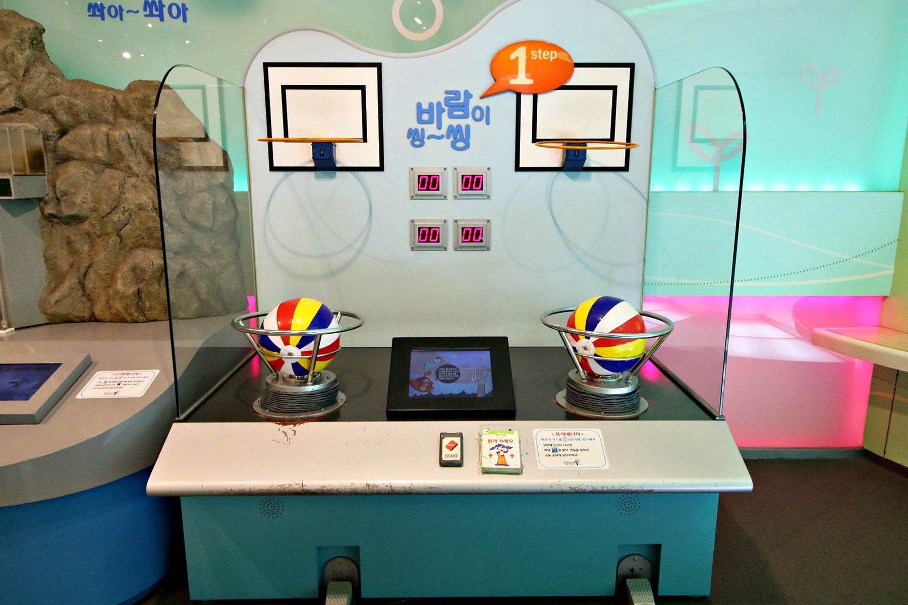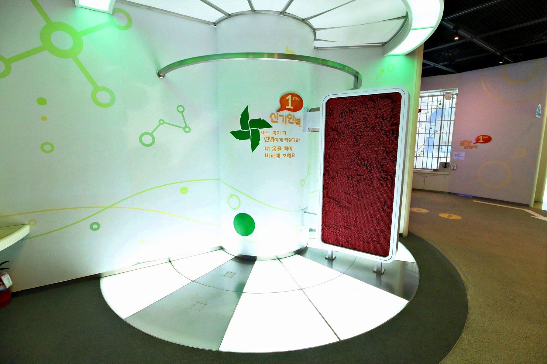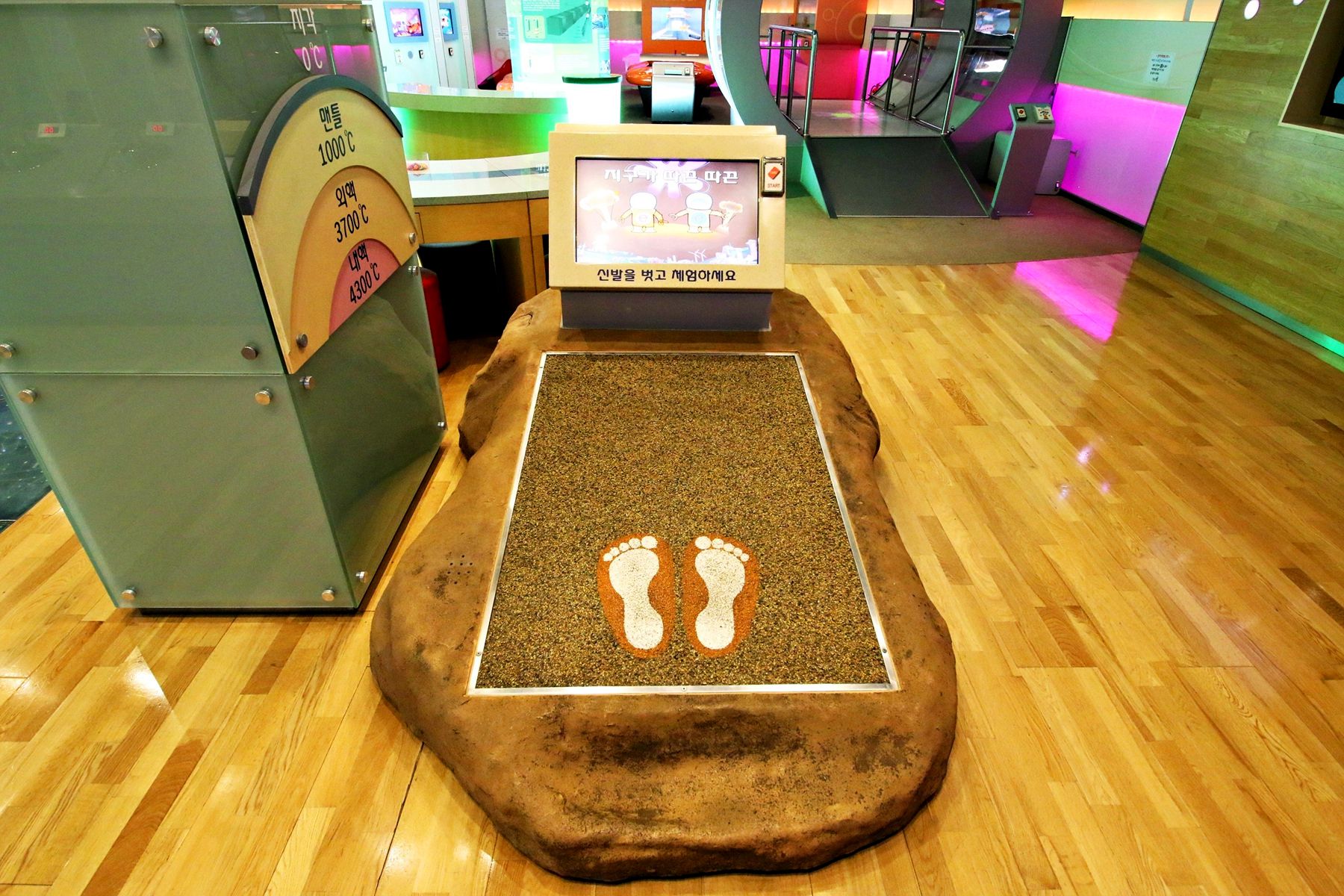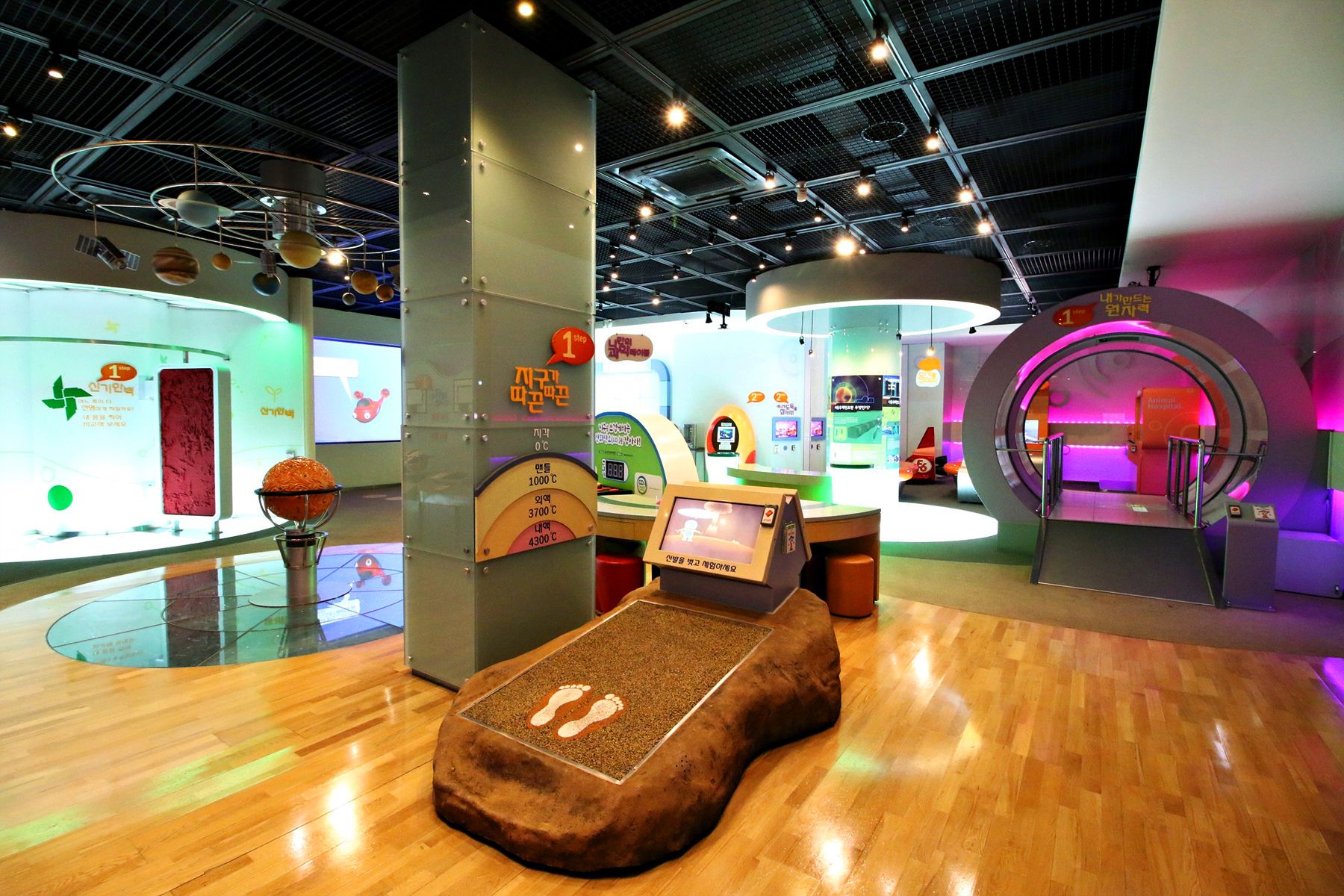원자력의 원리를 배워보는 곳으로 바닥에 있는 공을 발로 밟으면 공이 쪼개지고 또 쪼개져서 무수히 많은 공들이 보이고