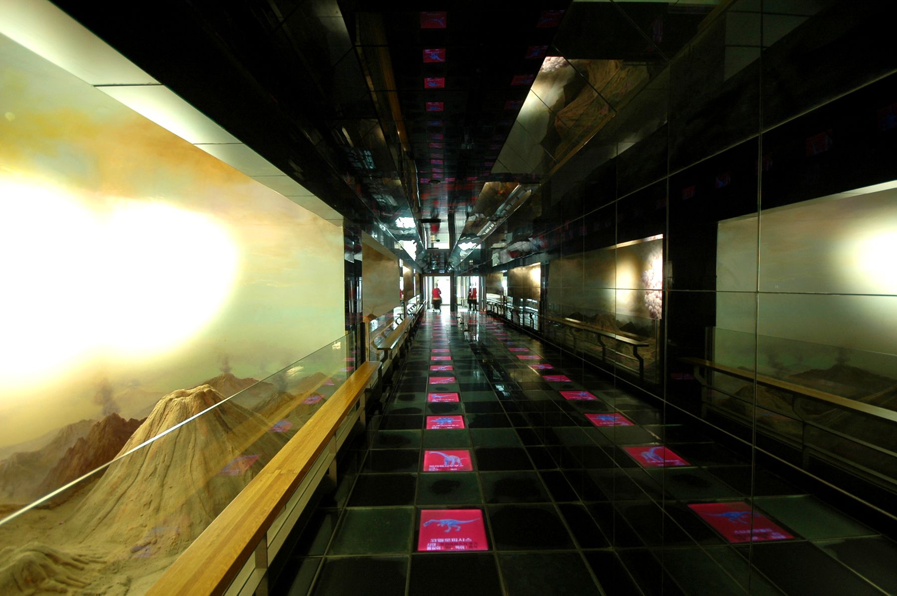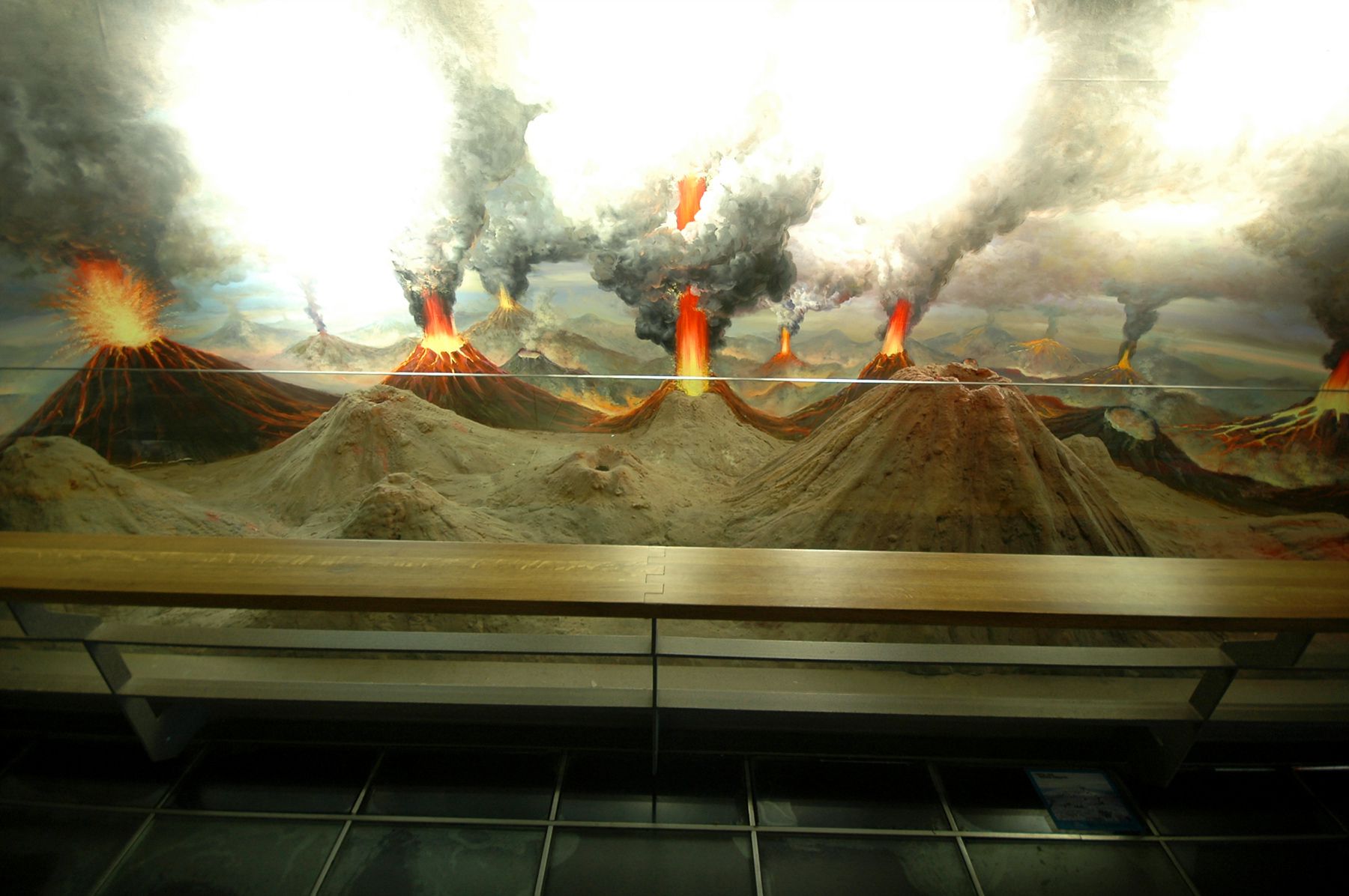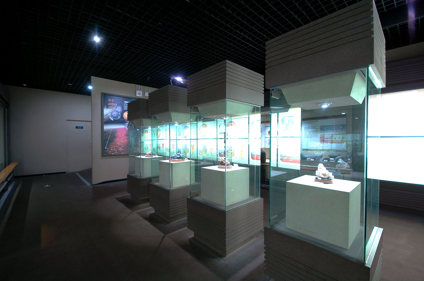 제1전시실 지질관은 약 45억년 지구 역사를 슬라이드 하여 효과음과 발브레이팅 장치를 이용한