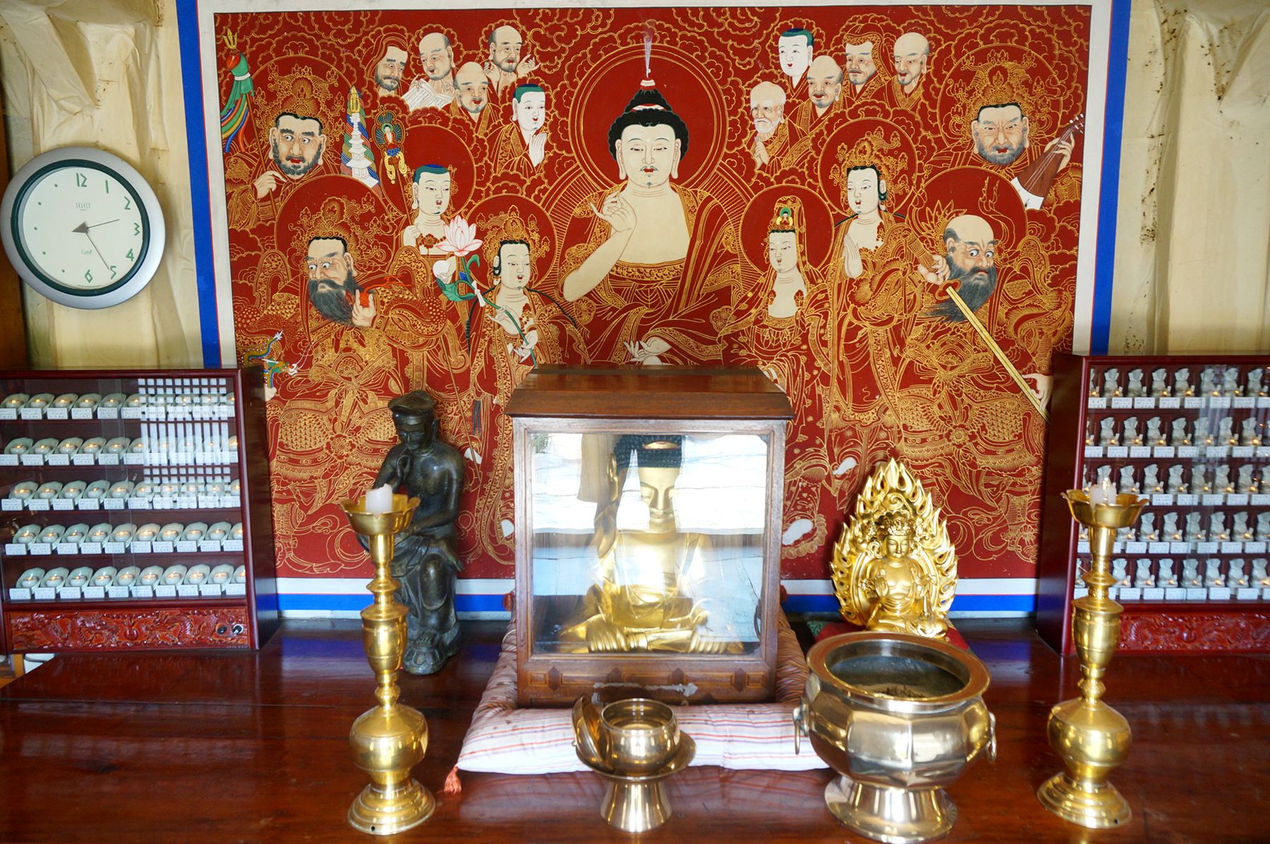 아미타부처님을 주불로 모시고, 양쪽에 관세음보살과 대제지보살을 협시불로 봉안했는데요,