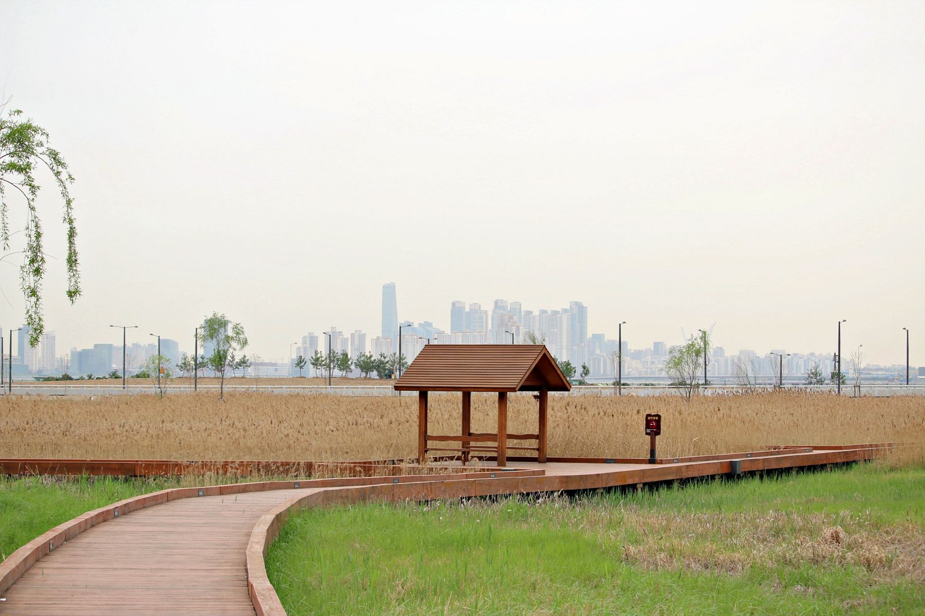 억새 등 다양한 야생초들과 갈대 산책로 등 다양한 편의시설들이 설치되어 있습니다.