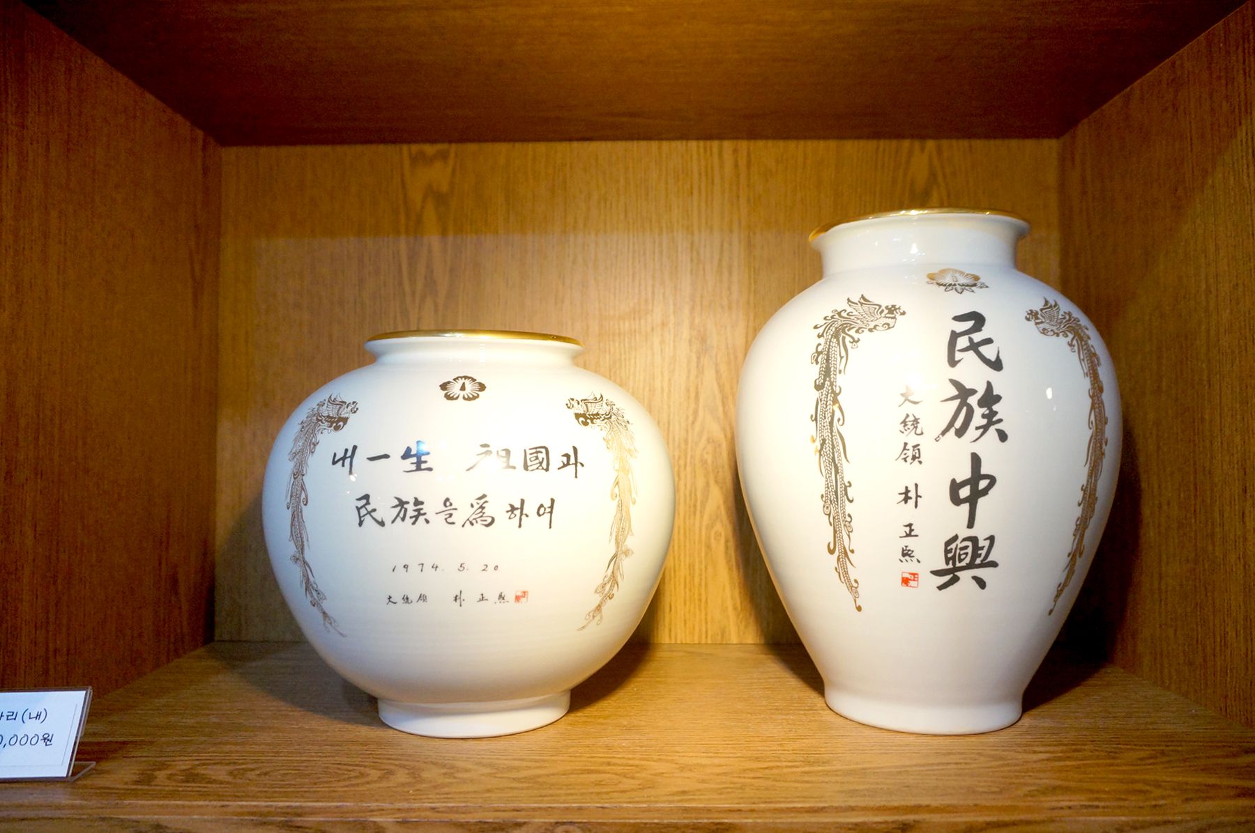 한곳에서는 박 대통령과 관련된 기념품도 볼 수 있고 구입할 수도 있는데요,