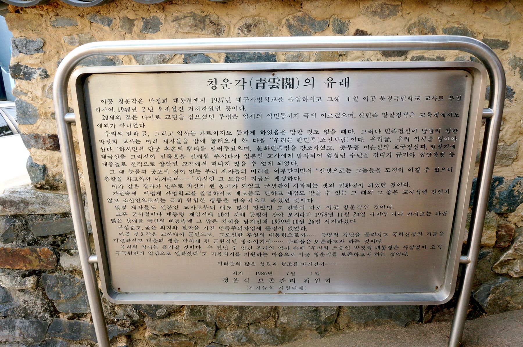 문경에 위치하고 있는 청운각은 박정희 대통령과 인연이 깊은 곳으로