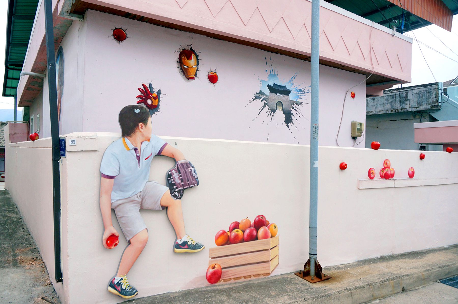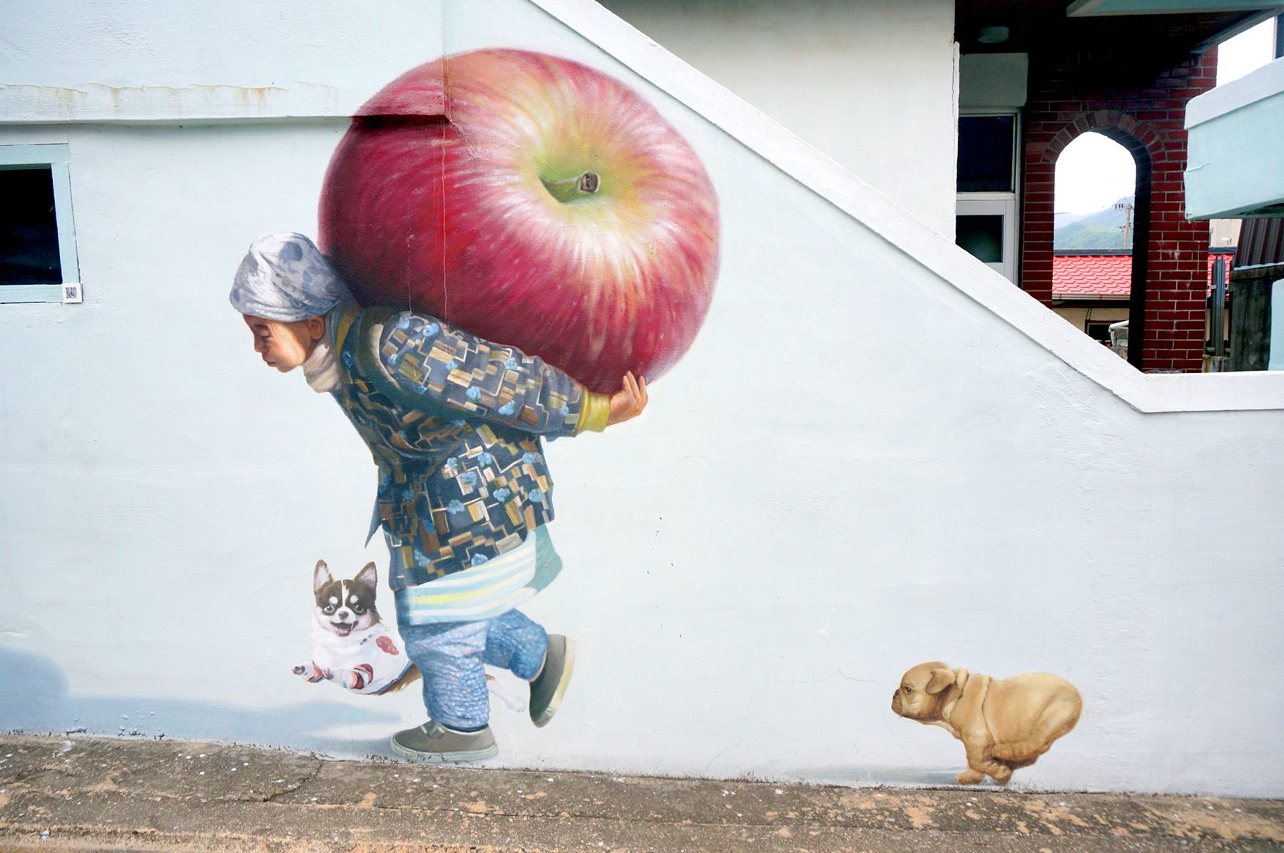 재미있는 그림과 함께 문경의 특산품인 사과를 주제로 한 벽화도 볼 수 있어