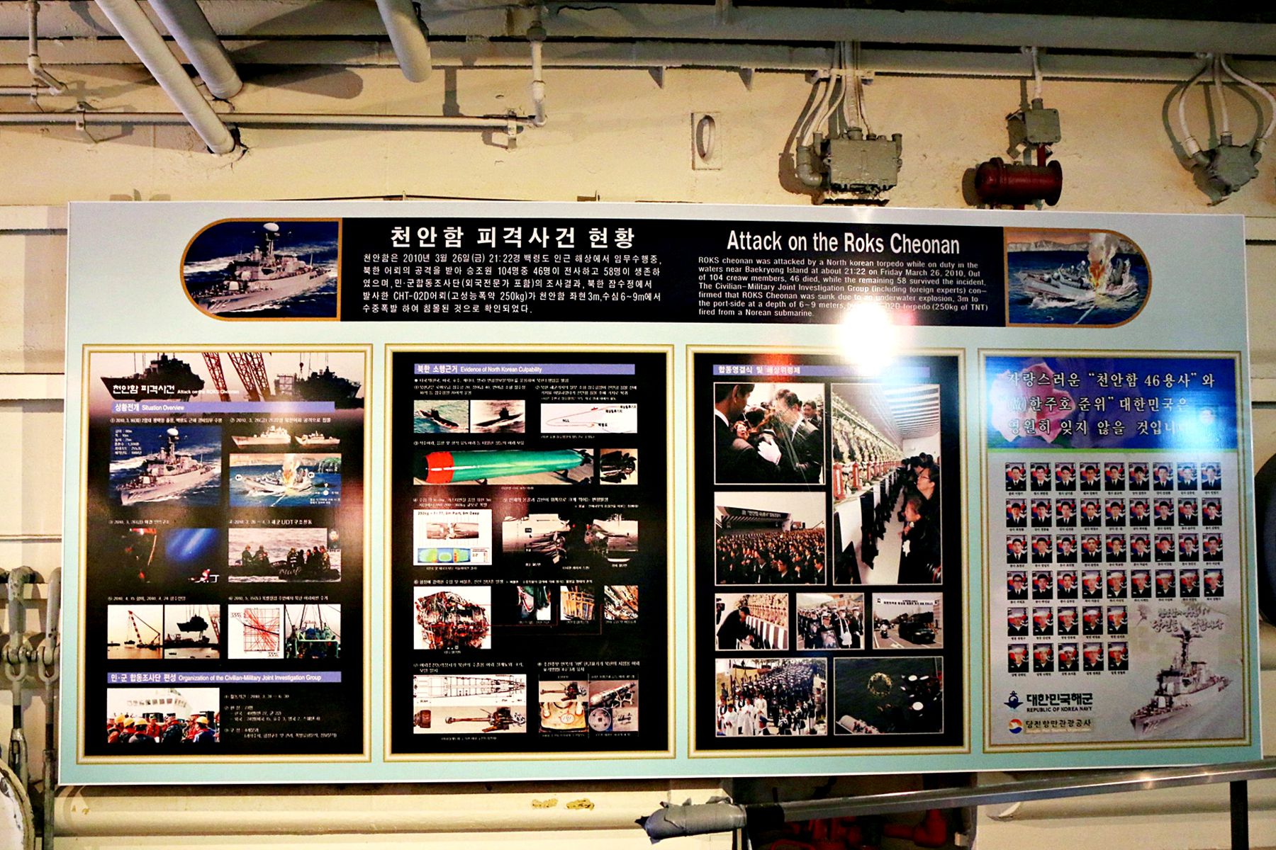 화산함은 갑문구조로 되어 있으며 해군의 의무부터 외교까지 6가지 테마 이야기가 판넬과 함께 전시되어 볼거리를 더해줍니다.