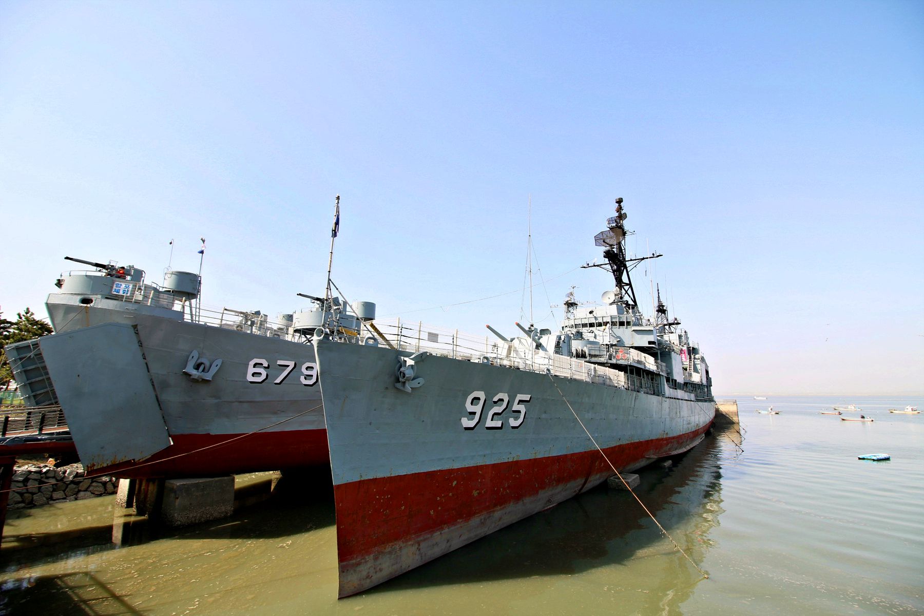당진의 최고 관광지로 꼽히는 삽교호국민관광지 앞바다에서 화산함, 전주함 두척의 군함을 만나볼 수 있으며