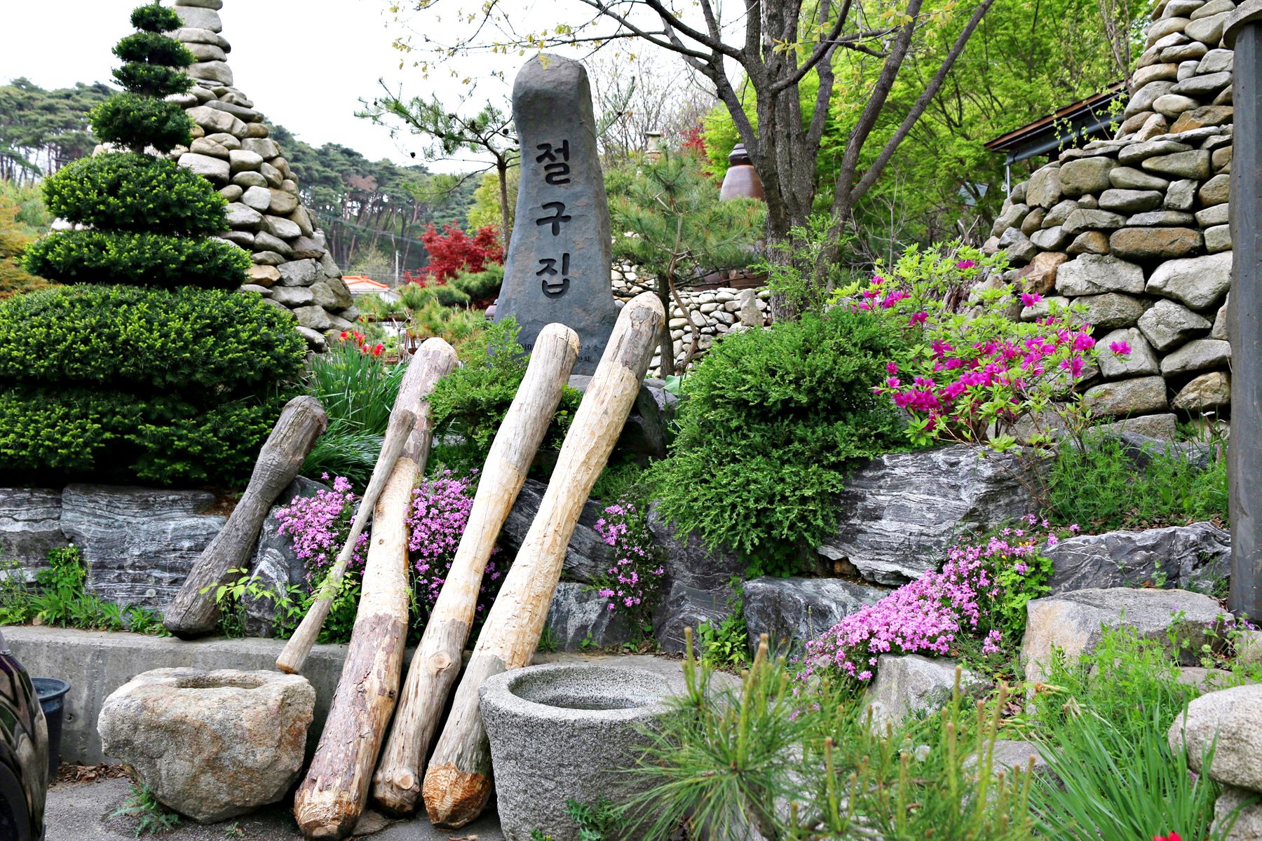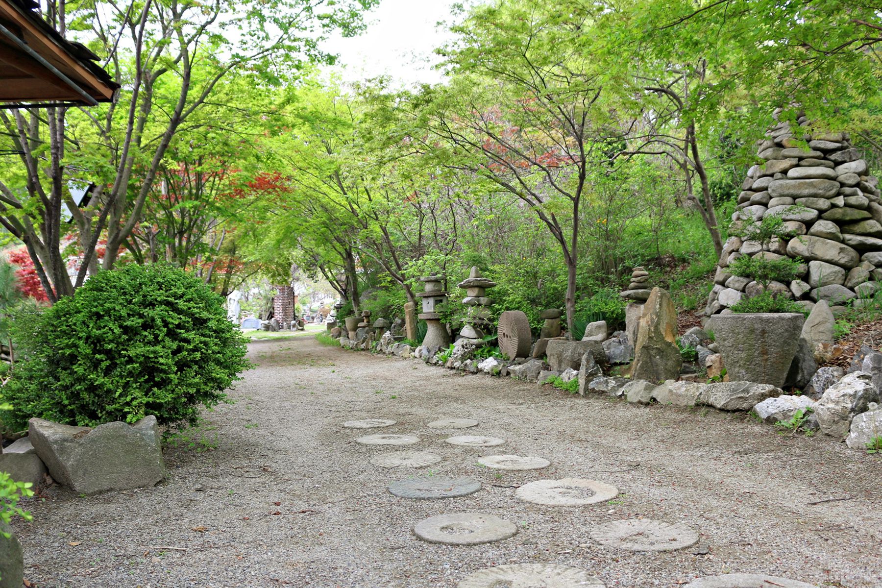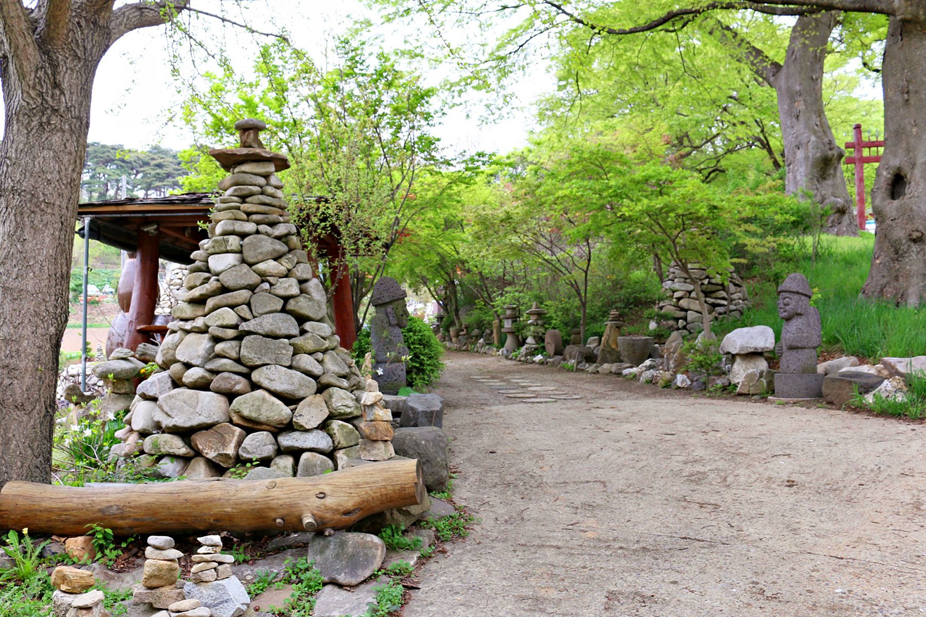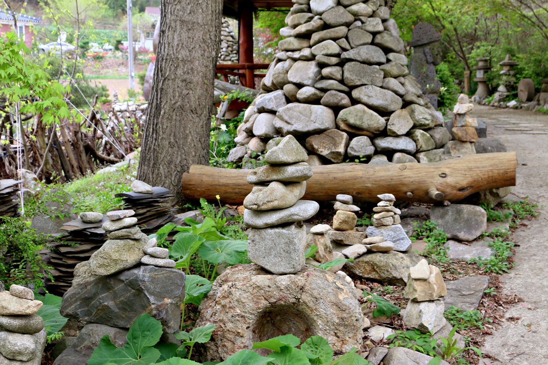 향교 초입 절구집 마당에 돌탑이 세워져있어 가로수길의 분위기를 한껏 돋웁니다.
