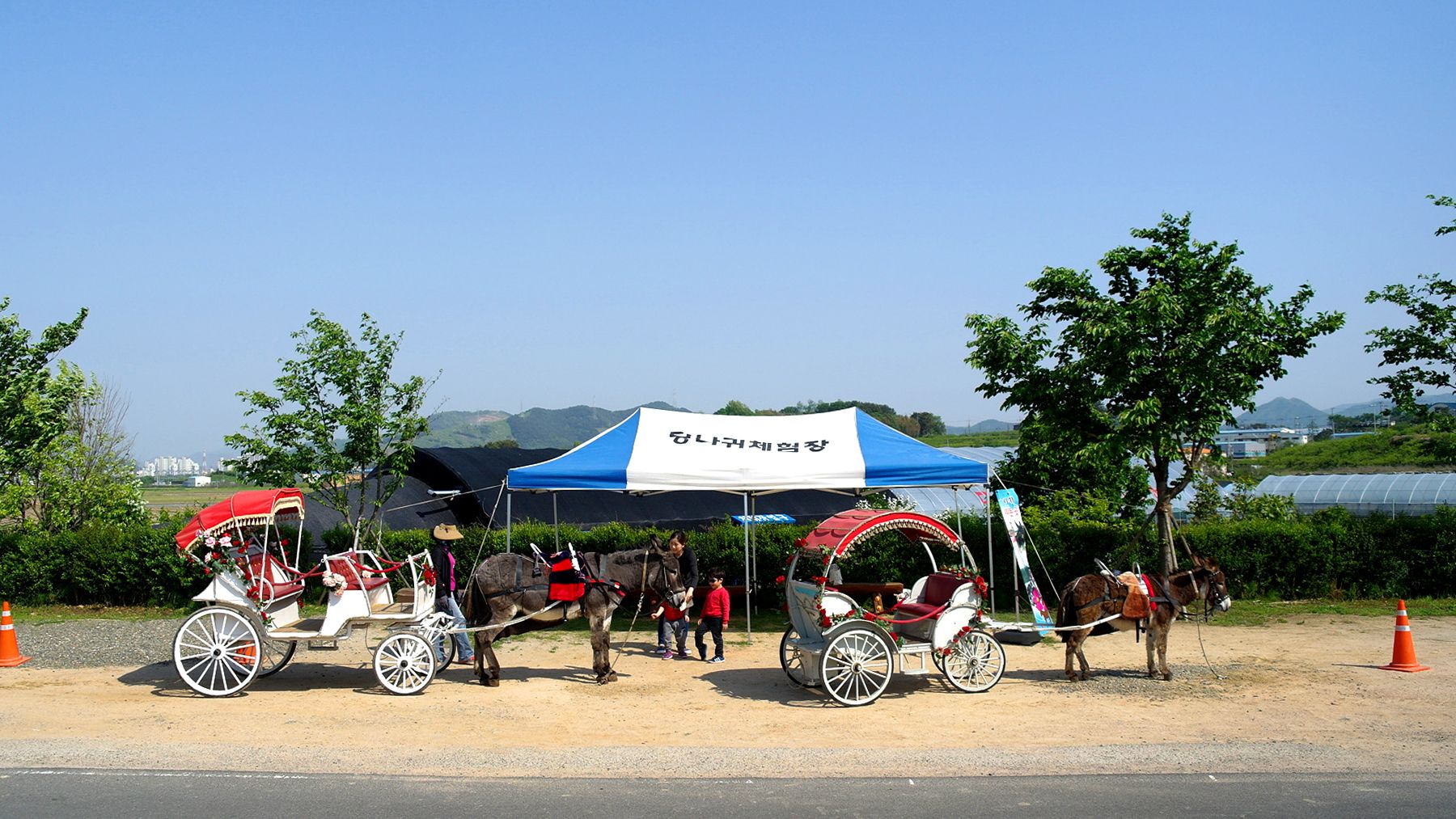 당나귀체험장에서 당나귀를 타고 저수지 주변 산책을 즐겨보는건 어떨까요?