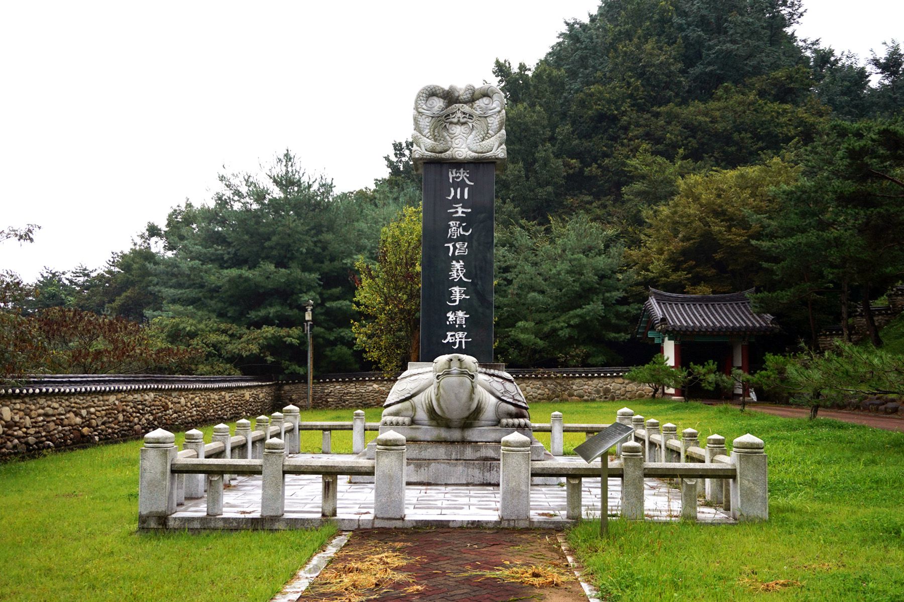 주차장에 주차를 하고 홍살문을 지나 가장 먼저 만나는 곳은 '합천임란창의기념탑'입니다.