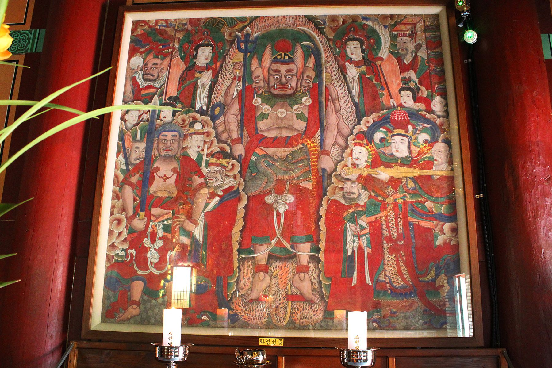 전체 구도가 비교적 정밀하고 채색도 잘 보존되어 전해지고 있는 탱화입니다.