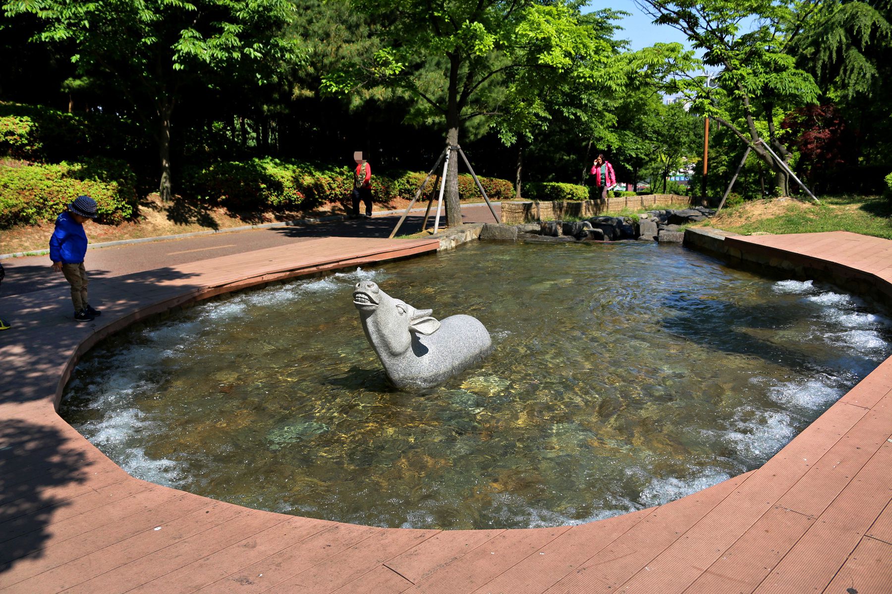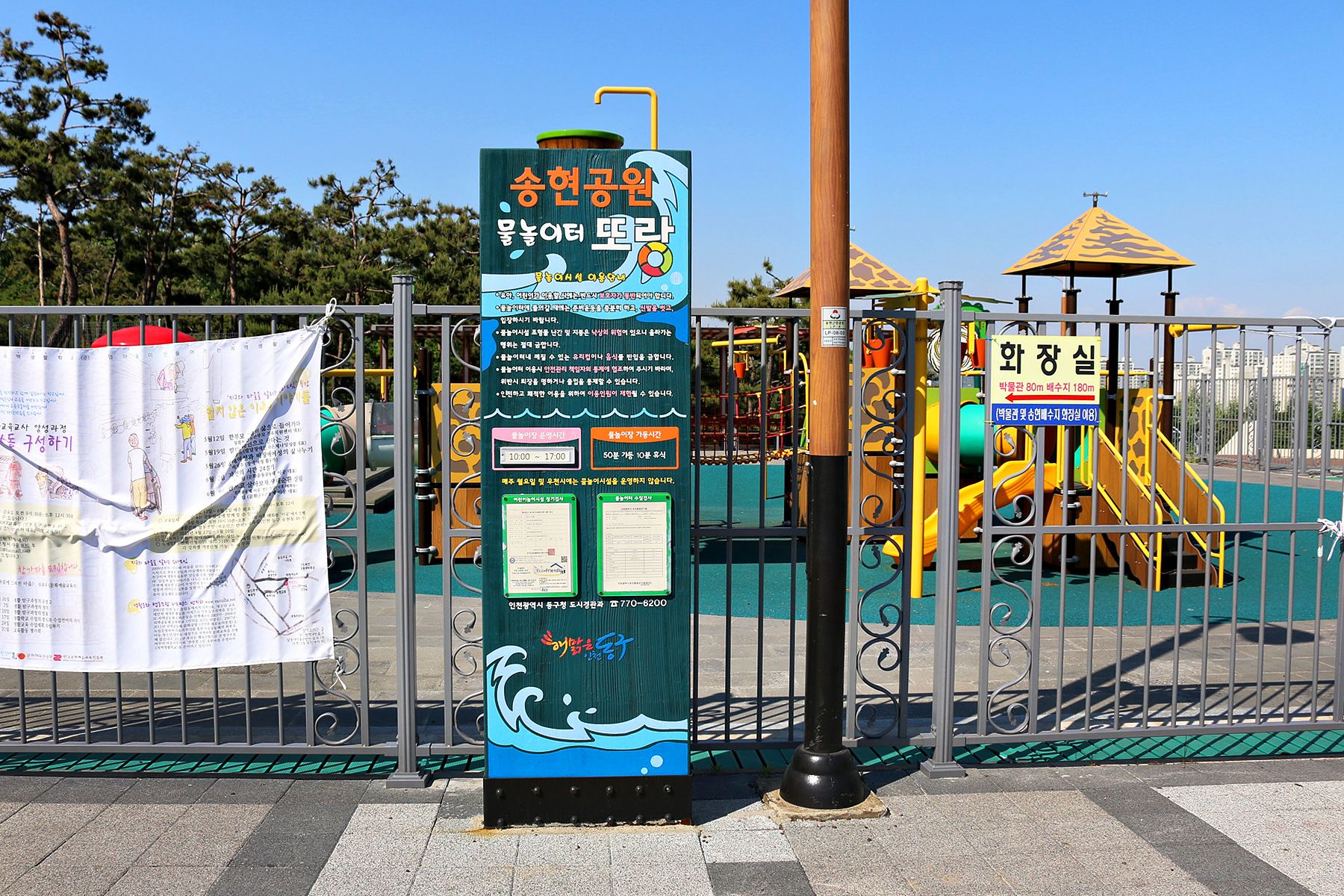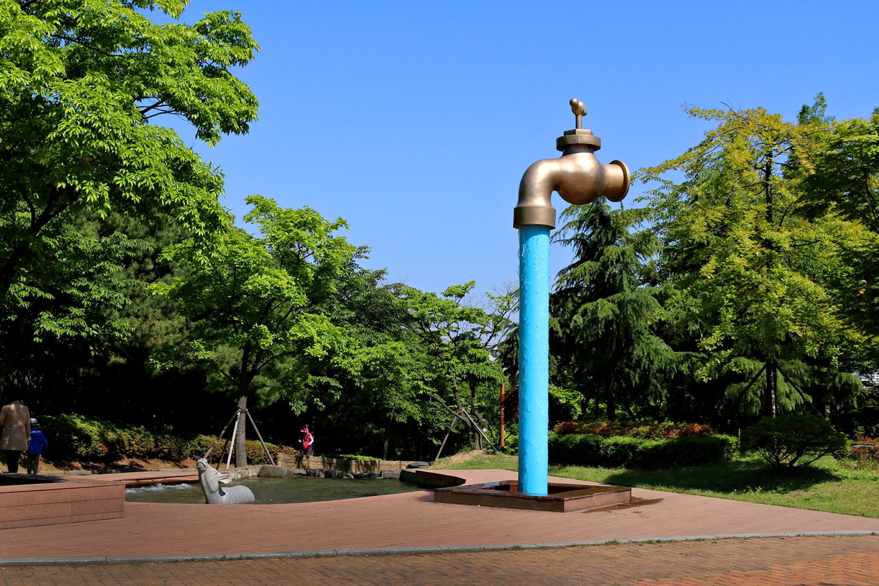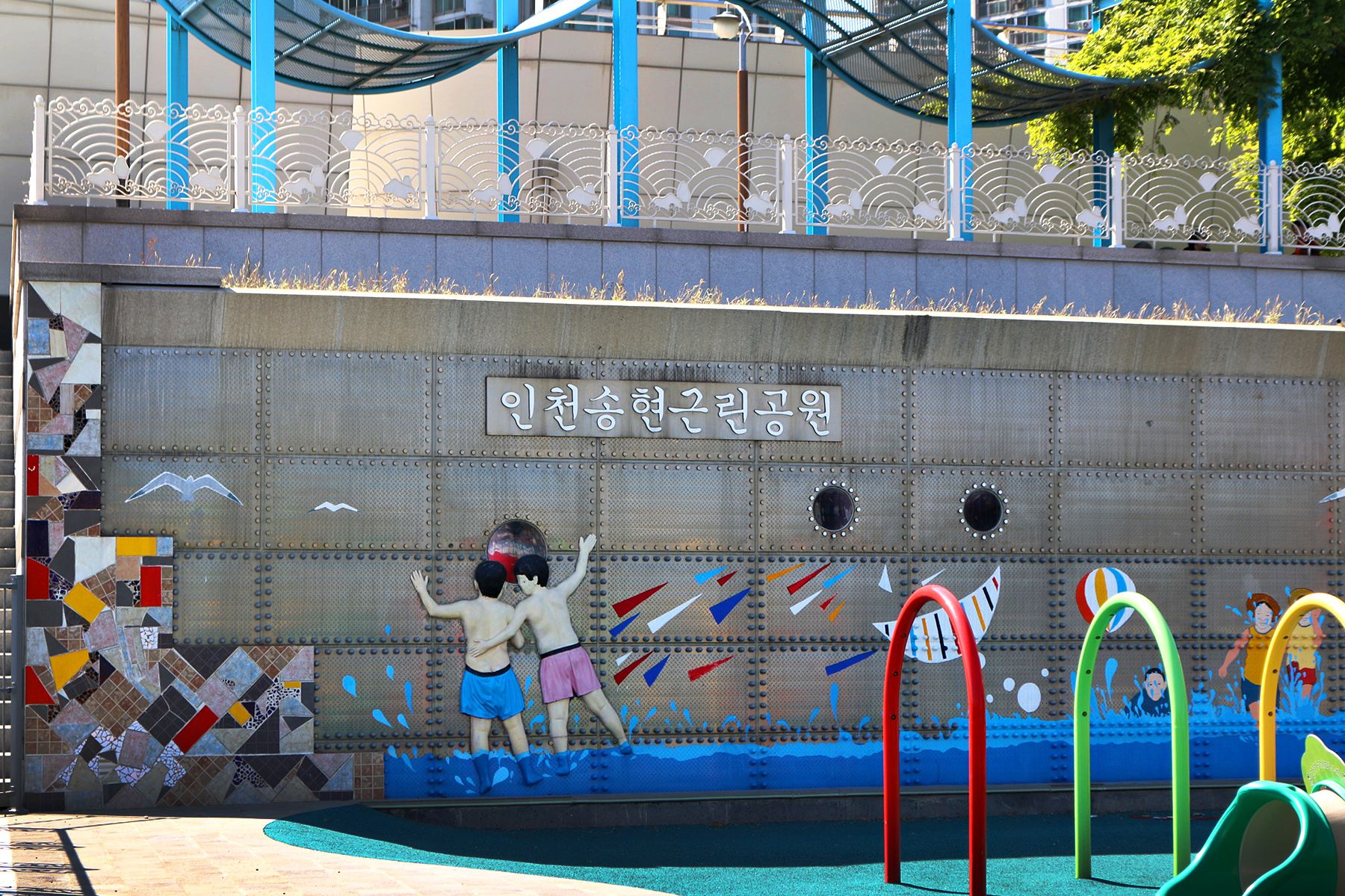 송현근린공원은 물놀이터 또랑을 비롯한 대형수도꼭지조형, 계류 및 폭포시설, 어린이놀이터와 함께