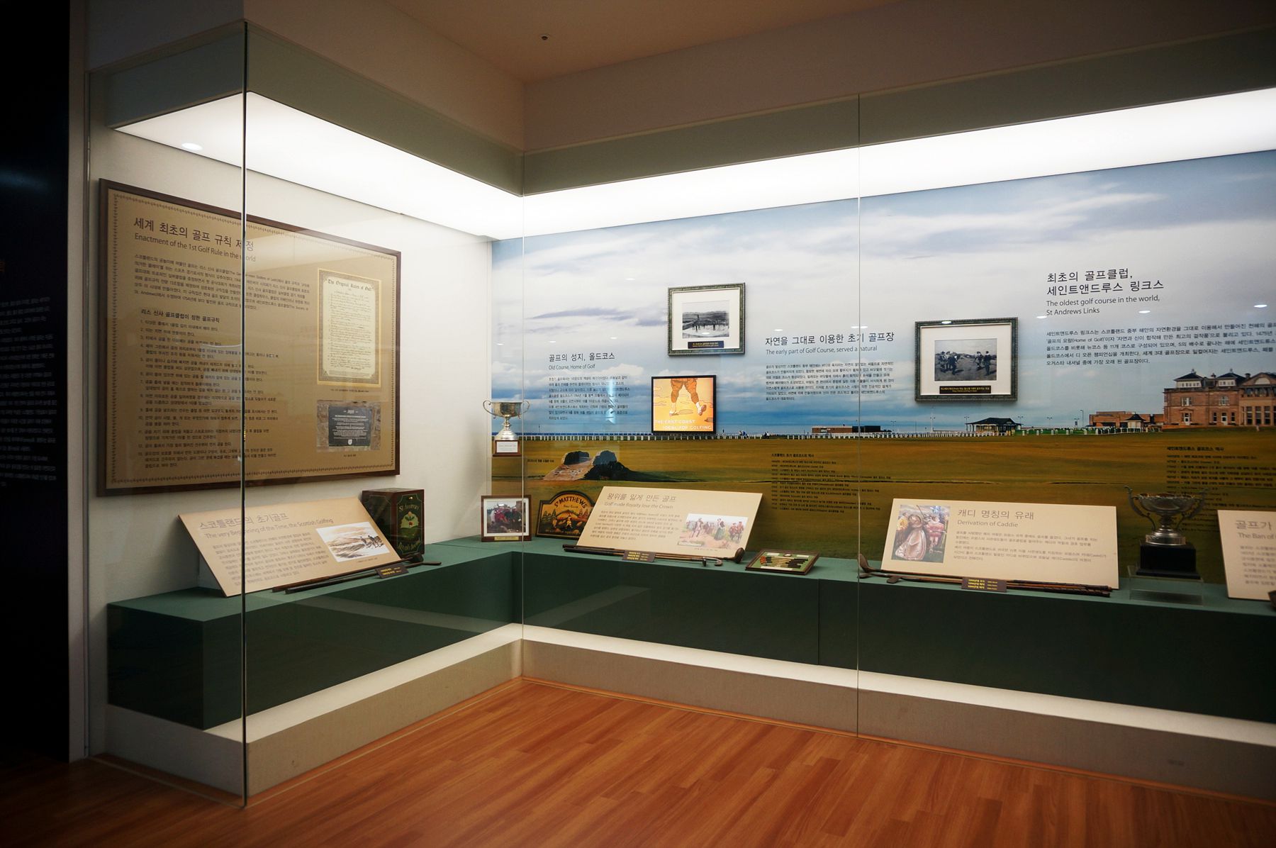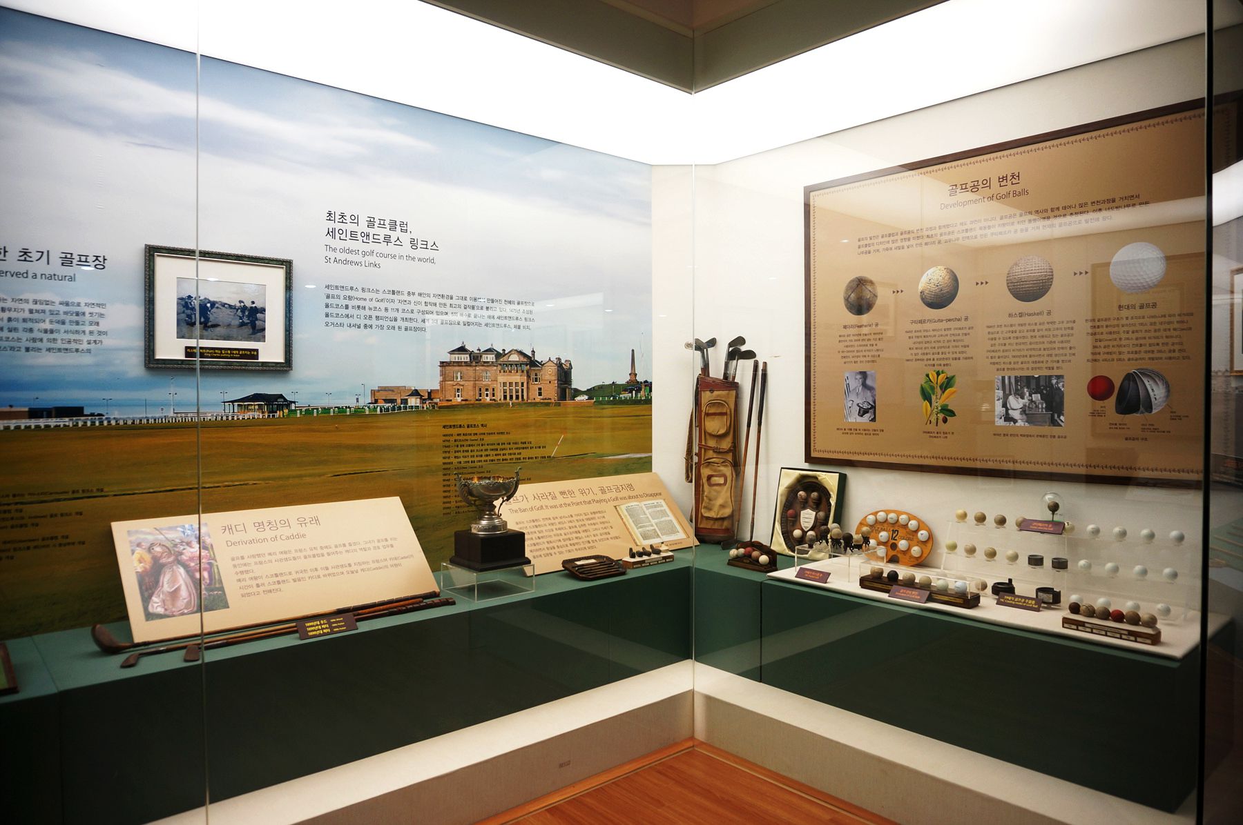 전시관은 6개 코너로 구성되어 있고, 19세기의 골프클럽을 비롯한 골프 관련 유물과
