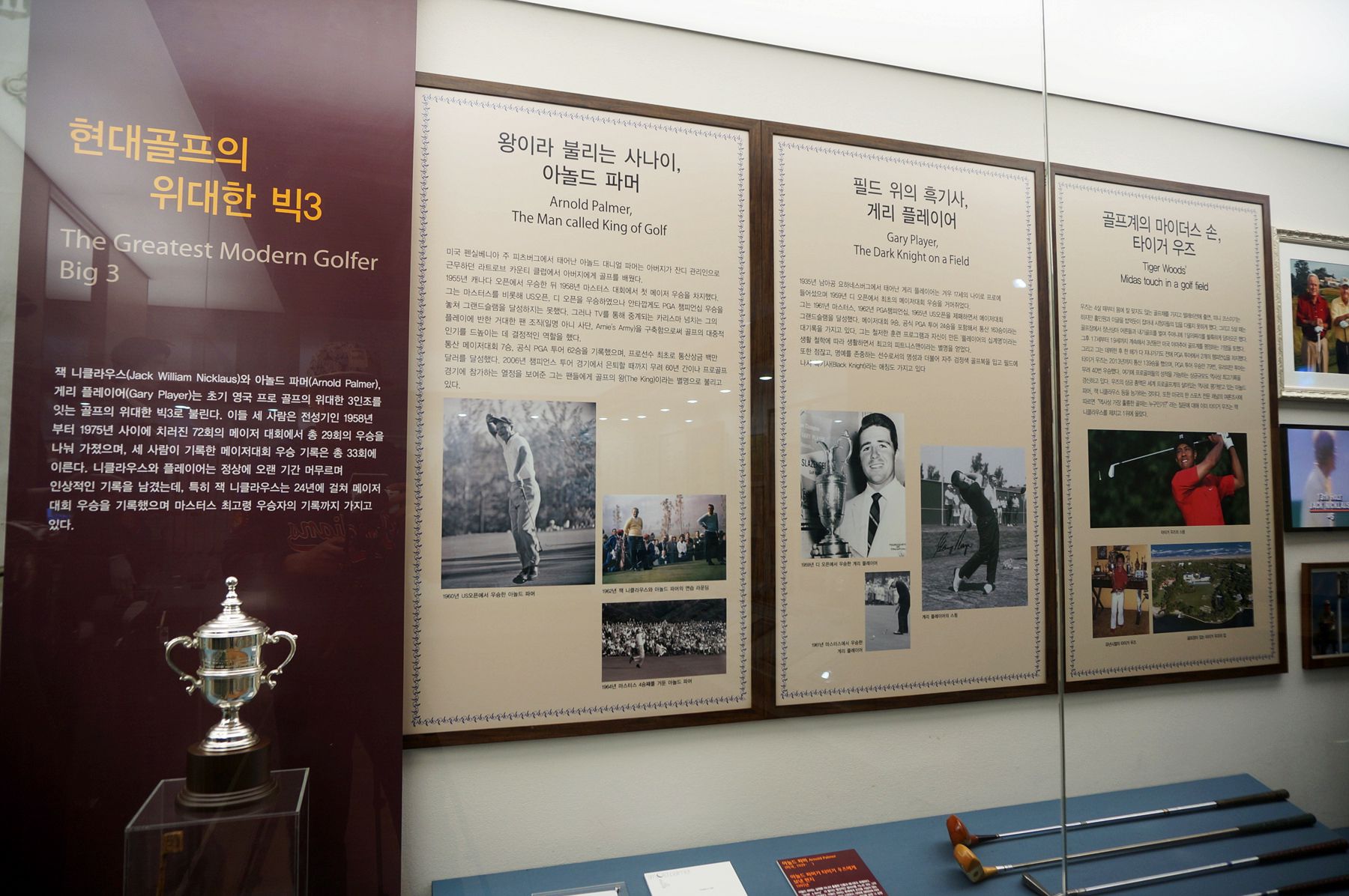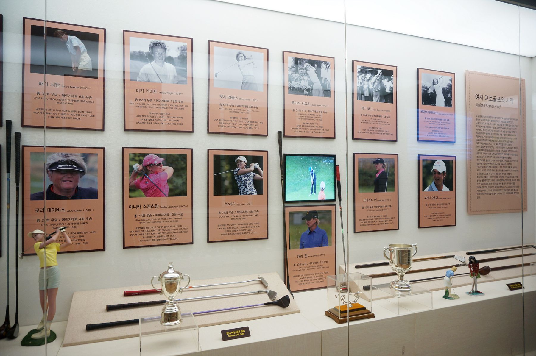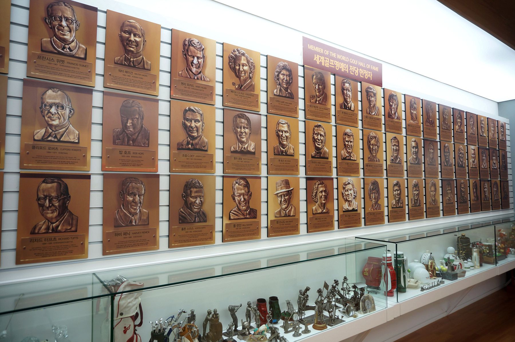 현대 골프의 위대한 빅 3 인물과 여성 골퍼들, 그리고 한국의 골퍼들도 자랑스럽게 전시되어 있습니다.