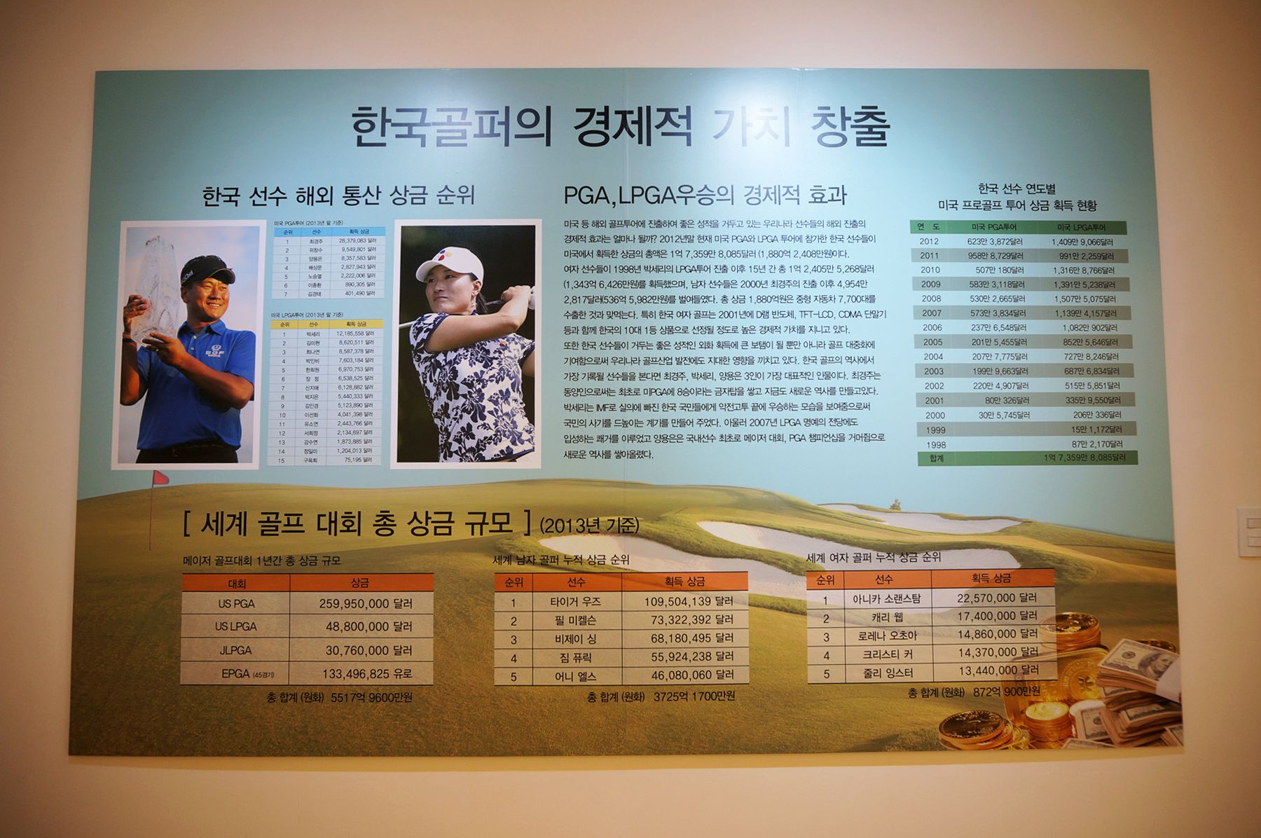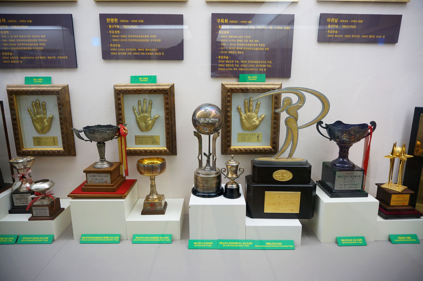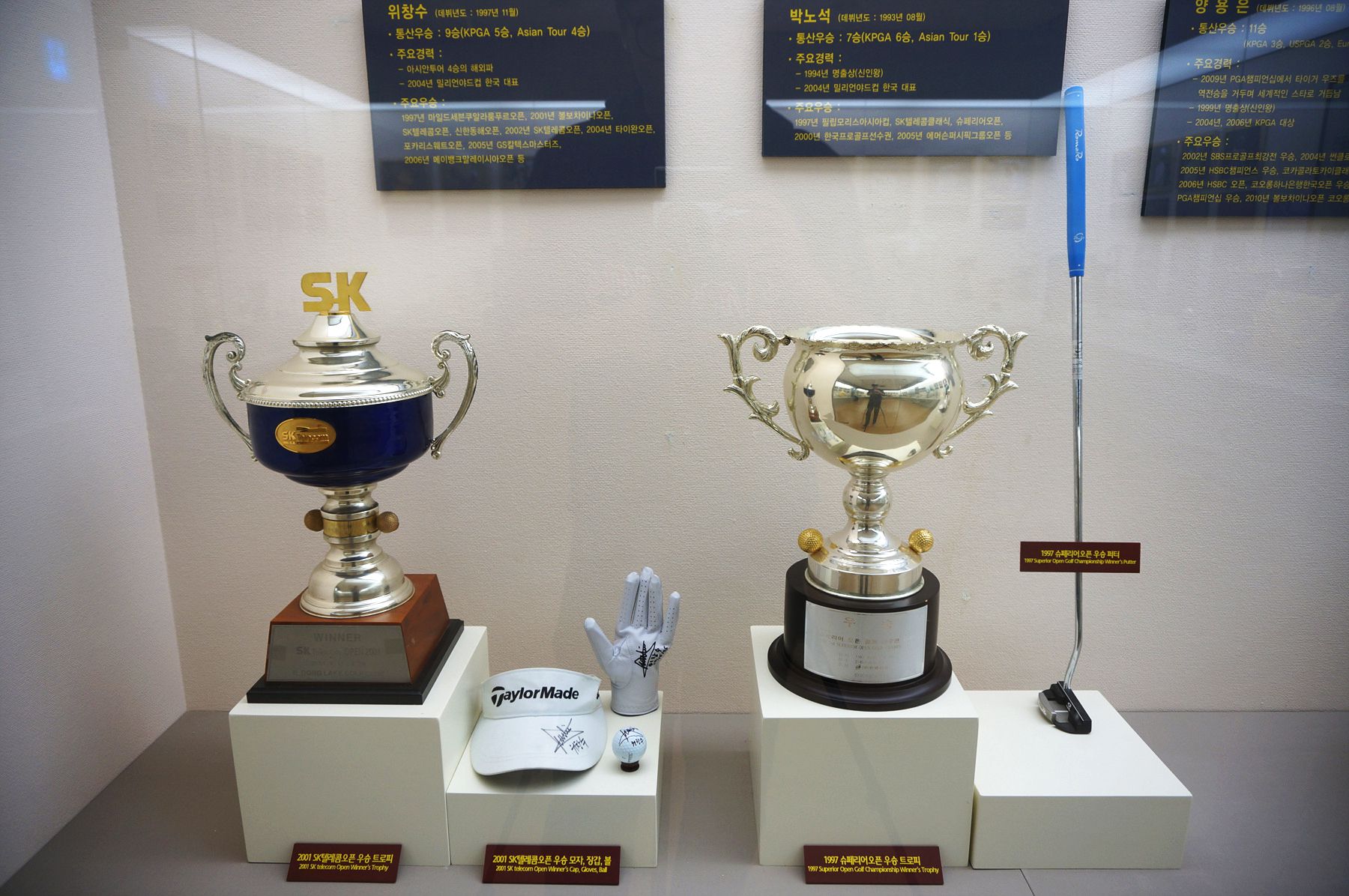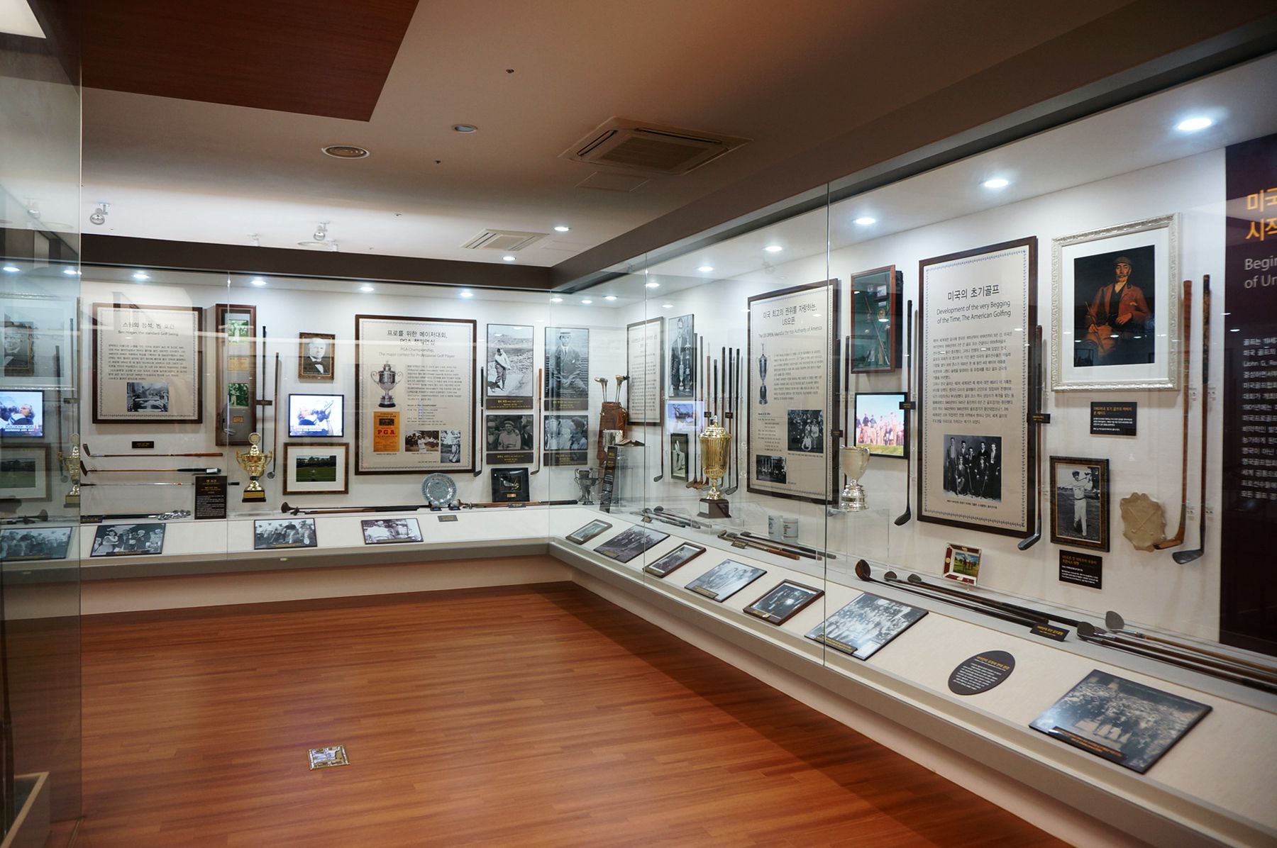 현대 골프의 위대한 빅 3 인물과 여성 골퍼들, 그리고 한국의 골퍼들도 자랑스럽게 전시되어 있습니다.