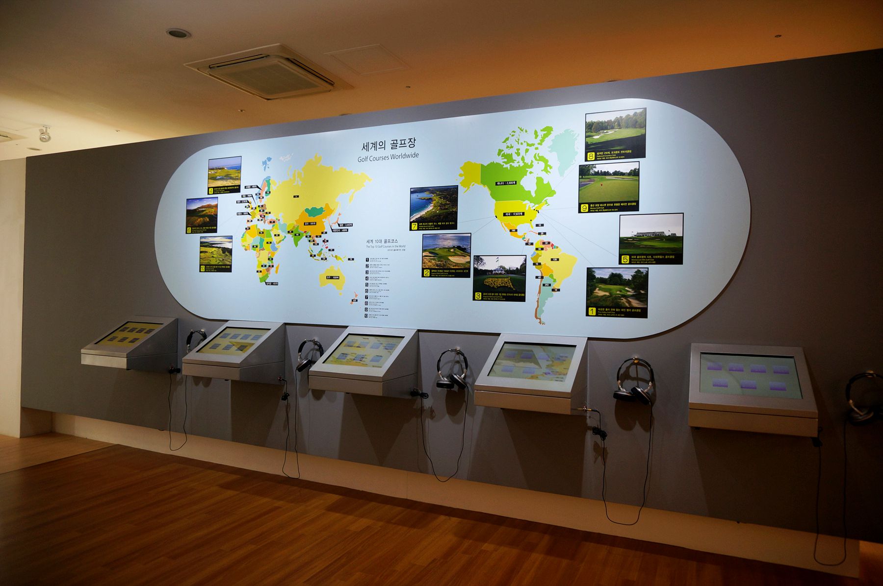 밑에 있는 헤드폰을 착용하시고 플레이를 누르시면 골프의 역사와 골프장 현황을 자세히 들어보실 수 있습니다.