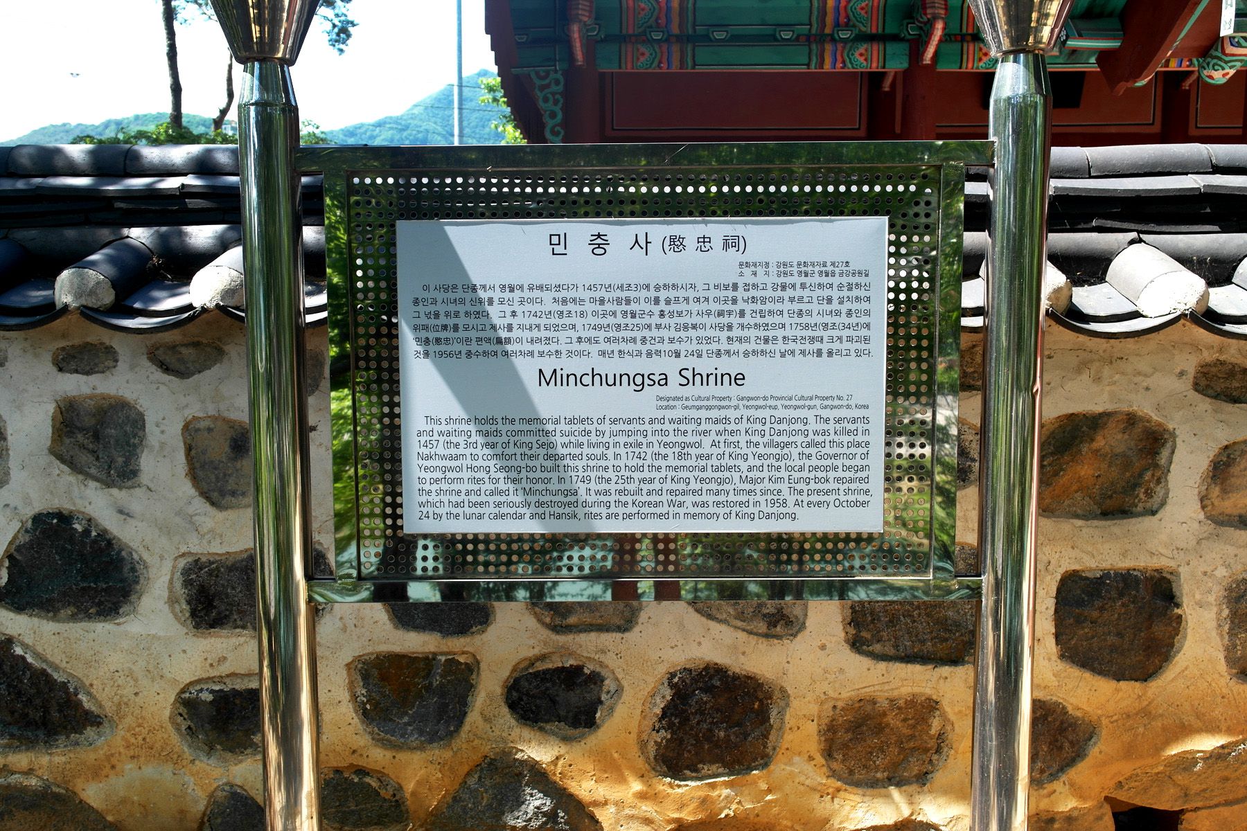 민충사는 강원도 문화재자료 제27호로 지정되었으며 한국전쟁 때 크게 파괴되었으나