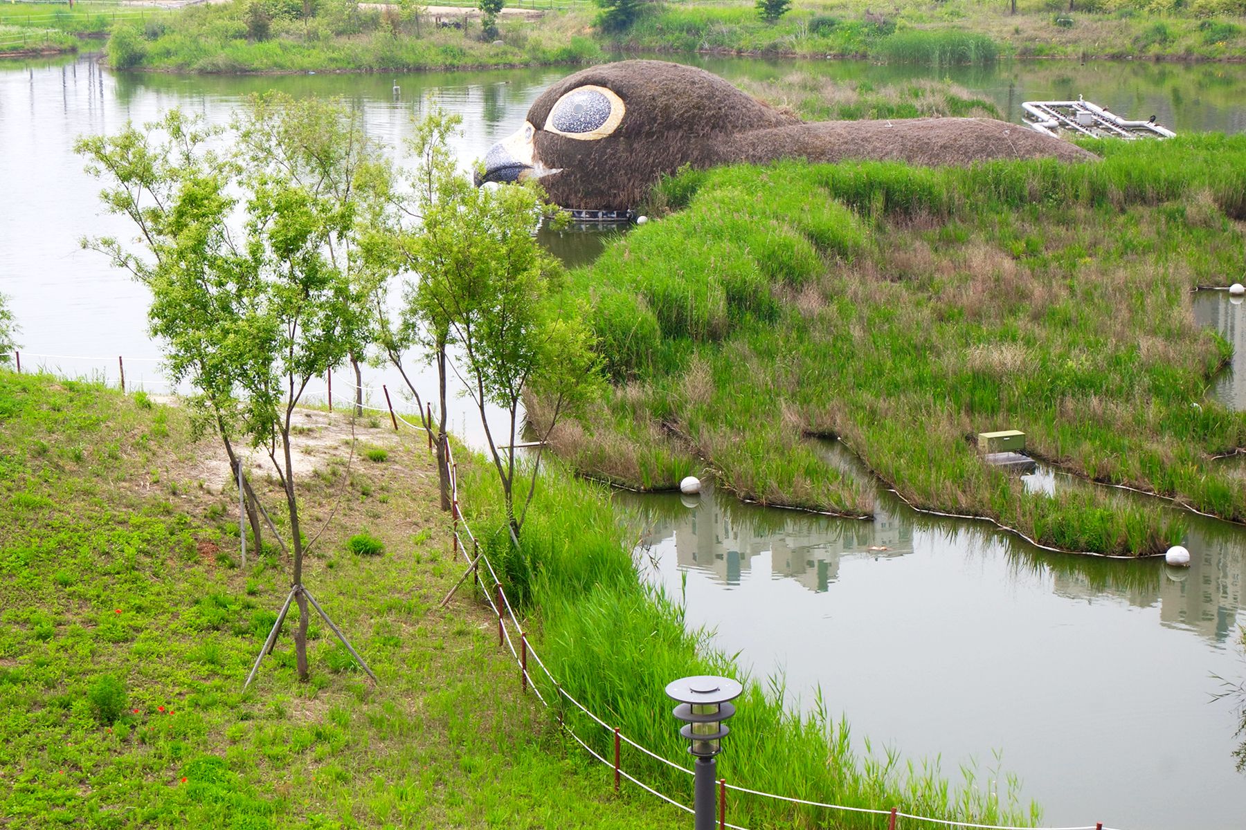 인공 식물섬인 황조롱이, 전시와 학습의 공간 에코토리움, 화초가 자라는 테라스가든 등