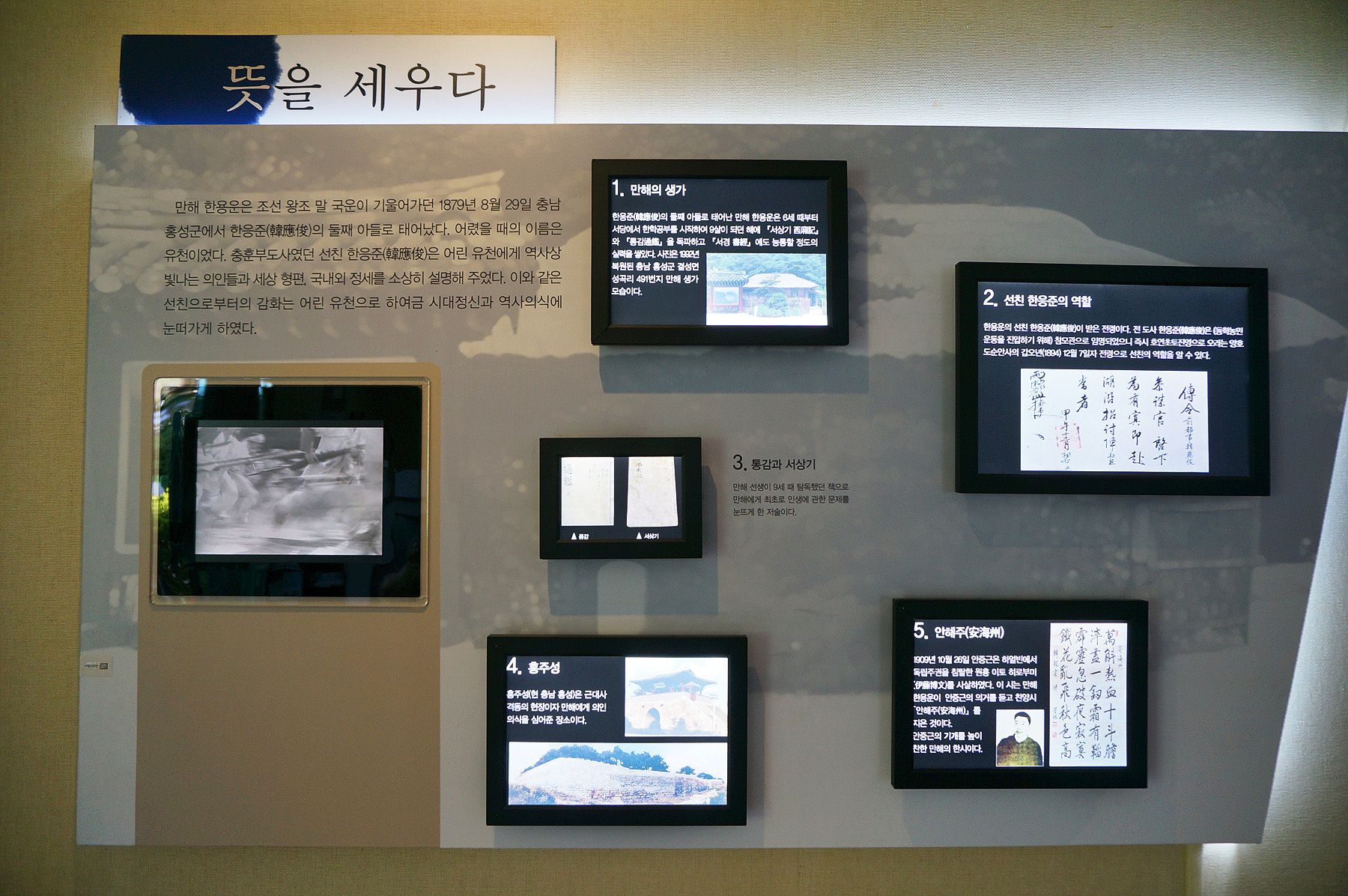 한용운 선생의 삶과 업적을 전시한 만해기념관의 전시물들은