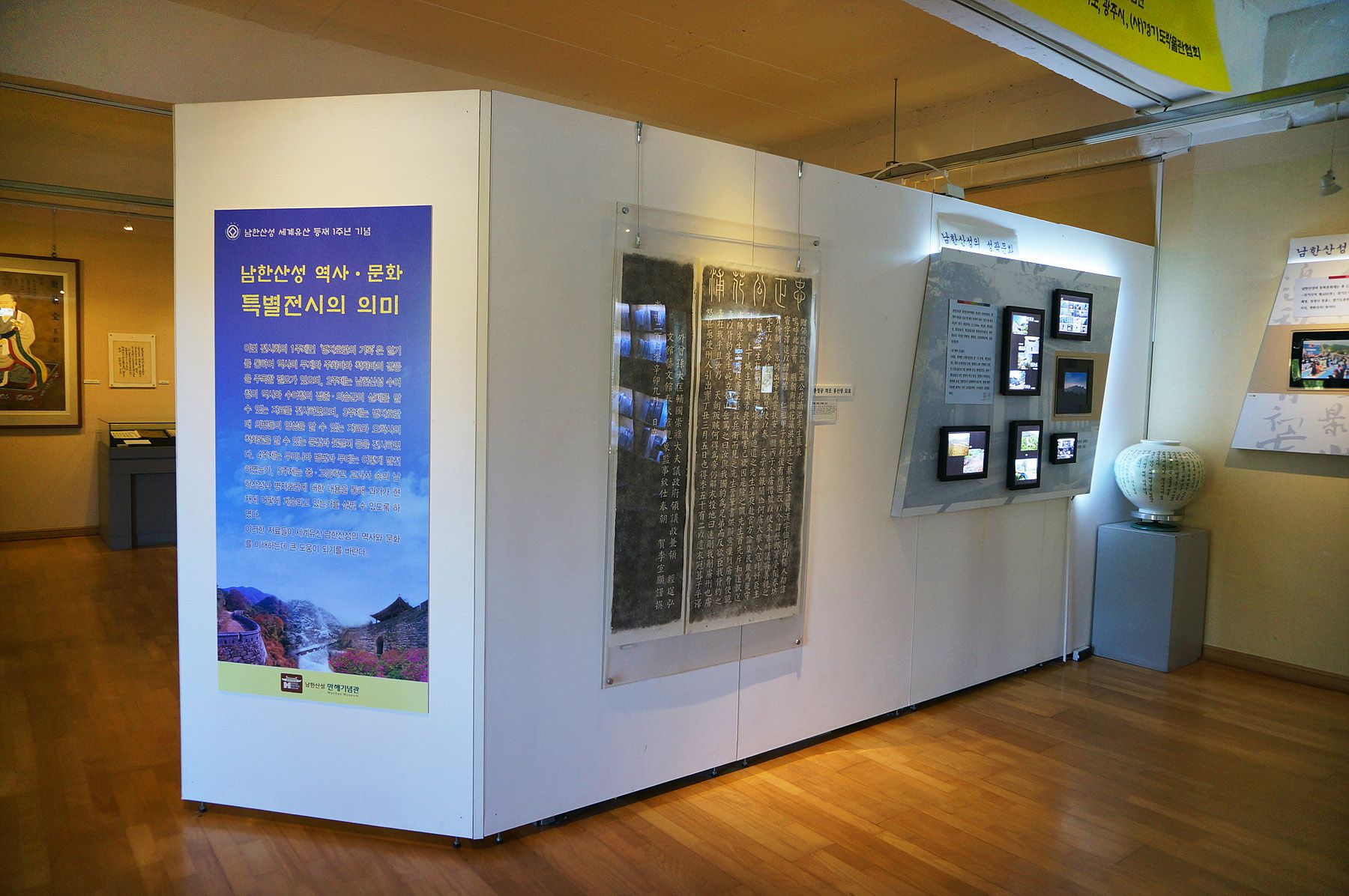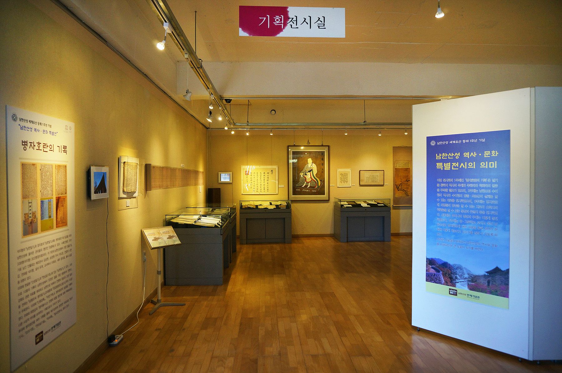 특별전시관에는 남한산성의 역사와 의미에 대한 다양한 유물들이 전시되어 있습니다.