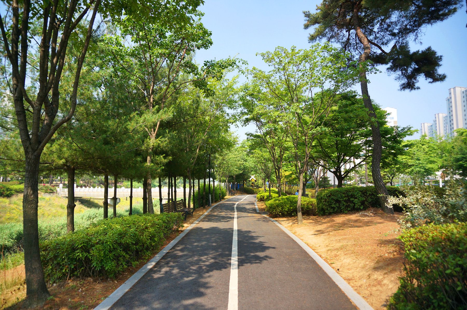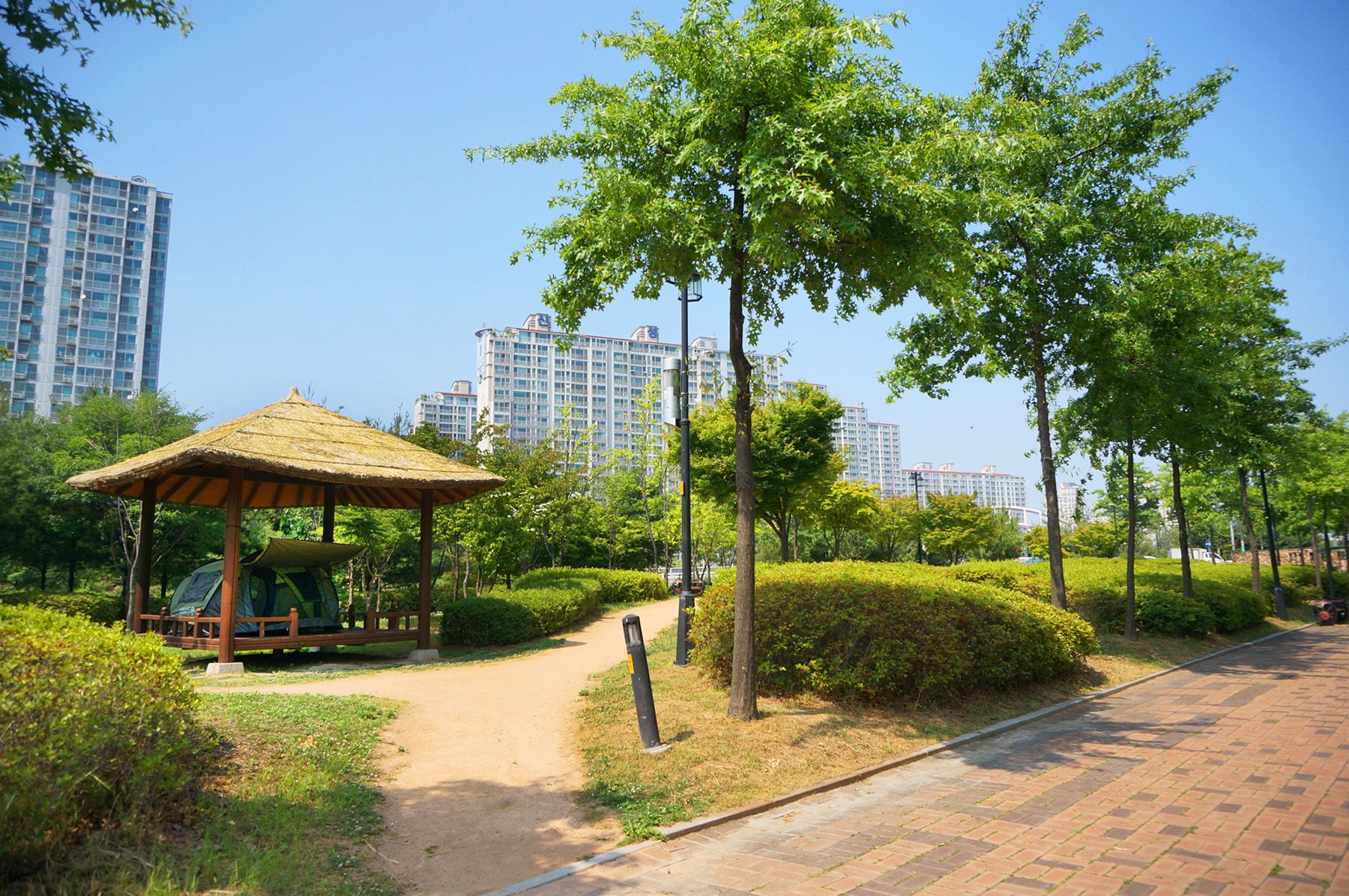 공원은 아파트촌과 굴포천 사이에 위치해있어 근처 굴포천의 천변길과도 연계되어 있습니다.