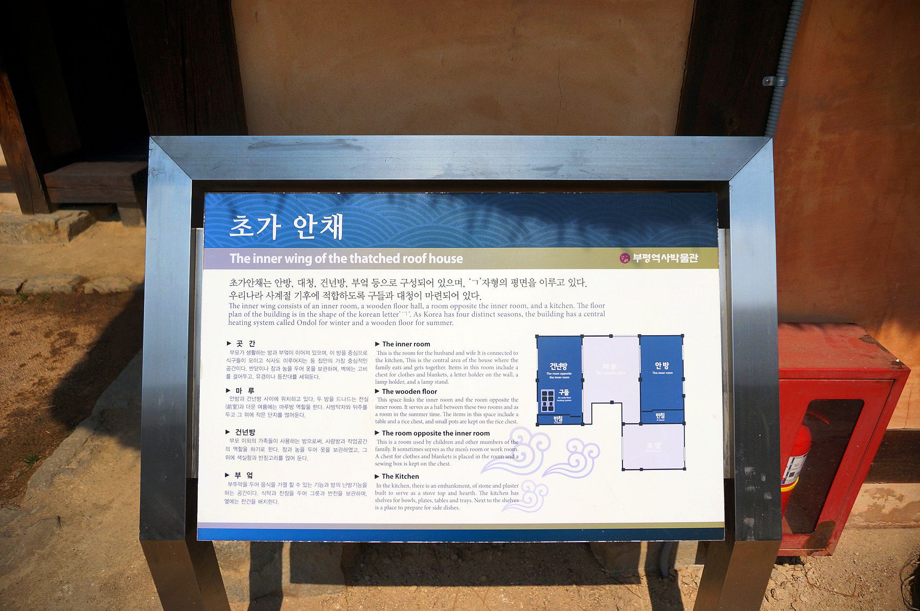 초가의 곶간, 마루, 건넌방, 부엌의 형태를 직접 확인할 수 있고, 설명도 확인할 수 있습니다.