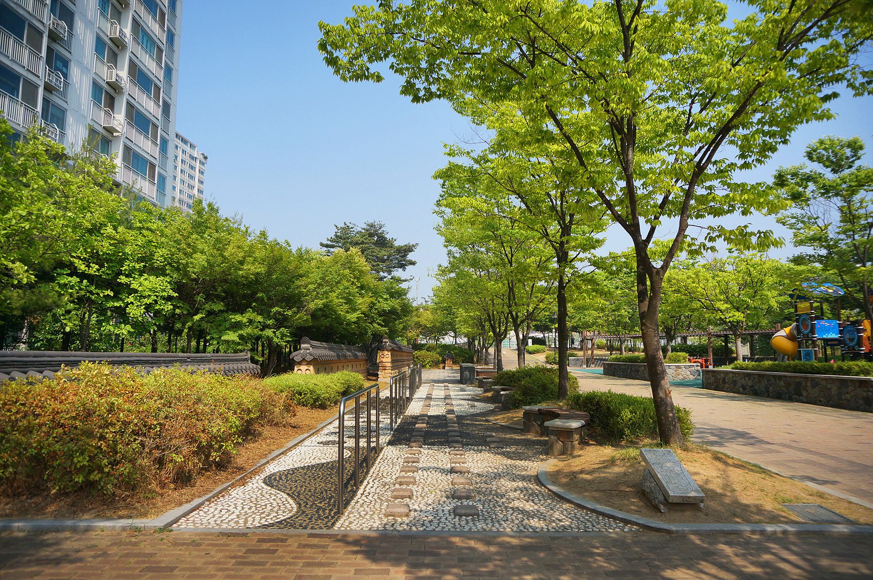 아파트 사이에 있는 공원이지만 꽤 큰 규모로 지역 주민들의 휴식처가 되고 있습니다.