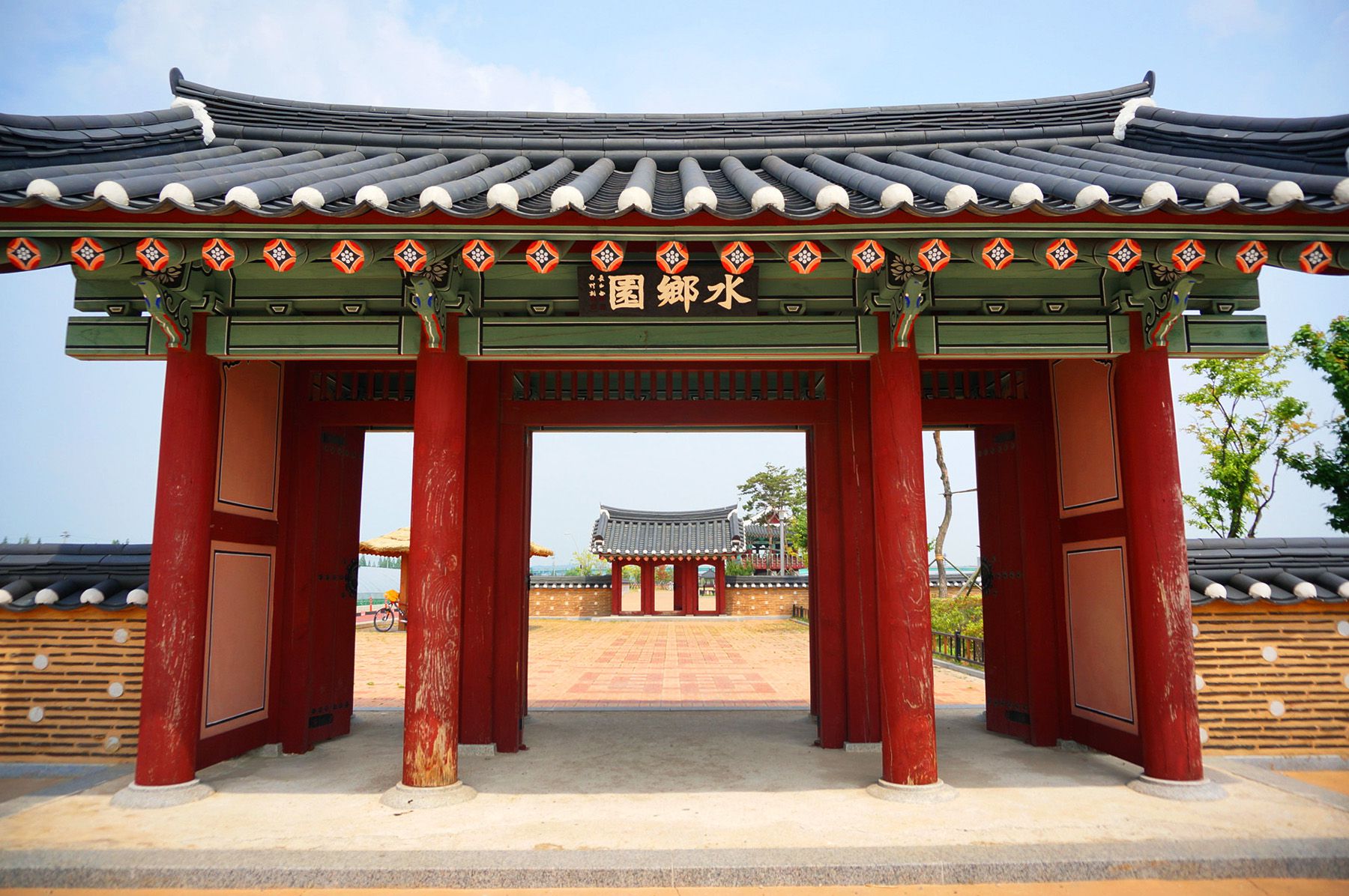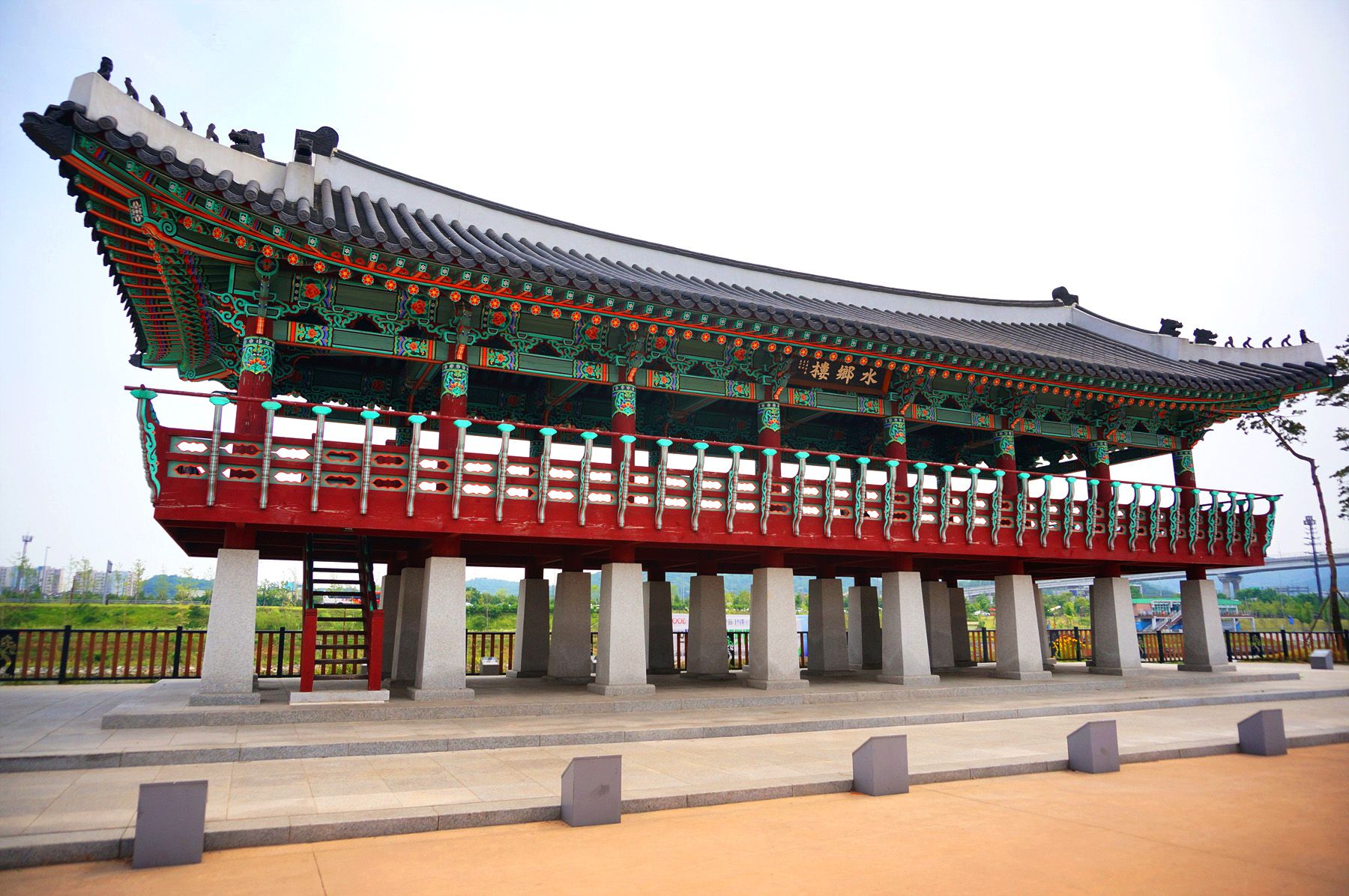 이것은 옛 궁궐에 사용되던 건축양식을 본 따 세운 것으로 격높은 전통누각의 모습을 볼 수 있습니다.