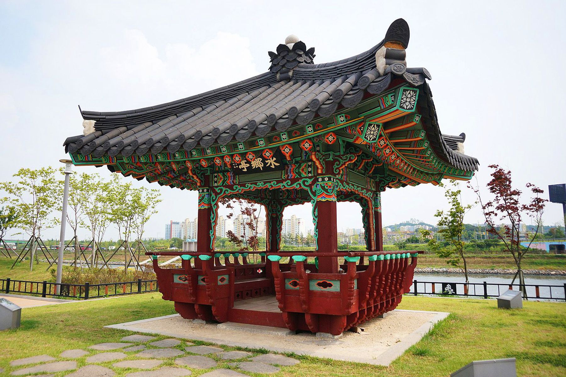 시원한 강가풍경을 눈에 담으며 다양한 전통시설과 체육시설을 즐겨보기 좋도록 조성되어 있어서 여가를 즐기기 좋은 공간입니다.