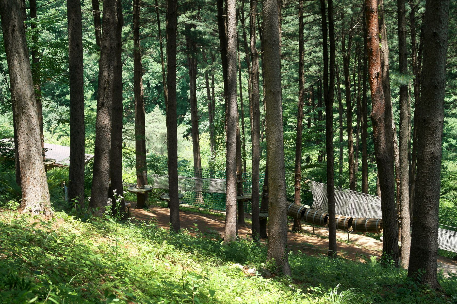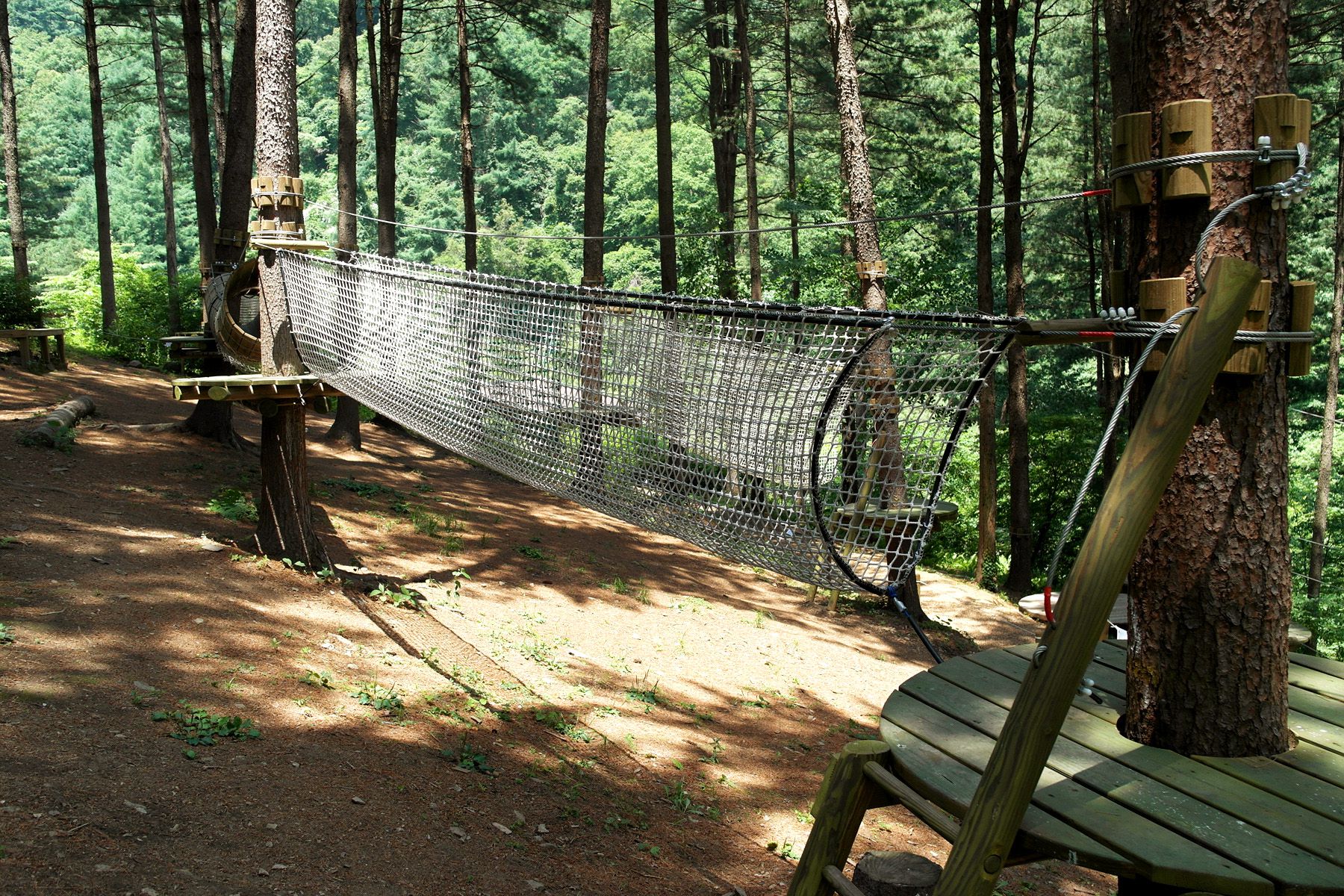 나무와 나무를 와이어, 로프, 목재구조물 등으로 연결해 땅을 밟지 않고 이동하며 자연을 즐길 수 있는 놀이시설로