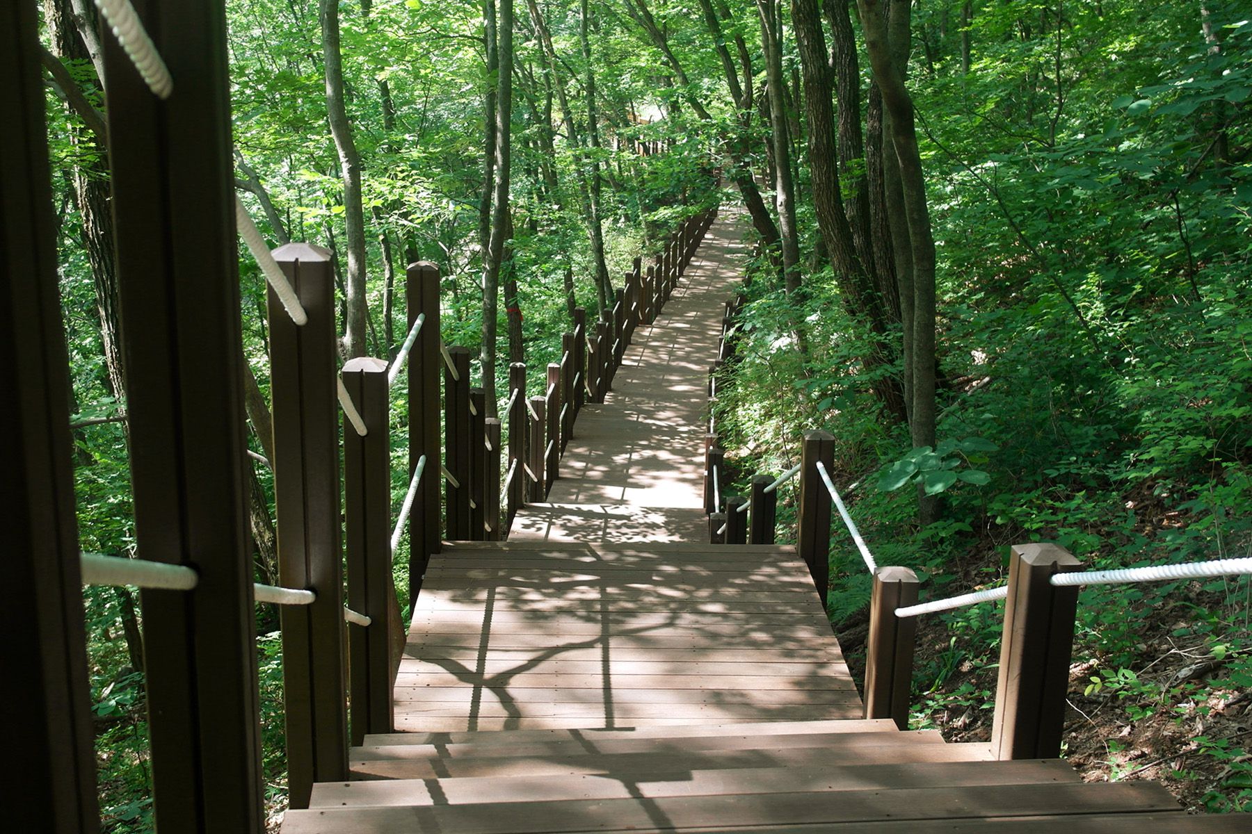 잘 조성된 데크를 따라 걸으며 피톤치드 산림욕을 즐겨보세요.