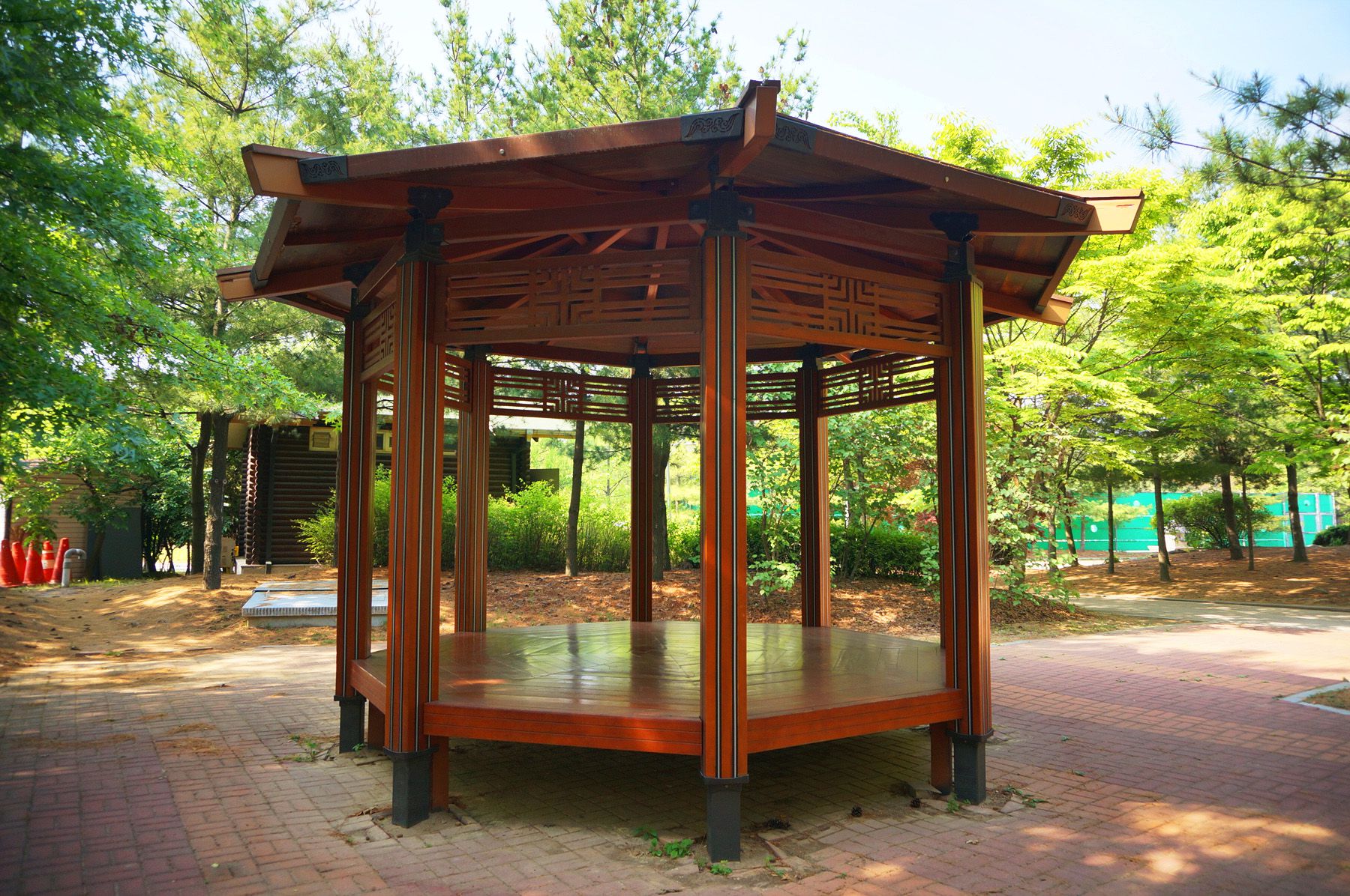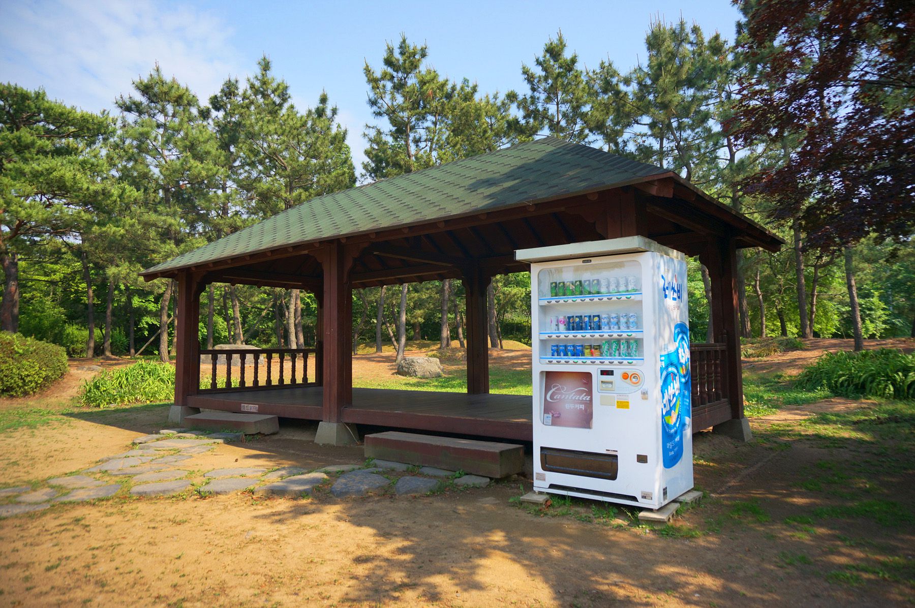 휴식을 취할 수 있는 정자와 함께 자판기가 마련되어 있습니다.
