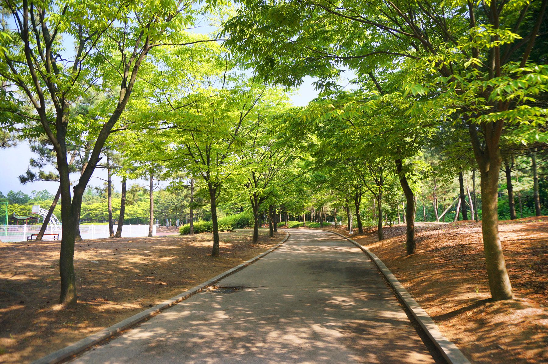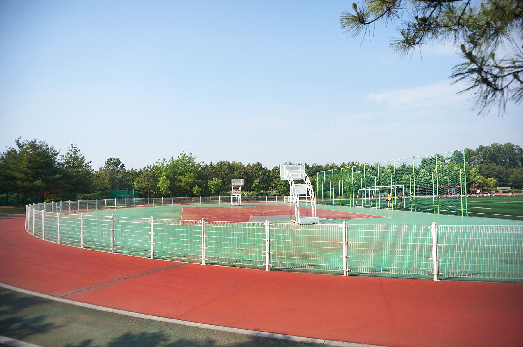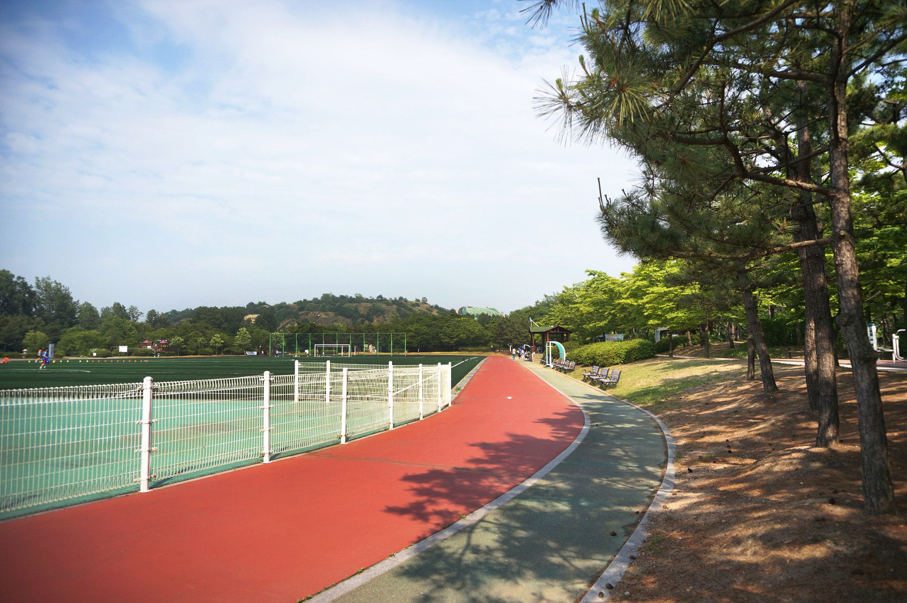 체육시설 옆쪽으로 잘 정돈된 트랙과 함께 산책길도 마련되어 있어