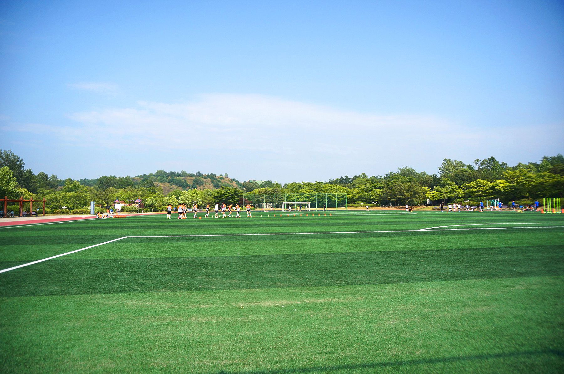 깔끔하게 정돈된 축구장은 공원 정중앙에 자리하고 있습니다.