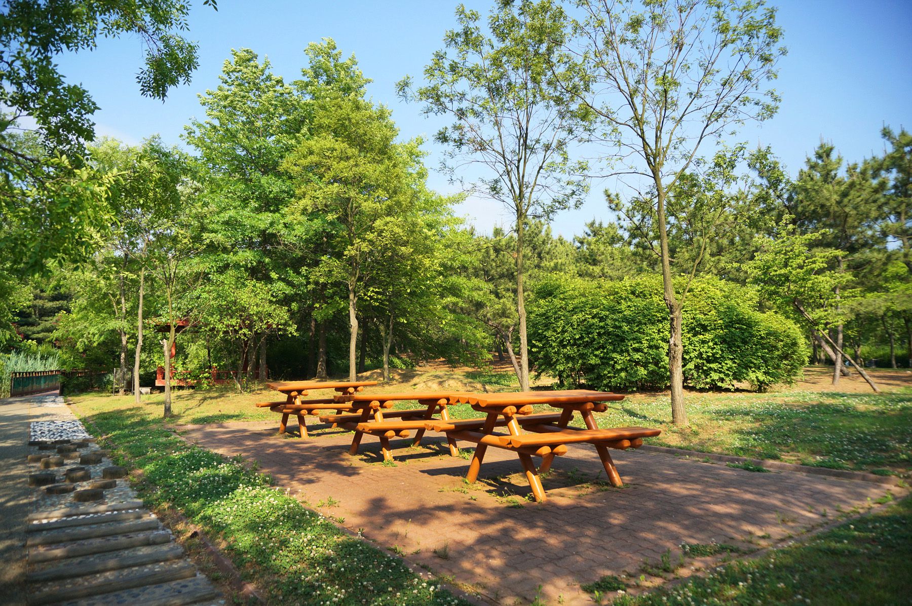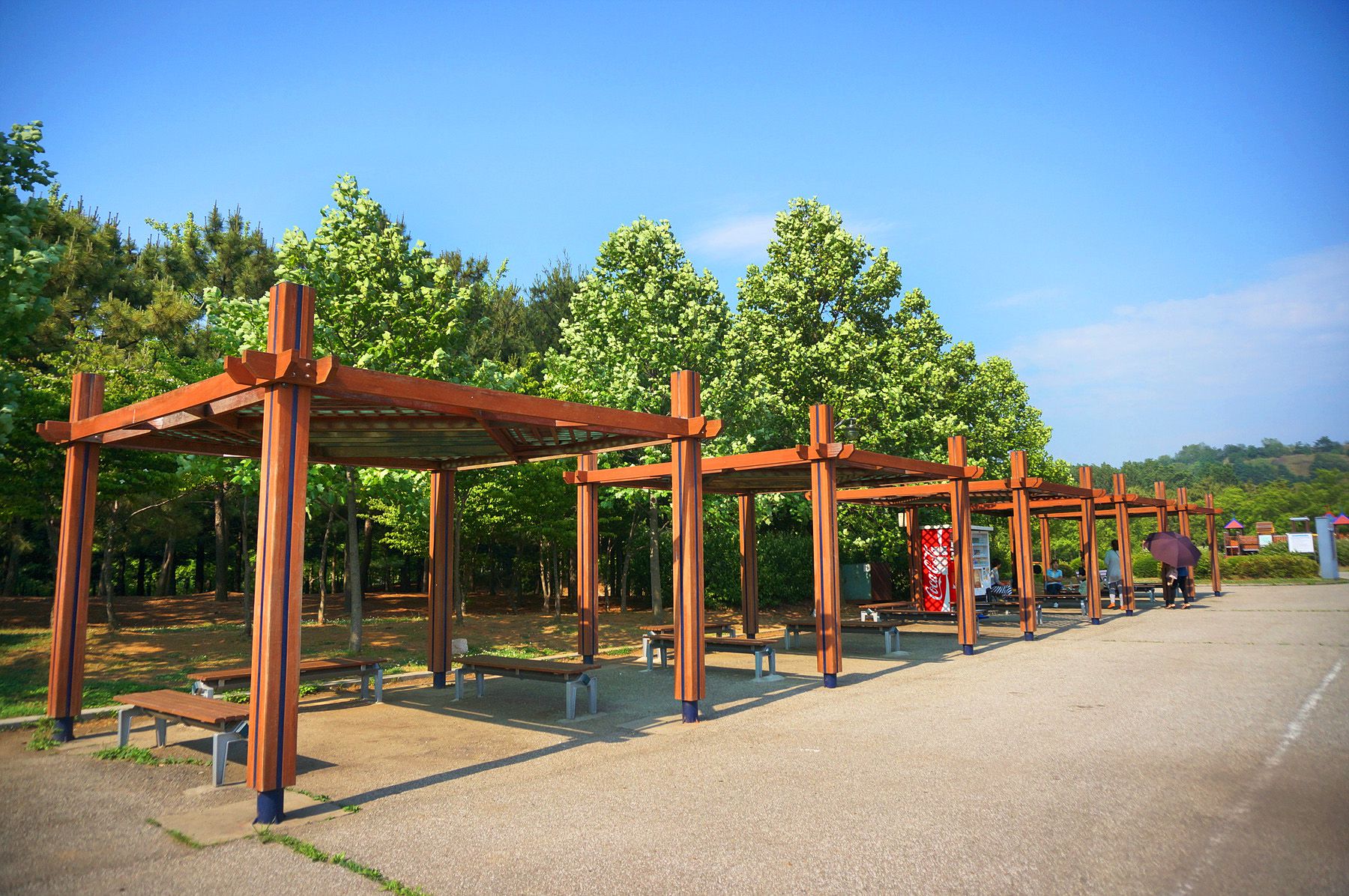 그늘 밑에는 의자와 도시락을 먹을 수 있는 장소들이 마련되어 있습니다.